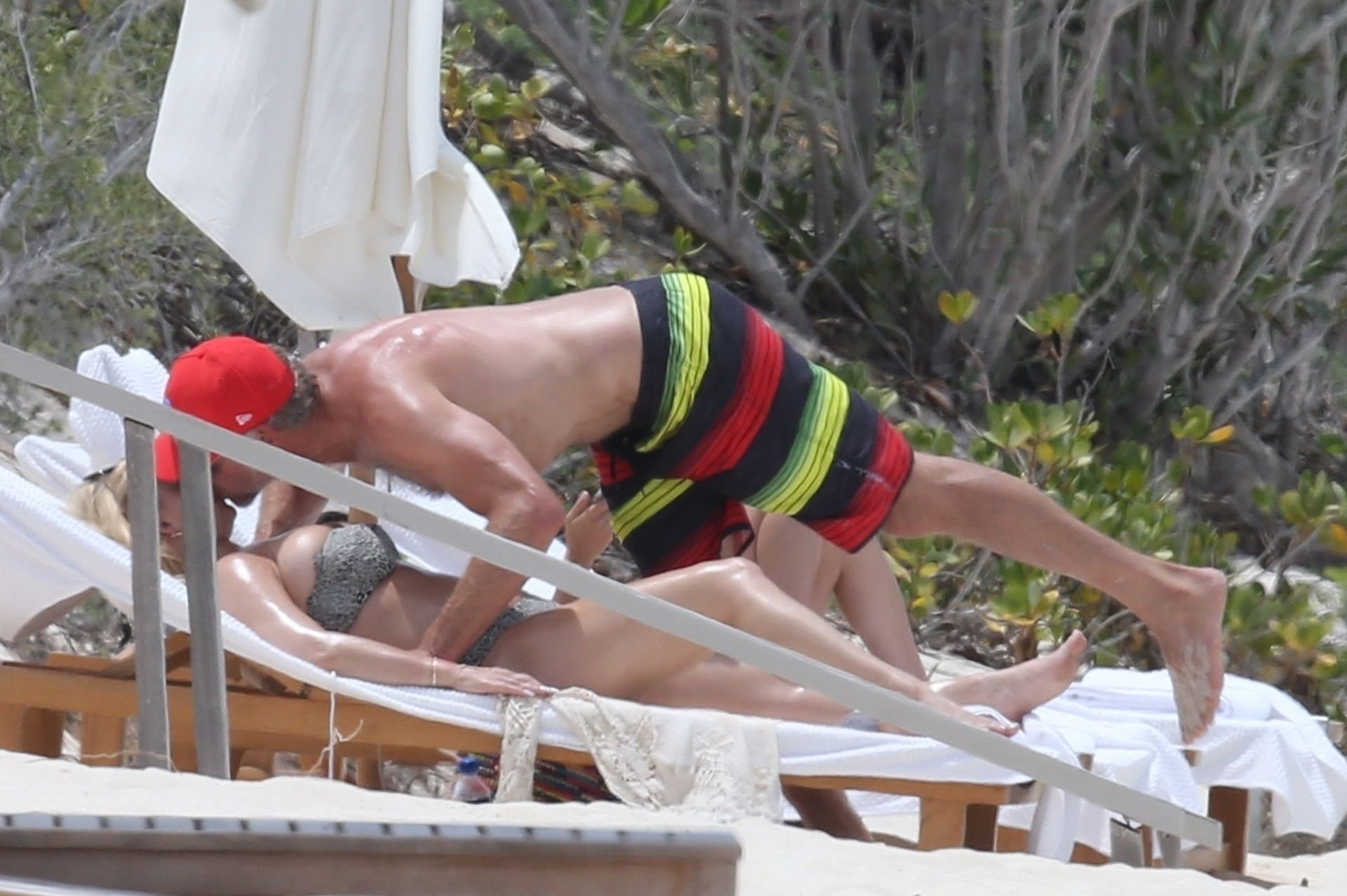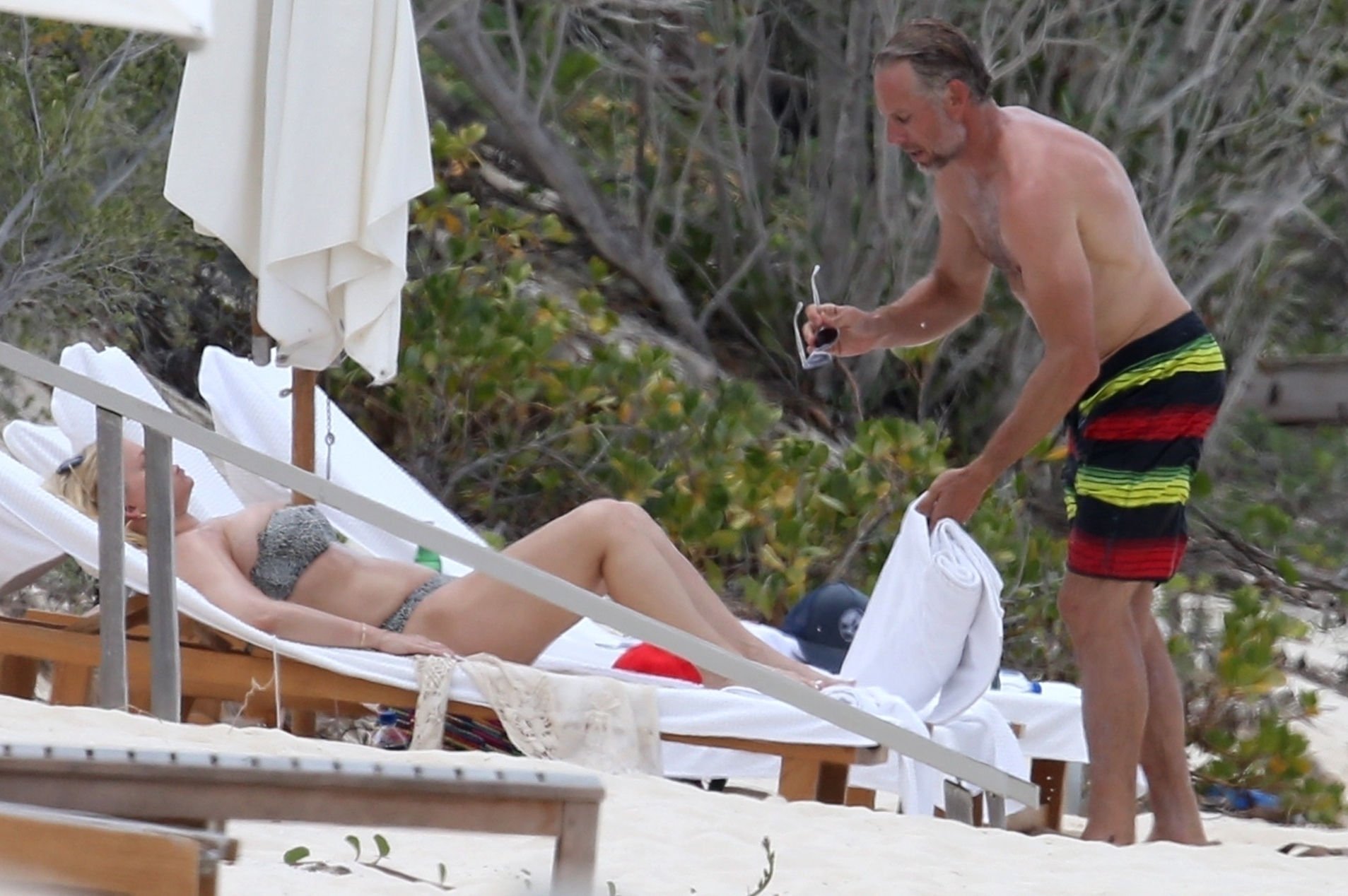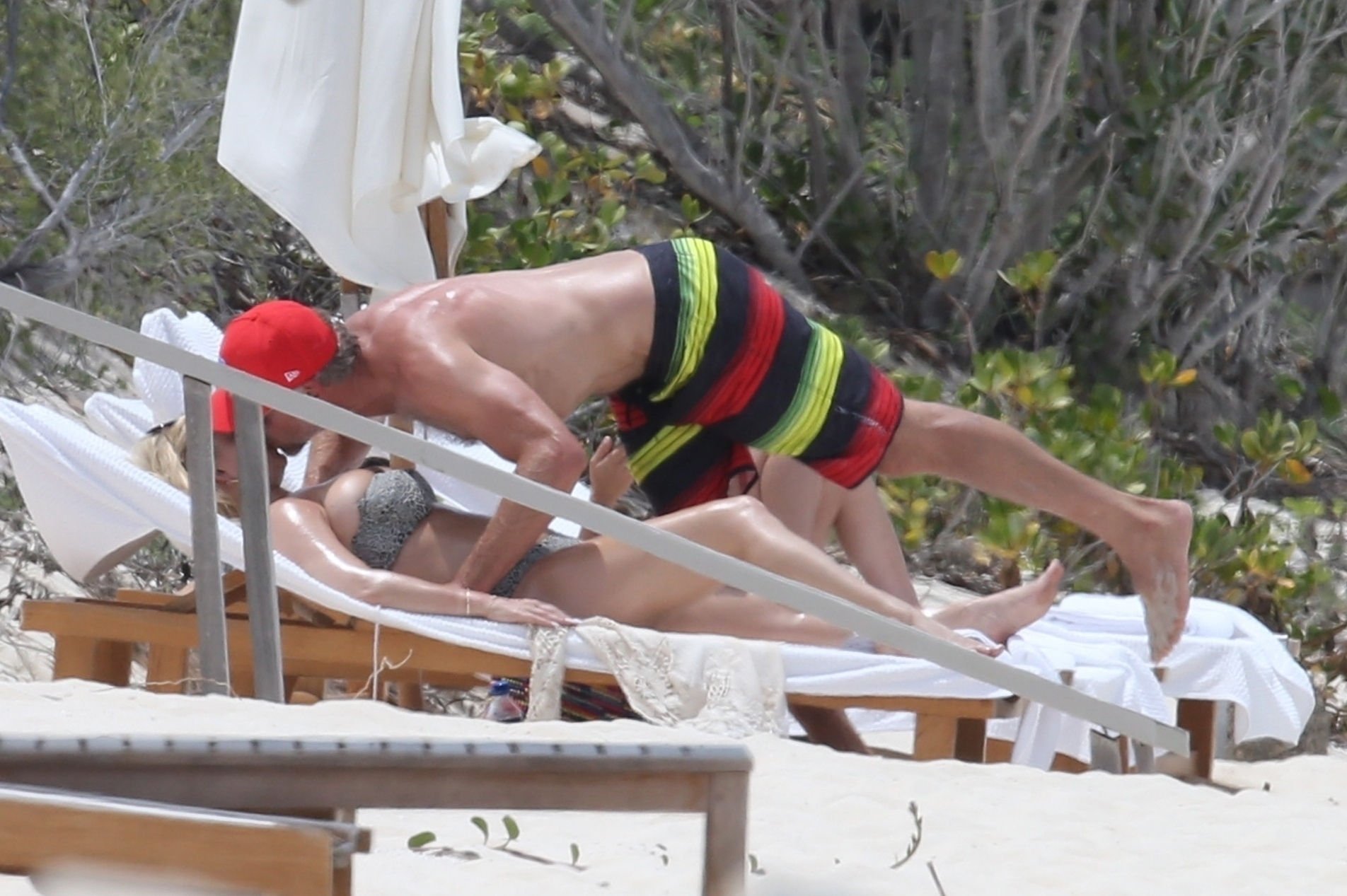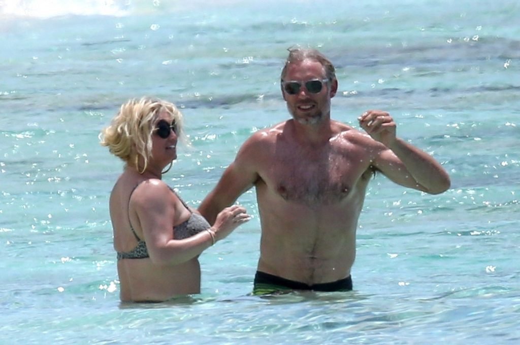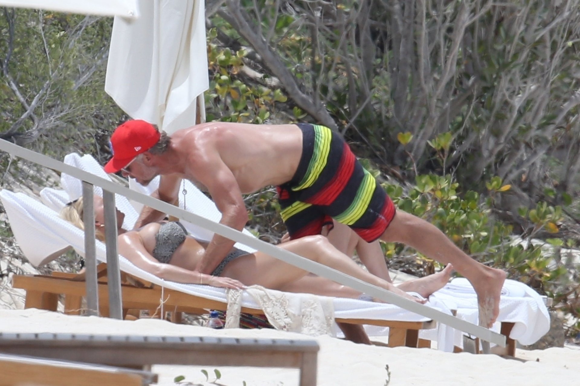 Jessica Ann Simpson y su esposo Eric Johnson disfrutan del día en la playa en las Bahamas con su amigo, 27/04/2018. La Jessica de 37 años se ve tomando el sol con un conjunto de dos piezas de estampado de leopardo mientras Eric muestra su físico tonificado mientras practica paddleboarding.