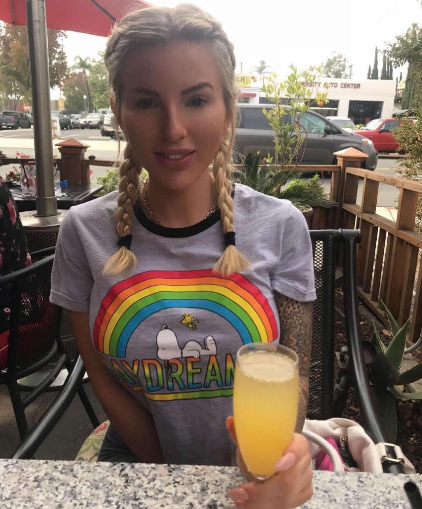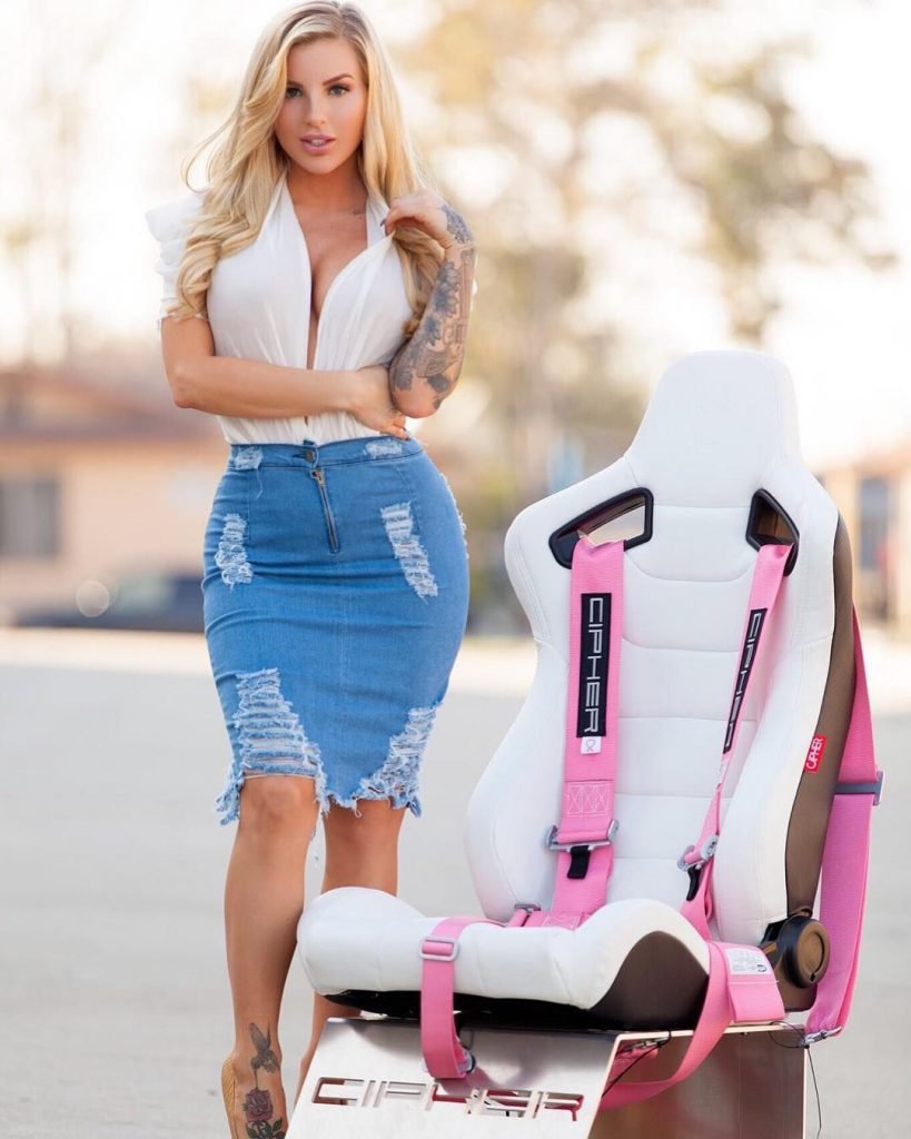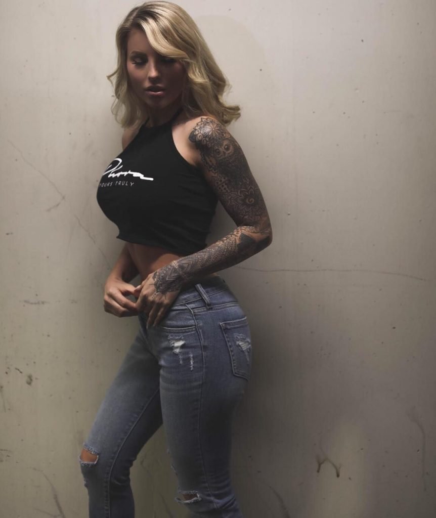 La modelo tiene enormes pechos falsos y muchos tatuajes. A Jessica Weaver le gusta el fitness y mantiene en forma su trasero. ¡Disfrutemos de sus fotos semidesnudas!