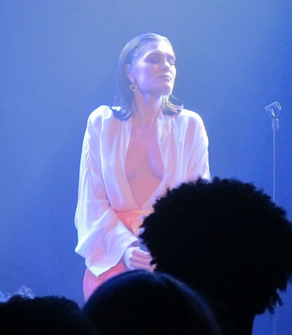 Jessie J lleva un vestido de diseñador elegante y muy revelador para actuar frente a sus fans, incluido su novio, Channing Tatum, en un concierto íntimo en Los Ángeles, 23/09/2019. Jessie realizó un set acústico de dos horas, el primero desde 2013, en el famoso lugar musical Troubadour.