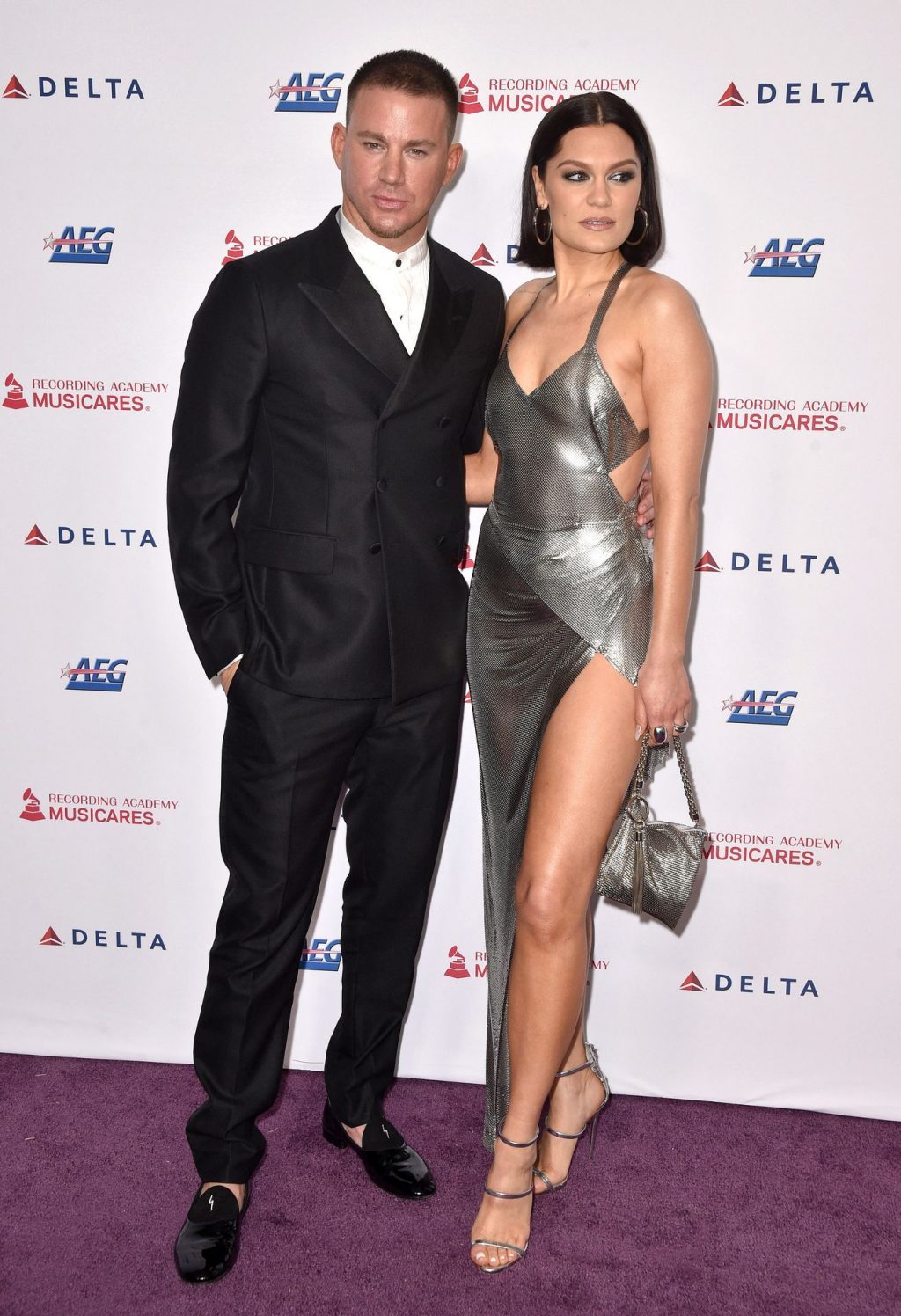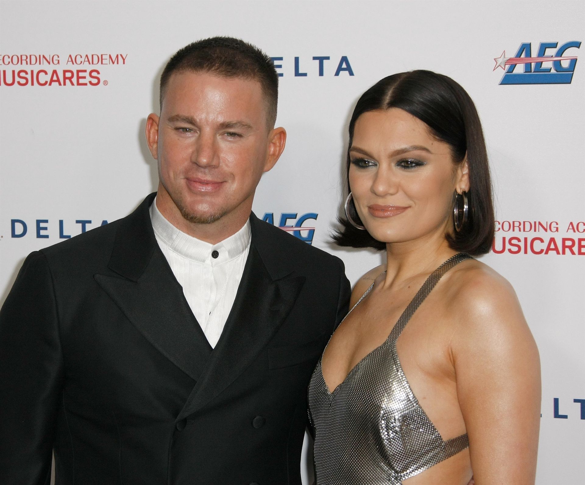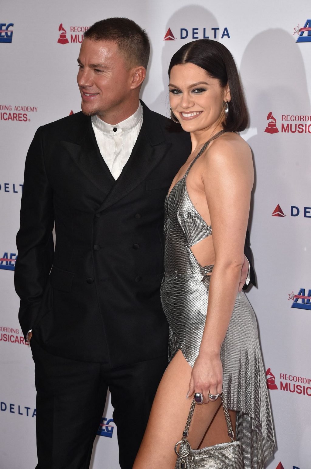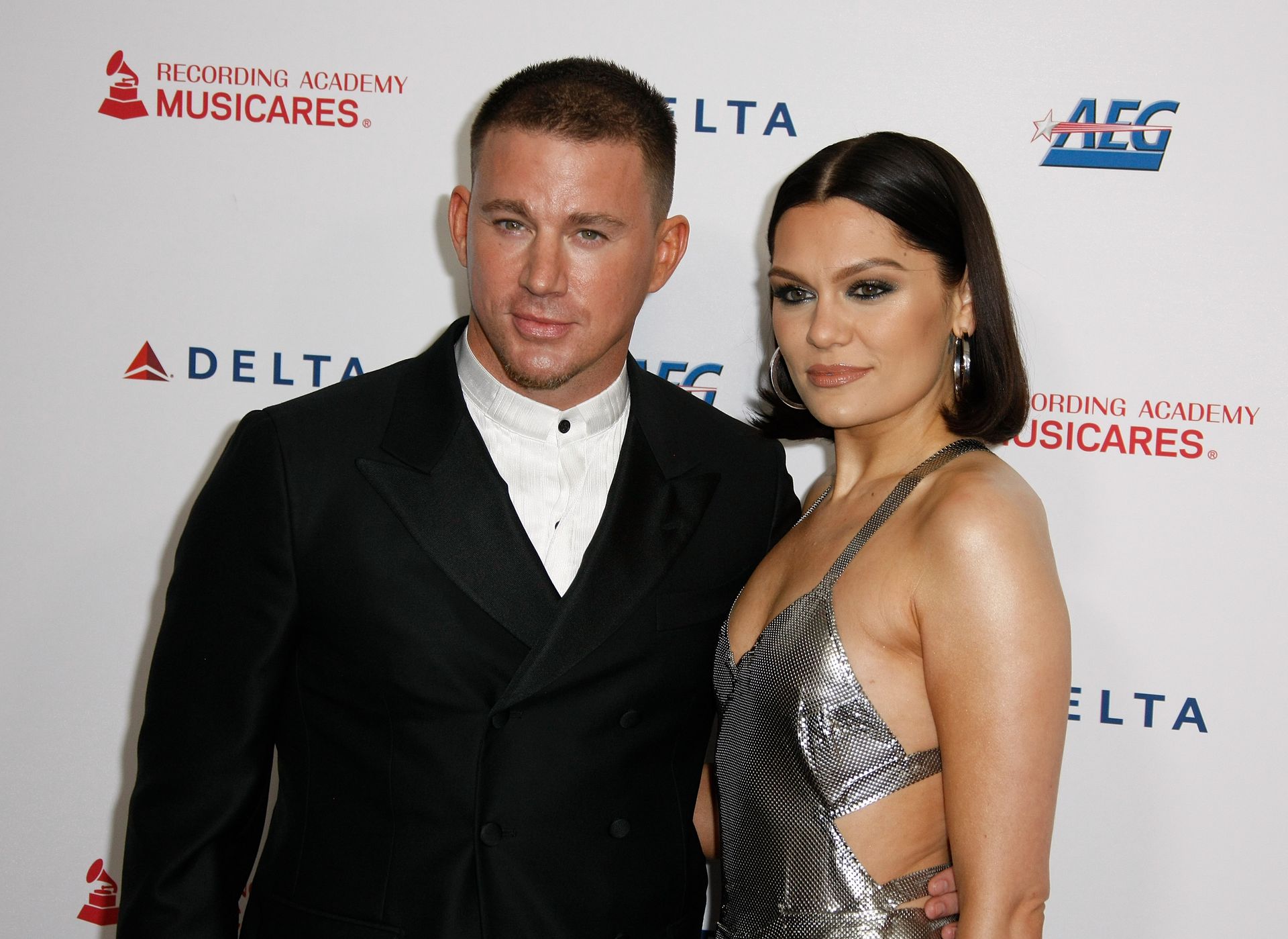 Actor Channing Tatum y la cantante de largas piernas Jessie J asisten a MusiCares Persona del Año en honor a Aerosmith en West Hall en el Centro de Convenciones de Los Ángeles en Los Ángeles, 24/01/2020.
