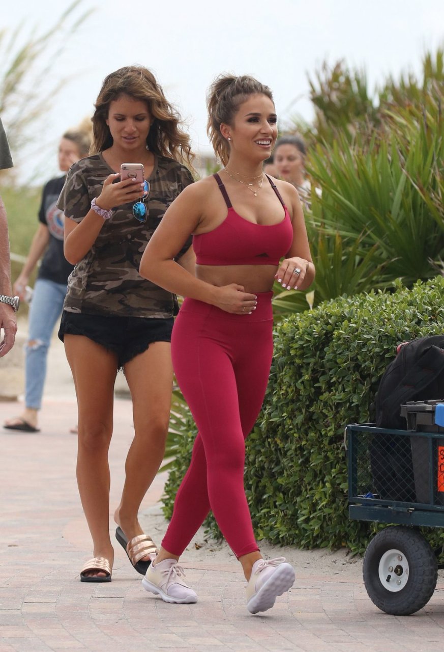 La estrella de country y estrella de reality TV Jessie James Decker (30) lleva un bikini verde brillante mientras graba un comercial en Miami Beach, 22/10/2018.