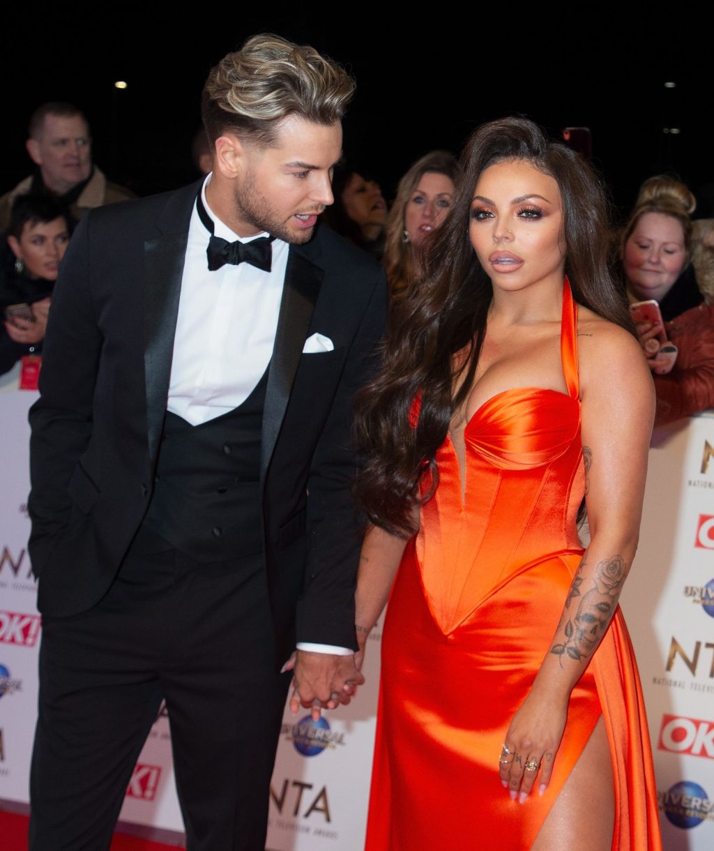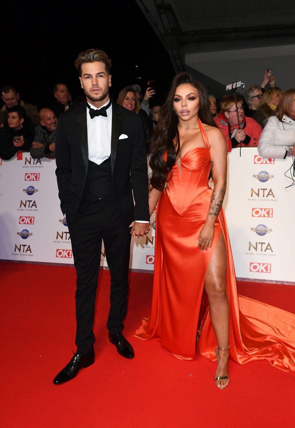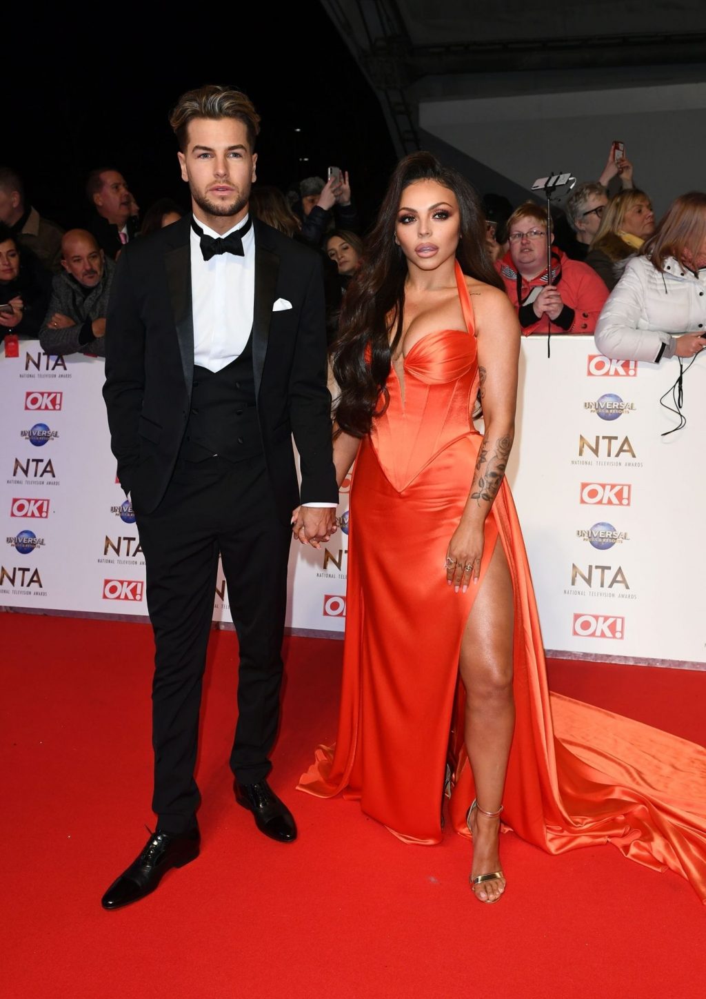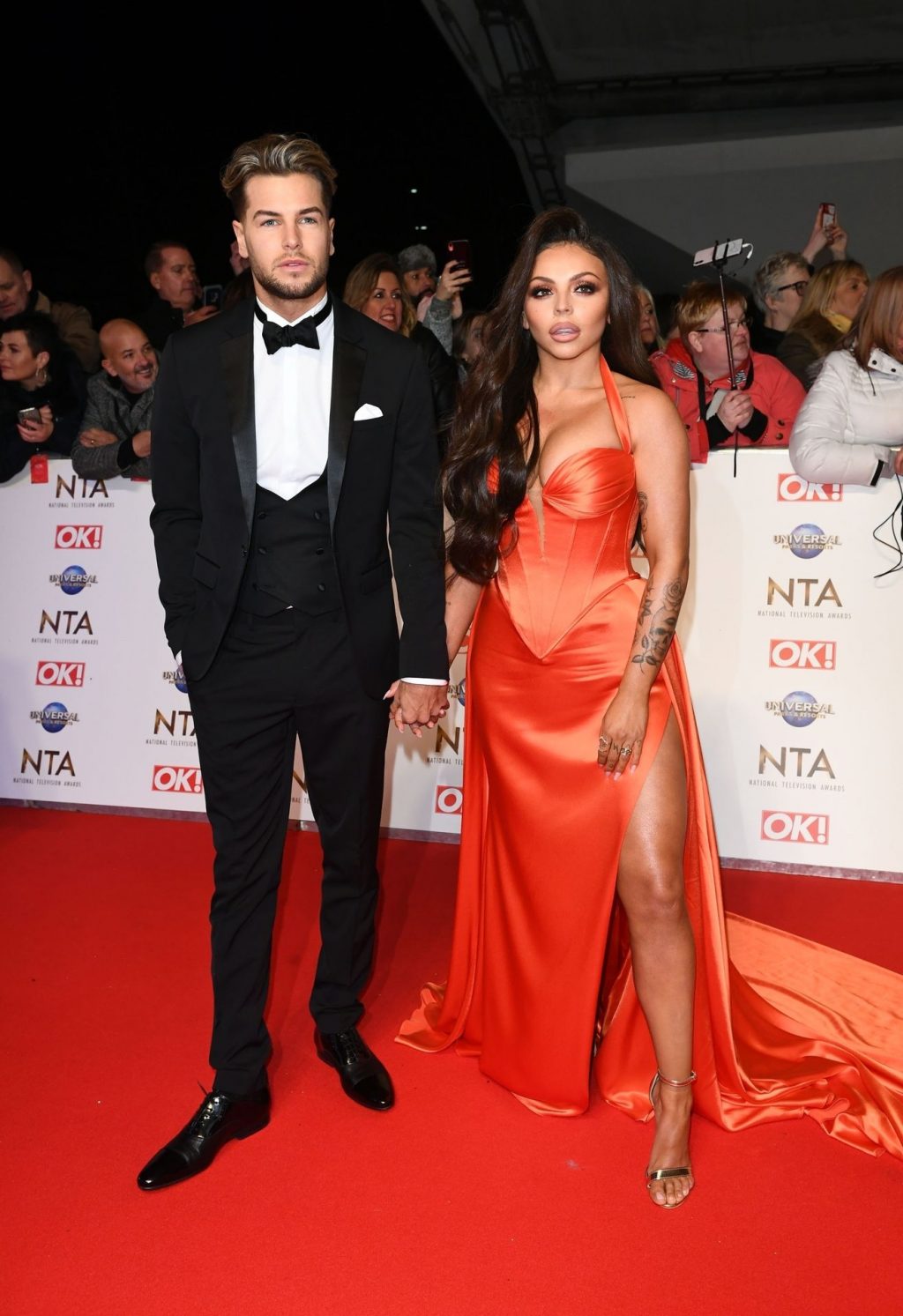 La cantante voluptuosa Jesy Nelson y Chris Hughes asisten a las Llegadas de la Alfombra Roja de los National TV Awards en la Arena 02 de Londres, 28/01/2020. ¡Toda la atención de los invitados estaba en sus pechos!