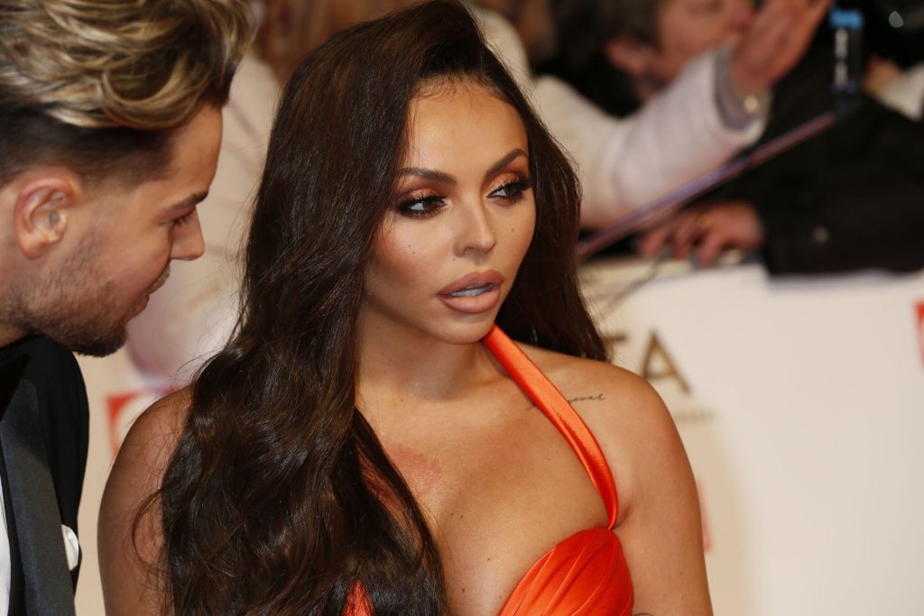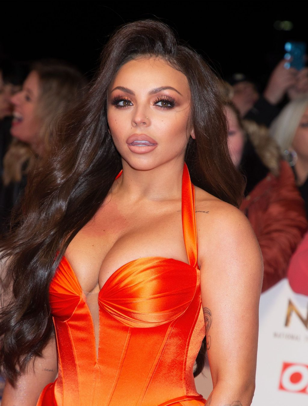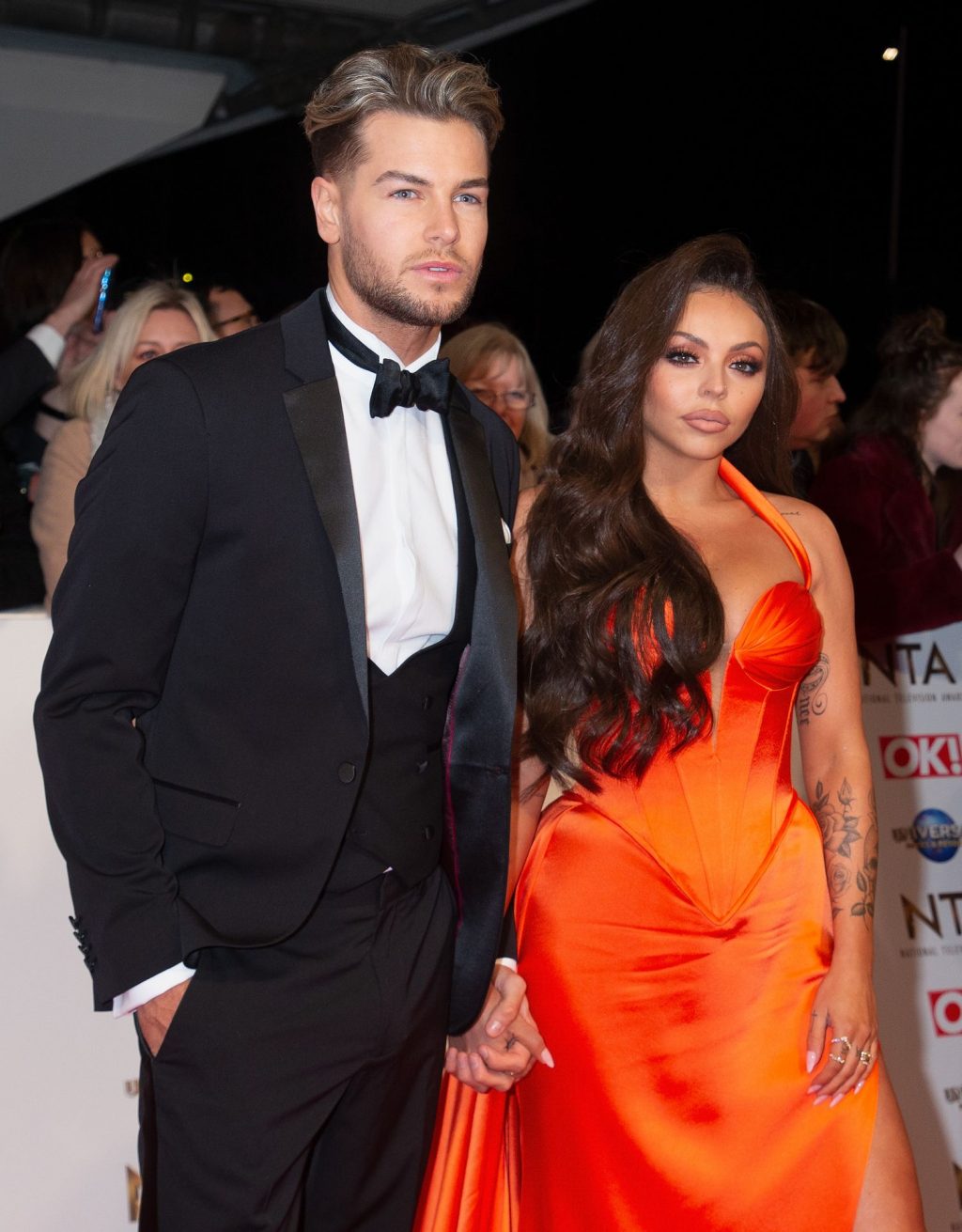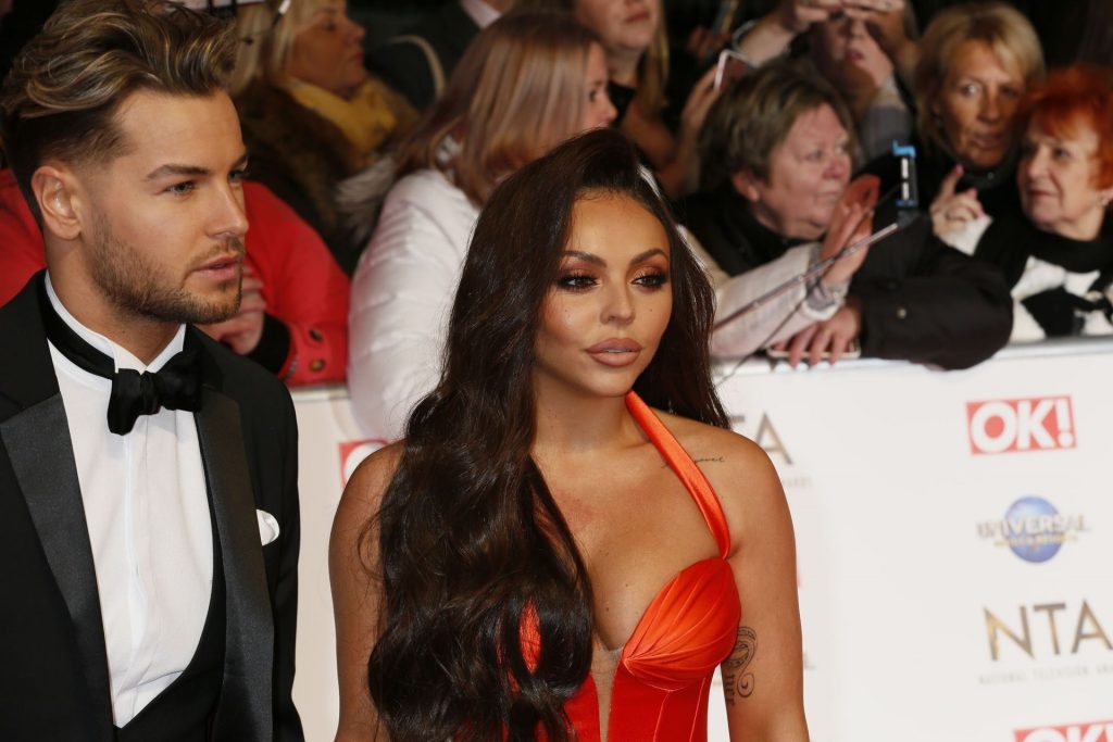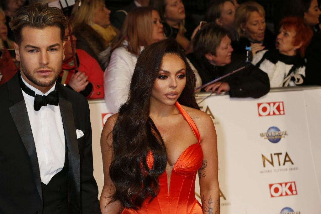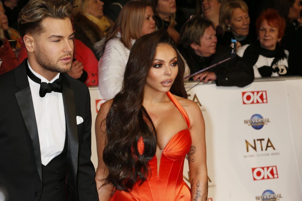 La cantante voluptuosa Jesy Nelson y Chris Hughes asisten a las Llegadas de la Alfombra Roja de los National TV Awards en la Arena 02 de Londres, 28/01/2020. ¡Toda la atención de los invitados estaba en sus pechos!