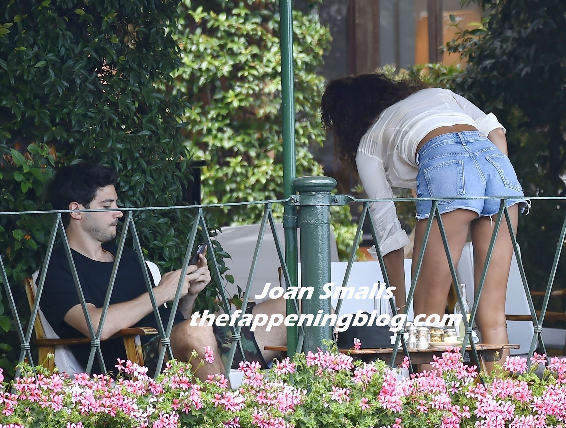 Joan lució una serie de atuendos escasos bajo el calor del sol italiano, tomando algunas selfies y subiendo la temperatura con su esbelta y sexy figura.
