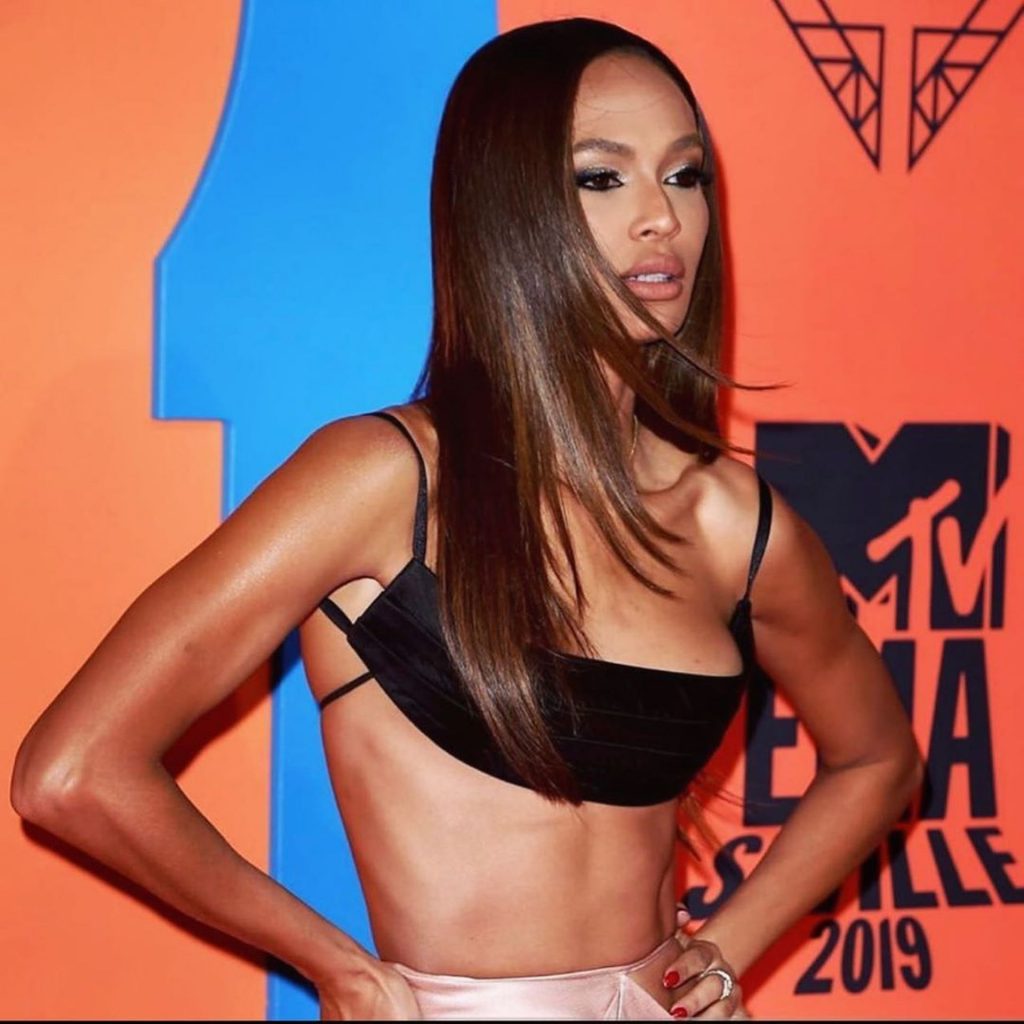Famosa modelo Joan Smalls fue vista en la alfombra roja de los MTV European Music Awards 2019 (MTV EMAs) en el Centro de Conferencias y Exposiciones FIBES en Sevilla, Andalucía, España, 11/03/2019.