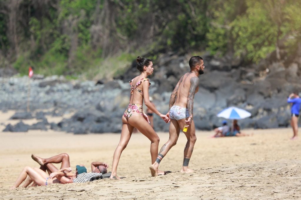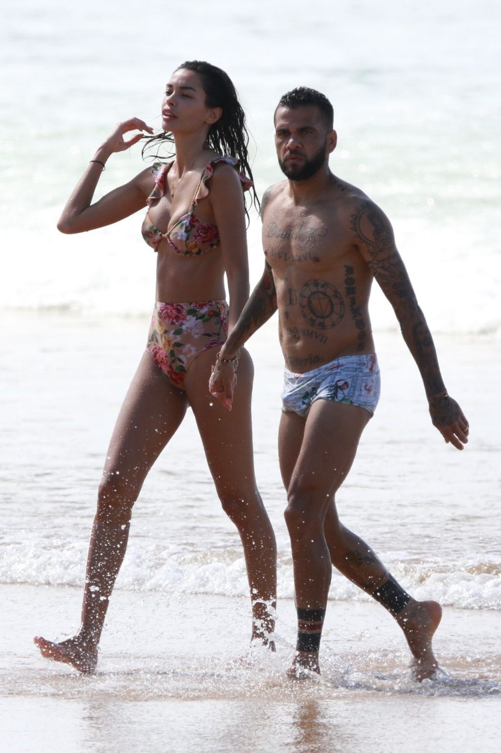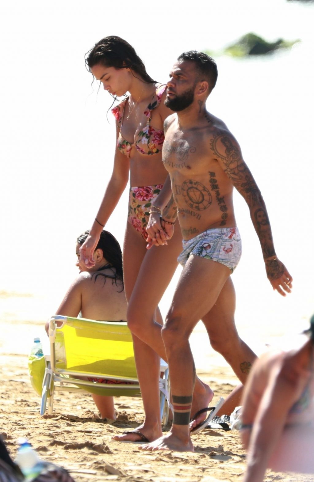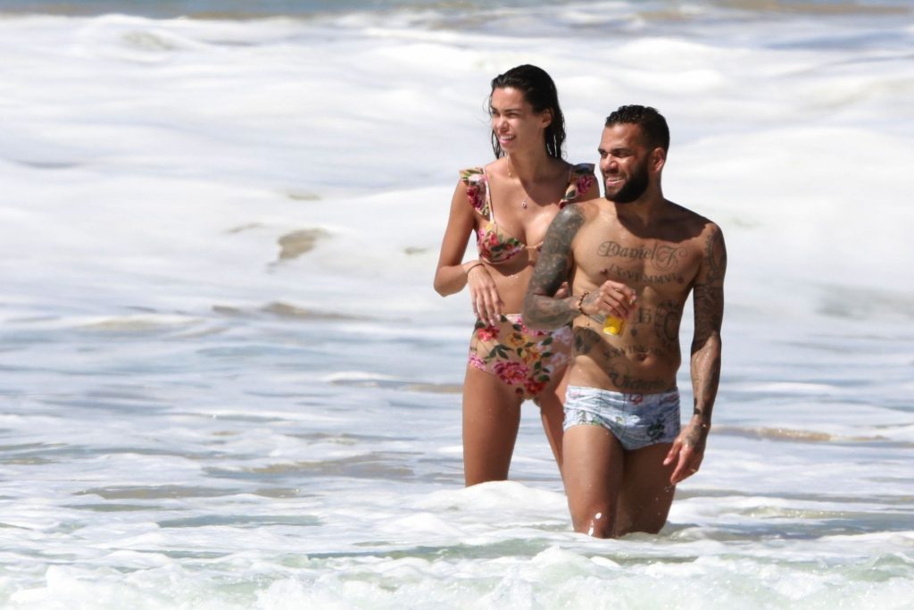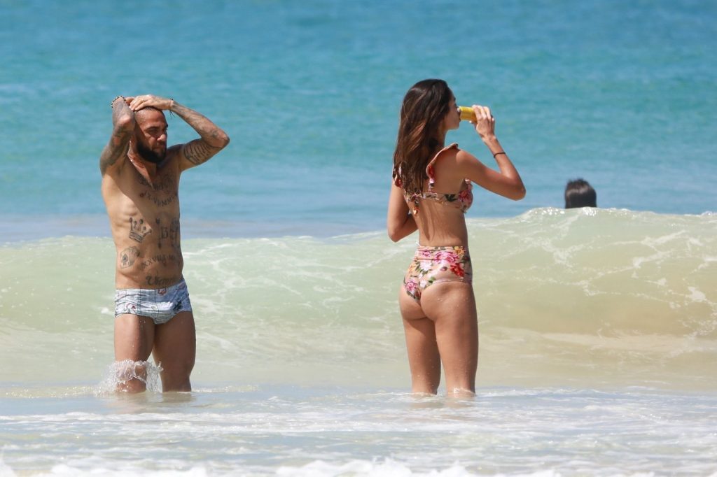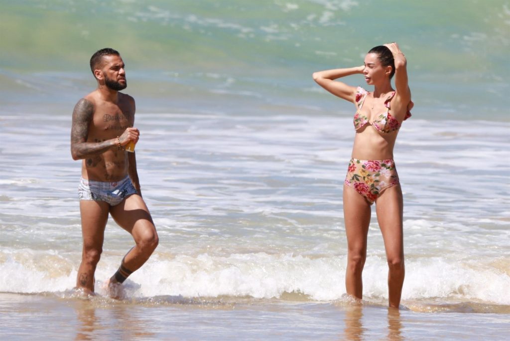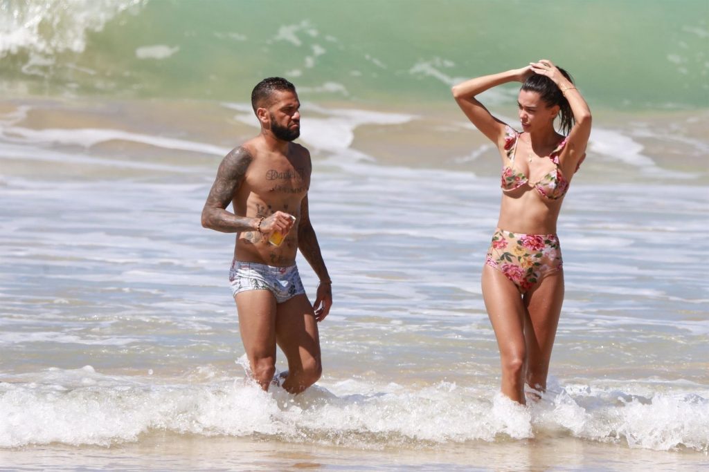 El futbolista brasileño Daniel Alves y su esposa, la modelo española Joana Sanz, fueron vistos en la playa Conceicao en Fernando de Noronha, Brasil, el 29/12/2019.