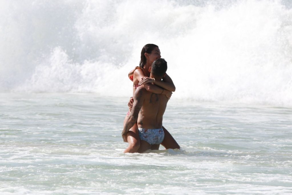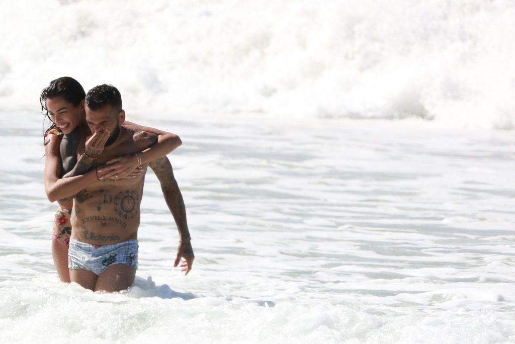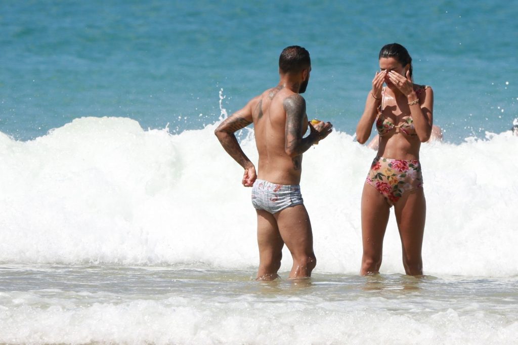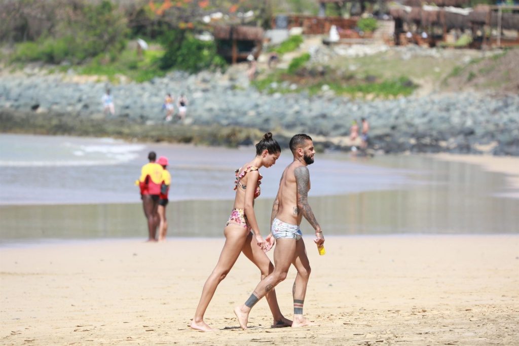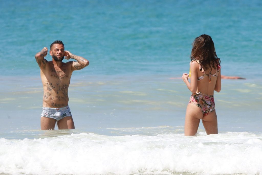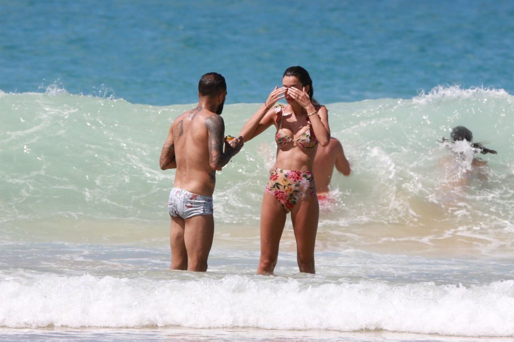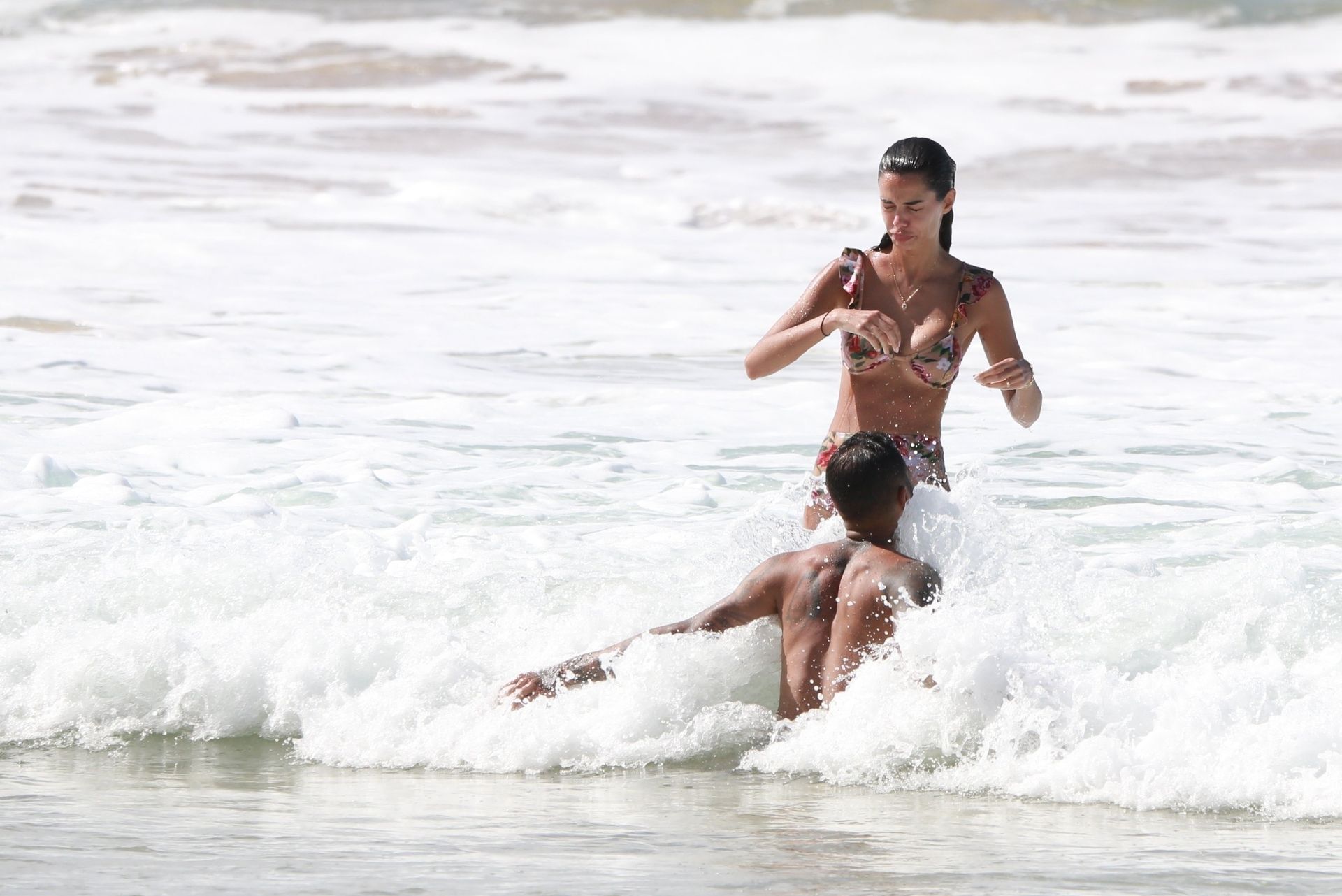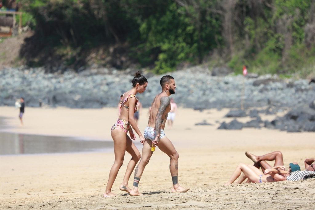 El futbolista brasileño Daniel Alves y su esposa, la modelo española Joana Sanz, fueron vistos en la playa Conceicao en Fernando de Noronha, Brasil, el 29/12/2019.