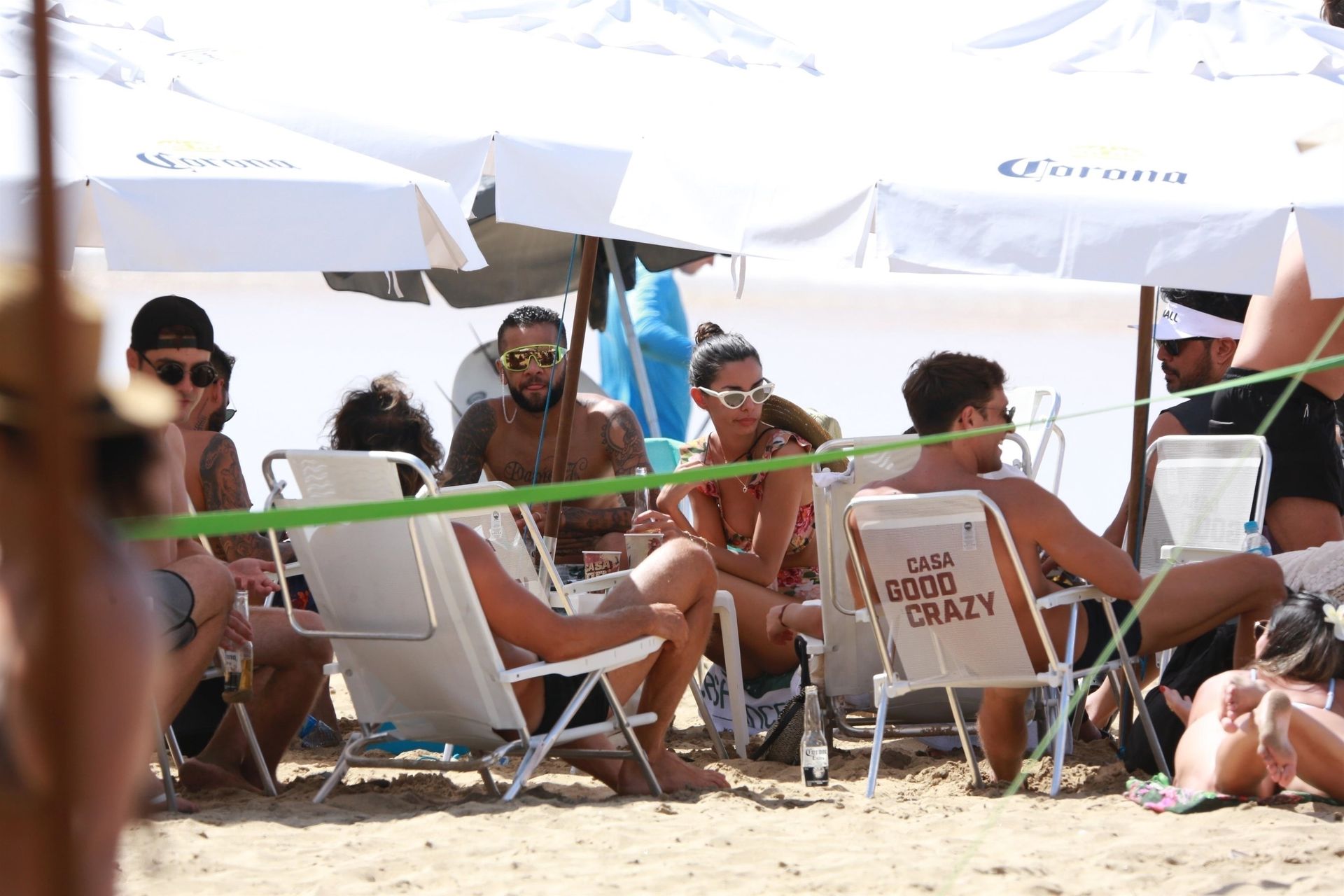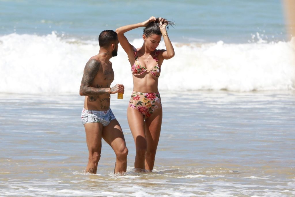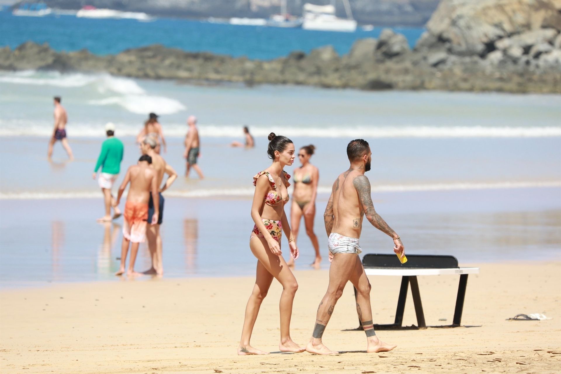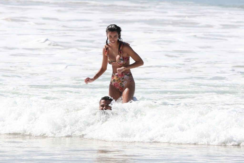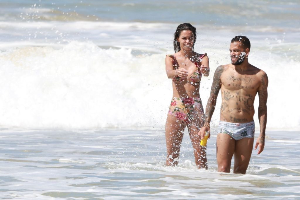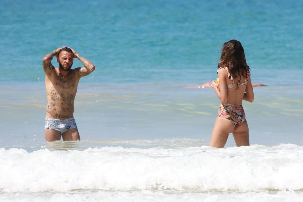 El futbolista brasileño Daniel Alves y su esposa, la modelo española Joana Sanz, fueron vistos en la playa Conceicao en Fernando de Noronha, Brasil, el 29/12/2019.