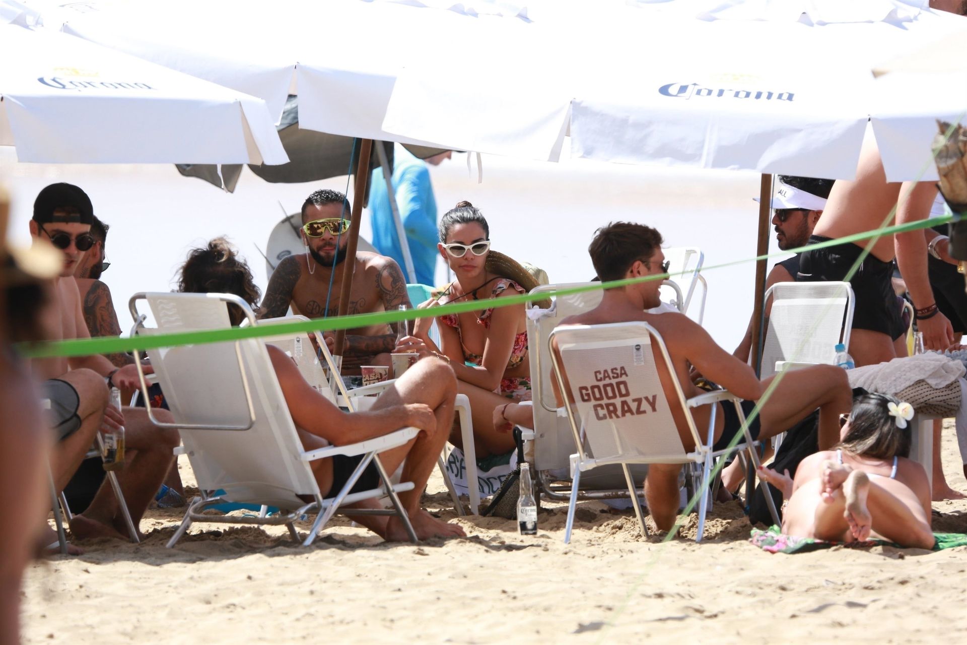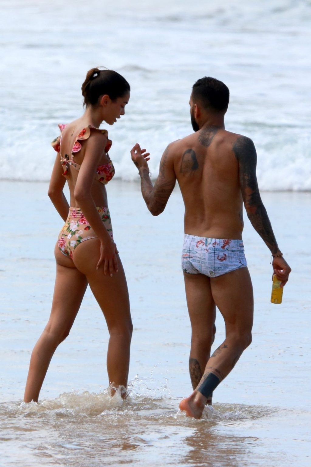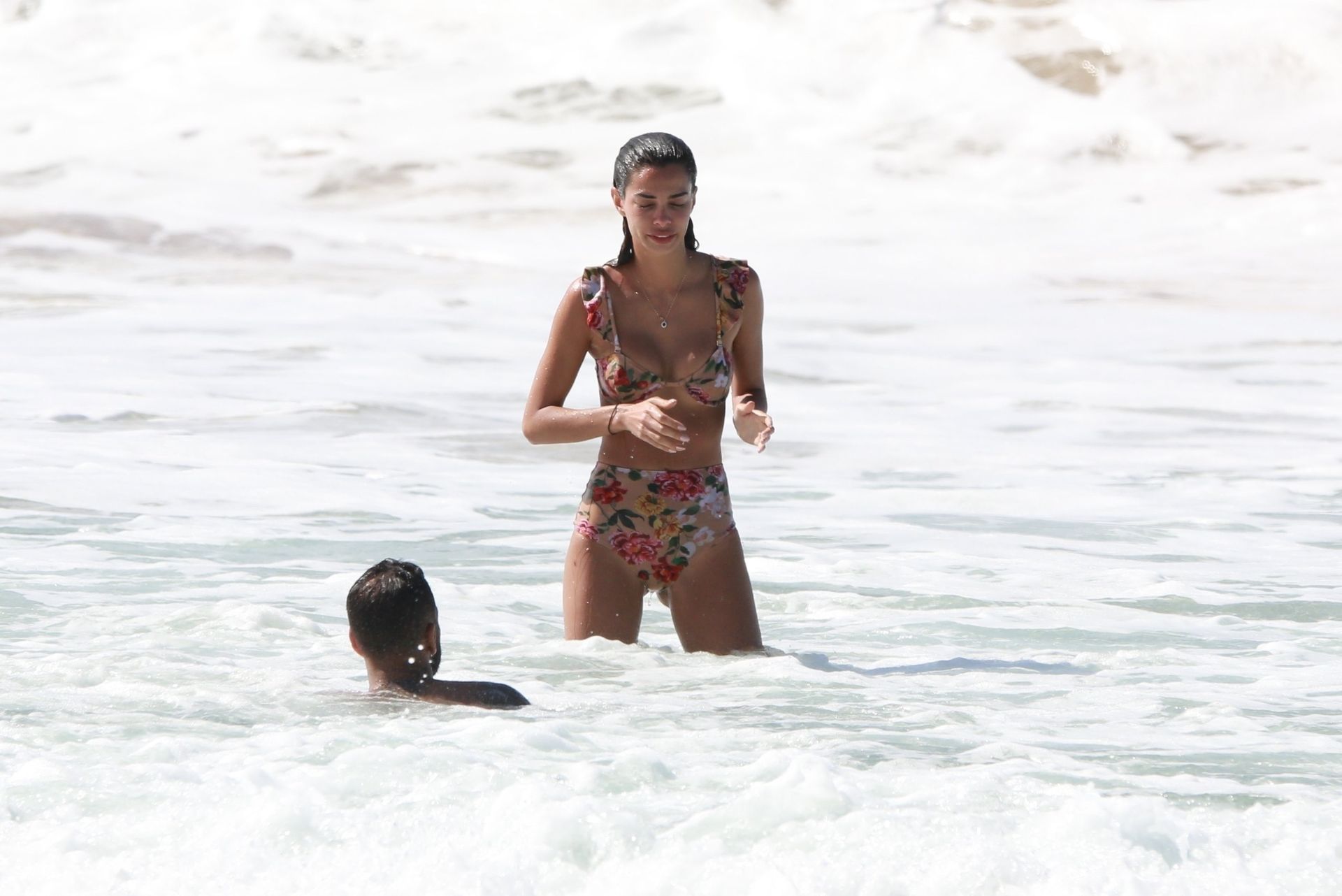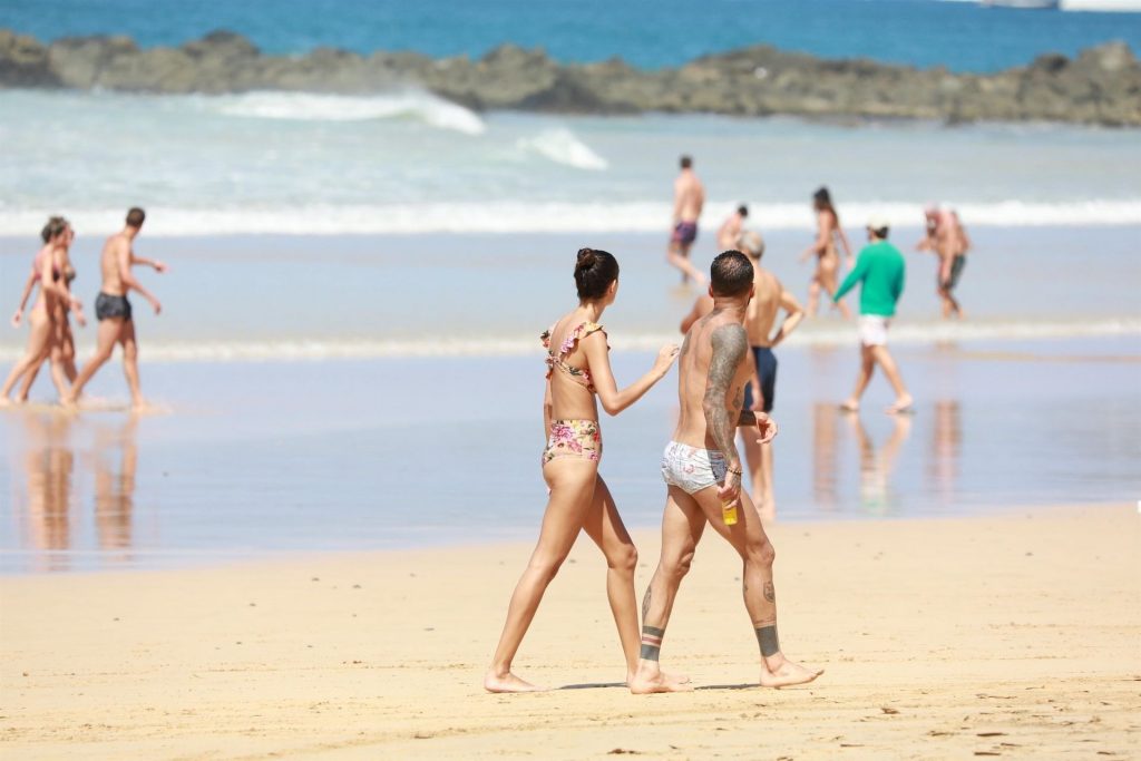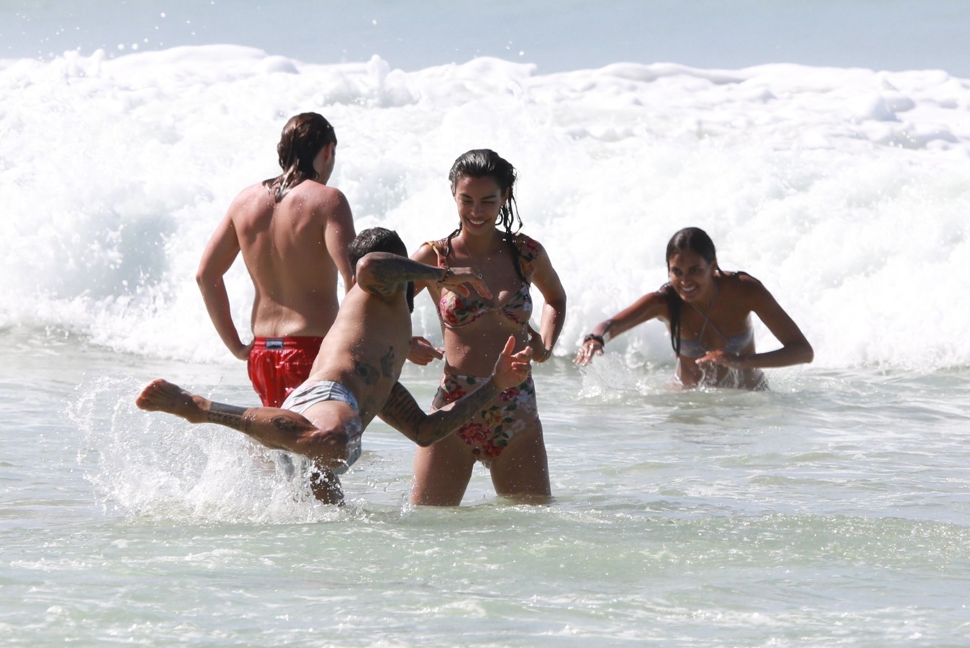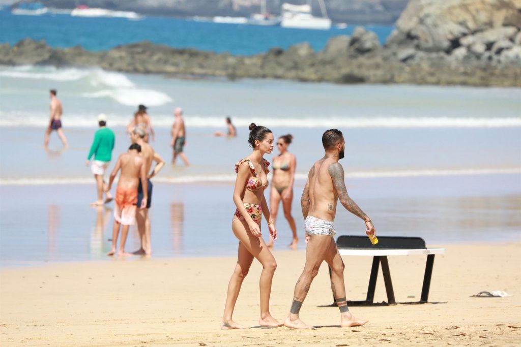 El futbolista brasileño Daniel Alves y su esposa, la modelo española Joana Sanz, fueron vistos en la playa Conceicao en Fernando de Noronha, Brasil, el 29/12/2019.