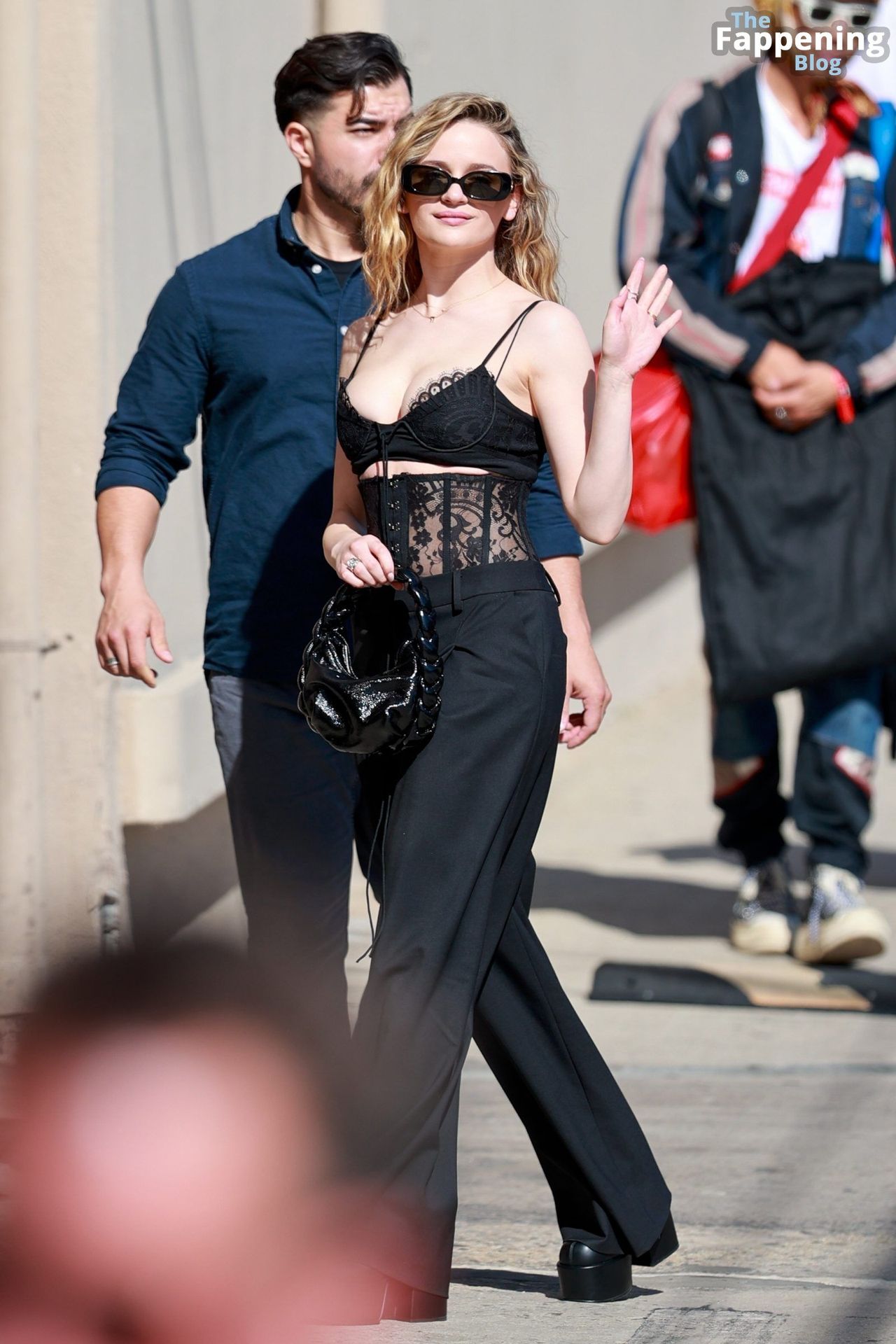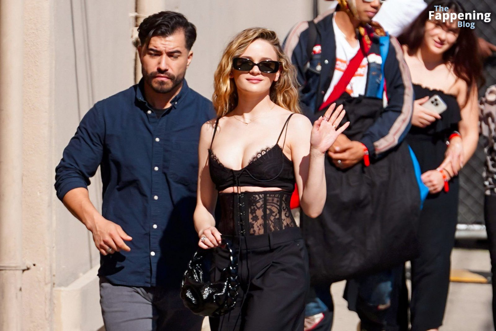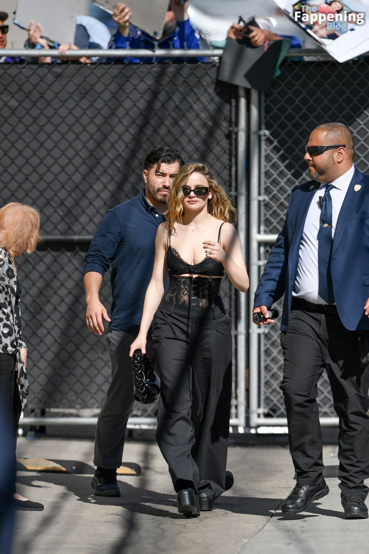 Echa un vistazo al impresionante escote de Joey King mientras llega a Jimmy Kimmel Live.