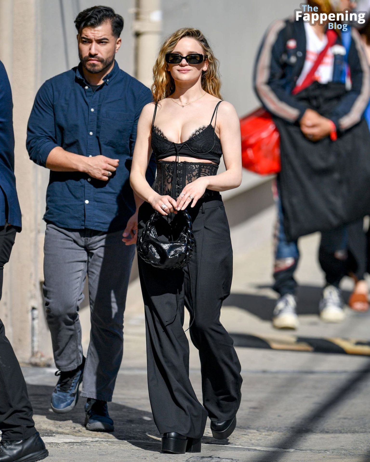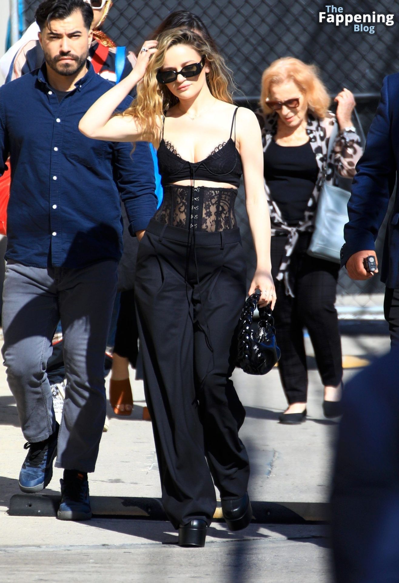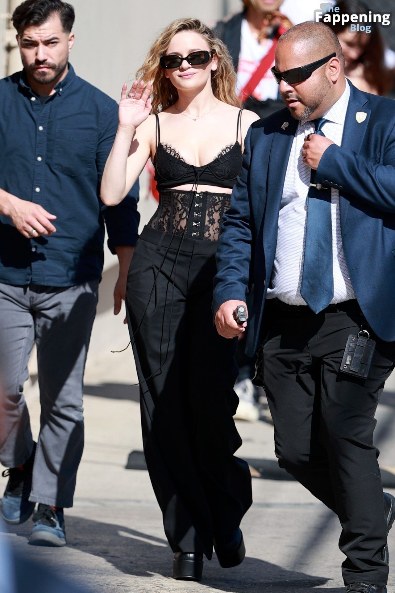 Echa un vistazo al impresionante escote de Joey King mientras llega a Jimmy Kimmel Live.