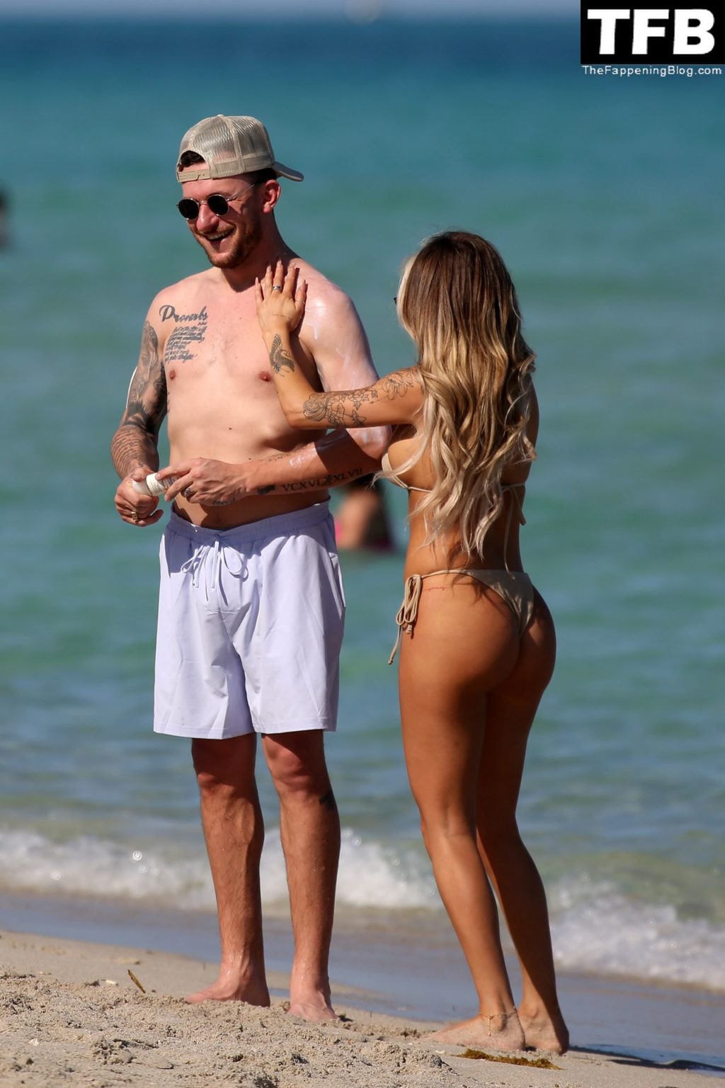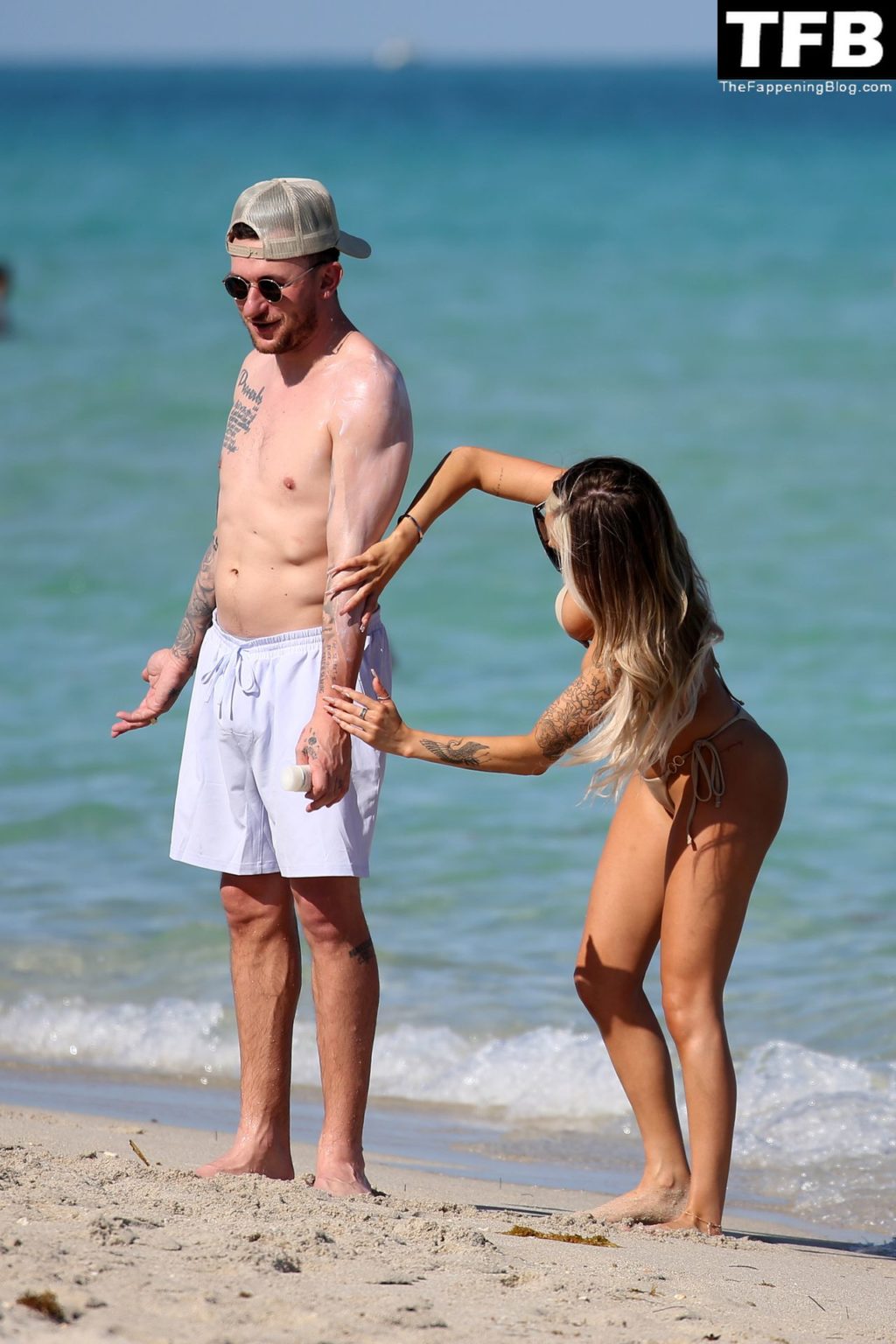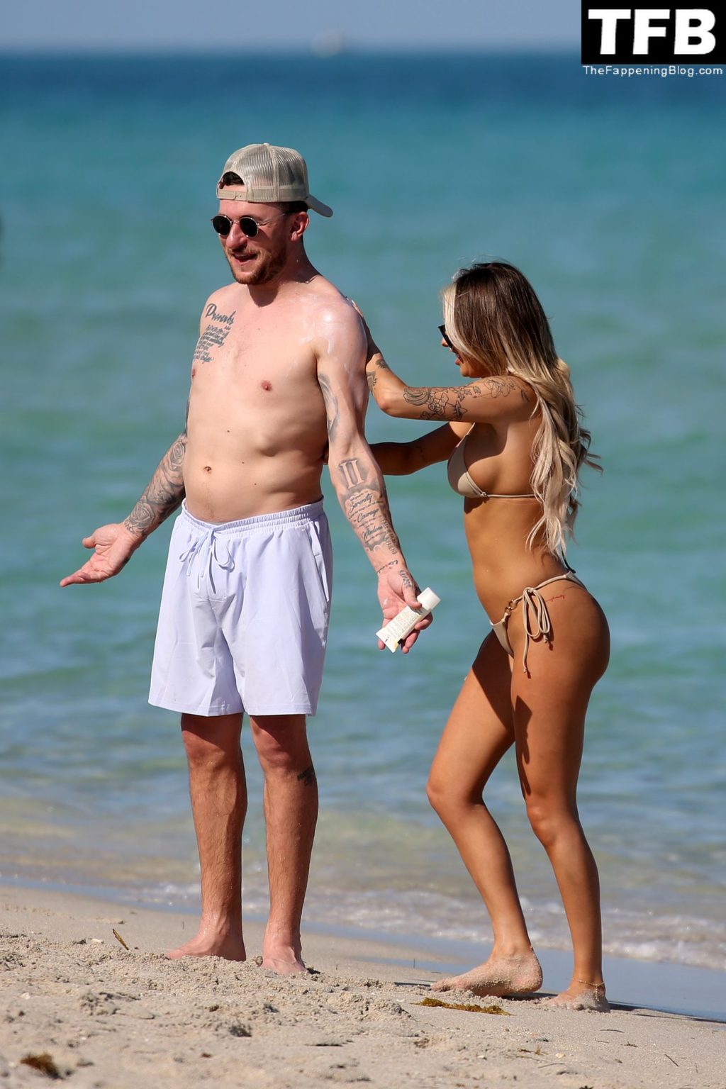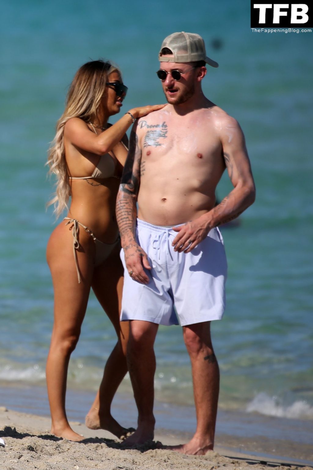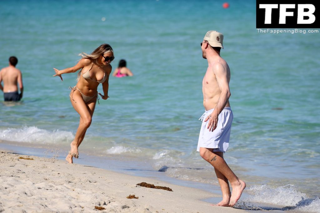 Johnny Manziel disfruta de la playa con una mujer rubia en bikini en Miami (24 fotos)