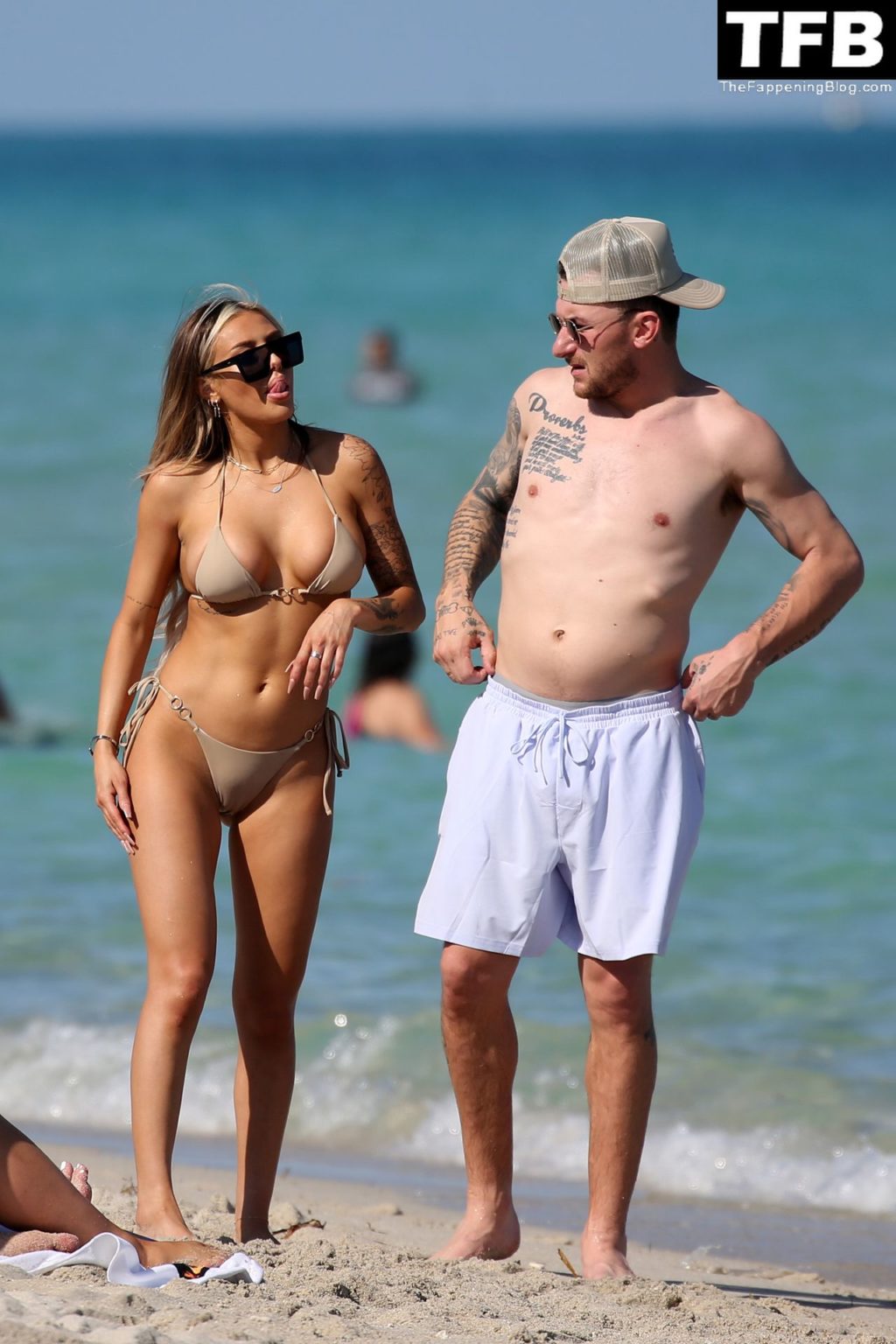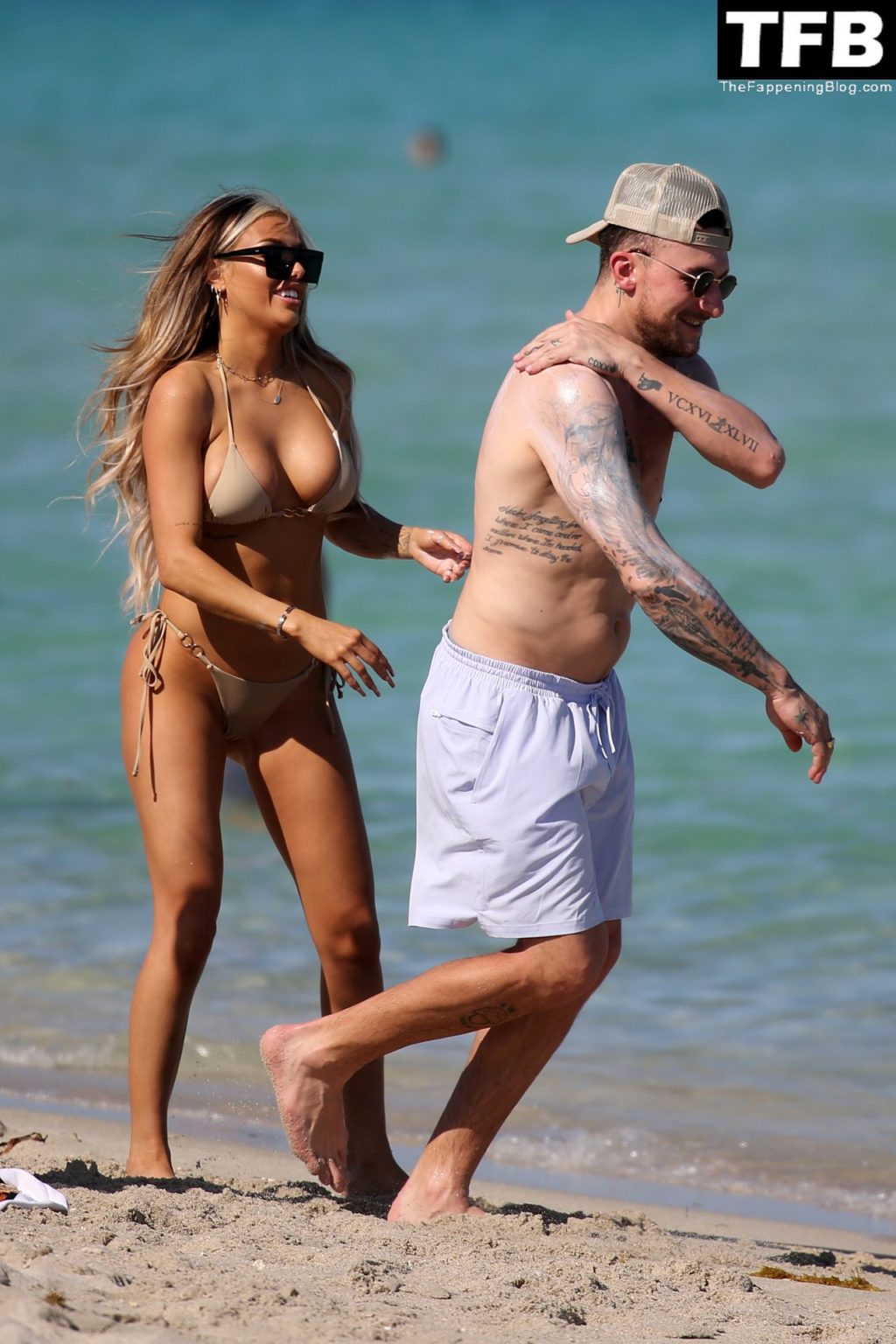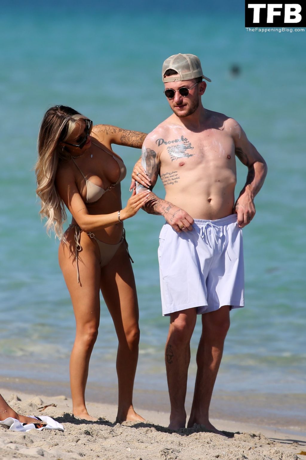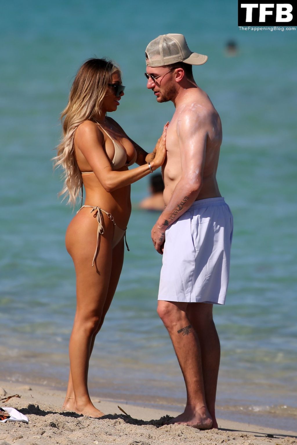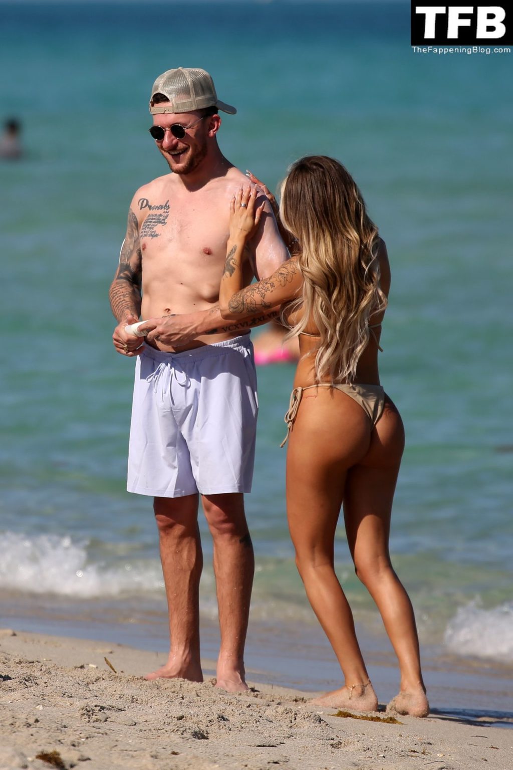 Johnny Manziel disfruta de la playa con una mujer rubia en bikini en Miami (24 fotos)