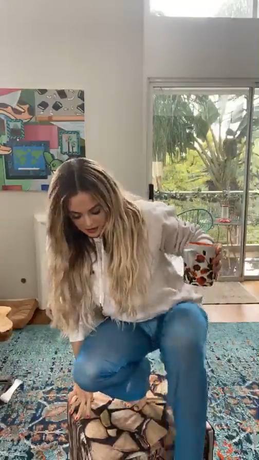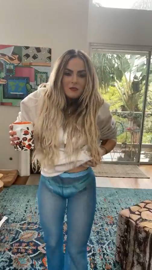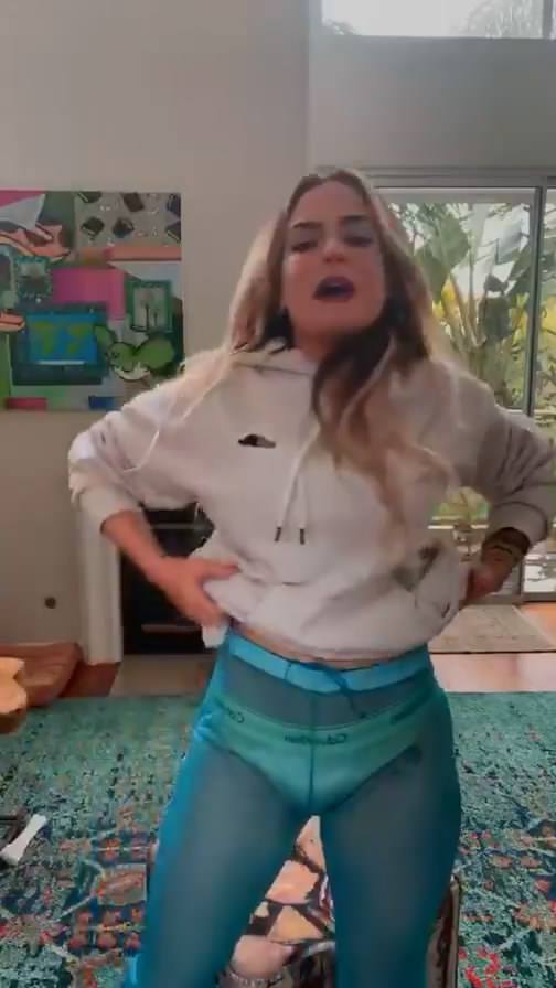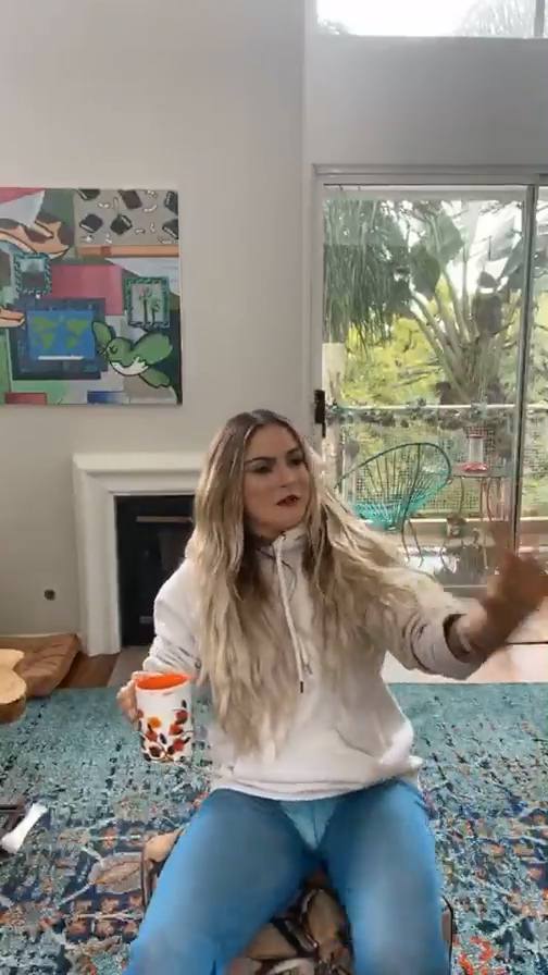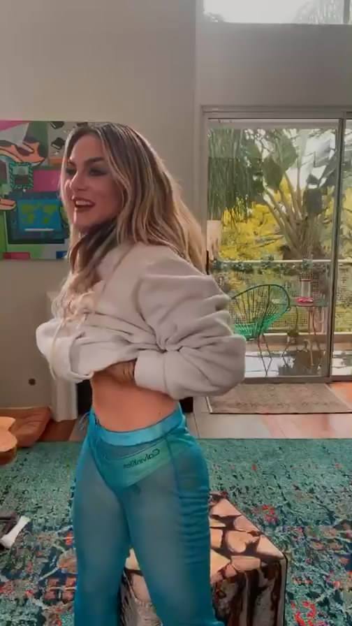 La cantante Joanna ‘JoJo’ Levesque tiene un fallo de vestuario al exponer accidentalmente su gran pecho desnudo y ropa interior durante un Instagram Live, 10/04/2020.