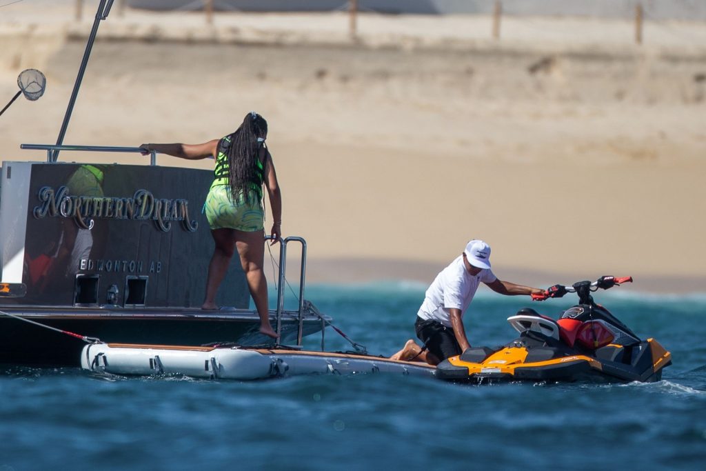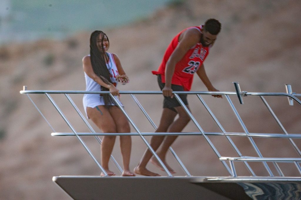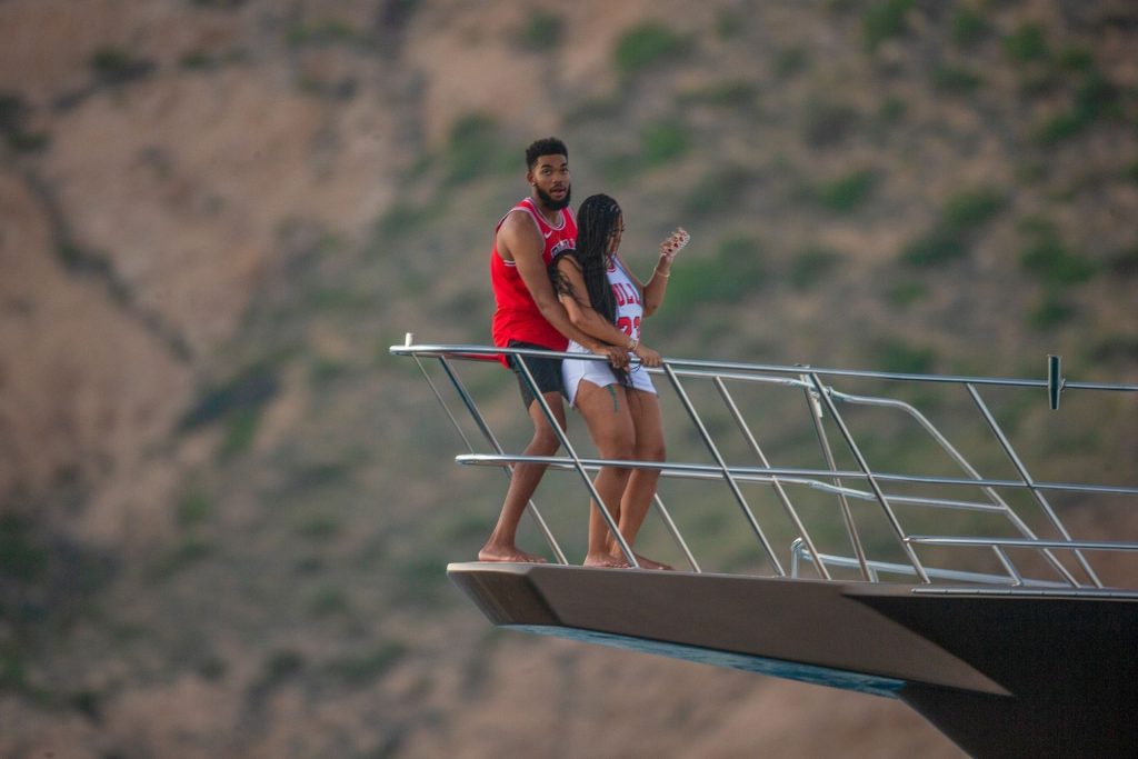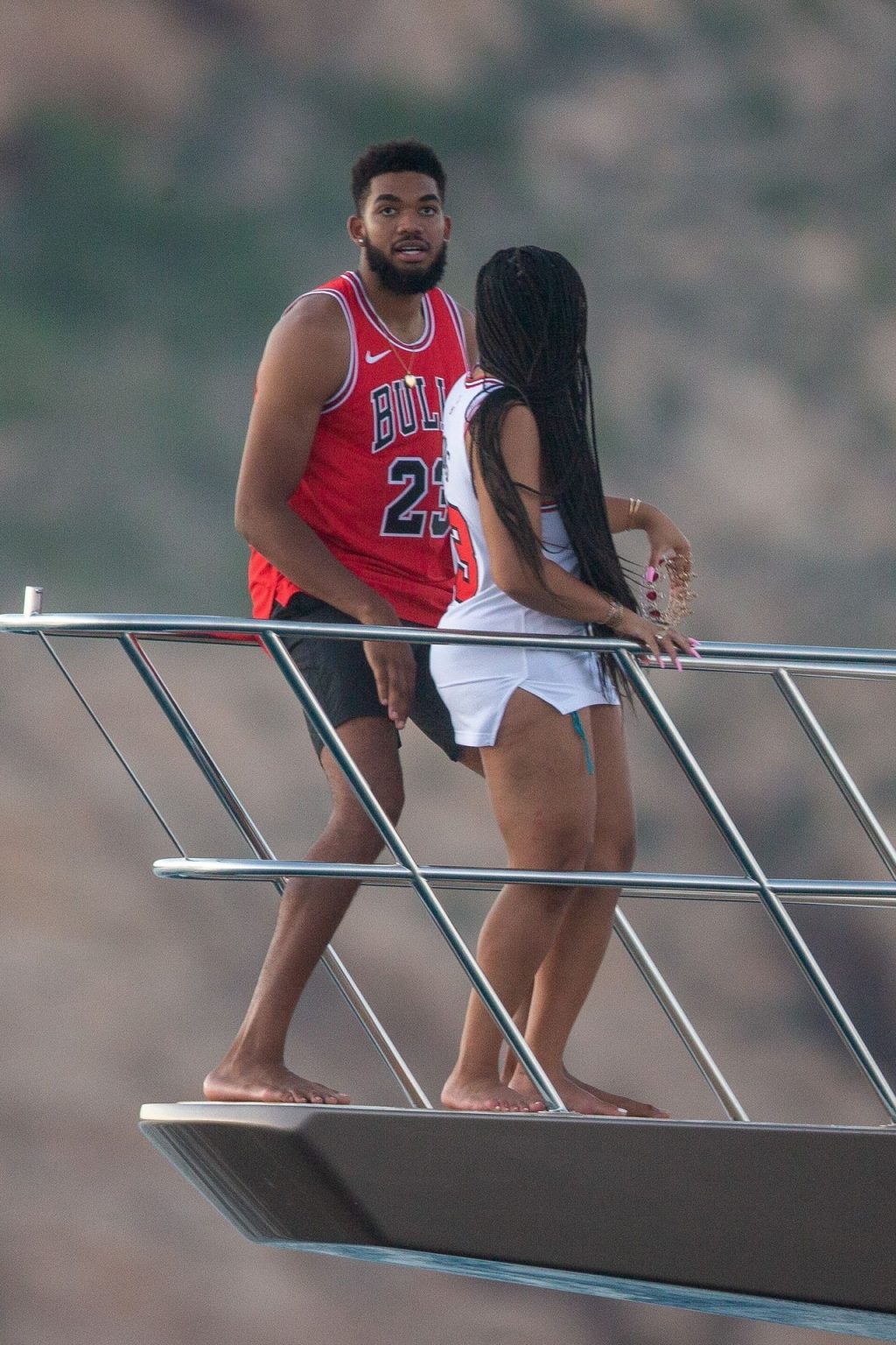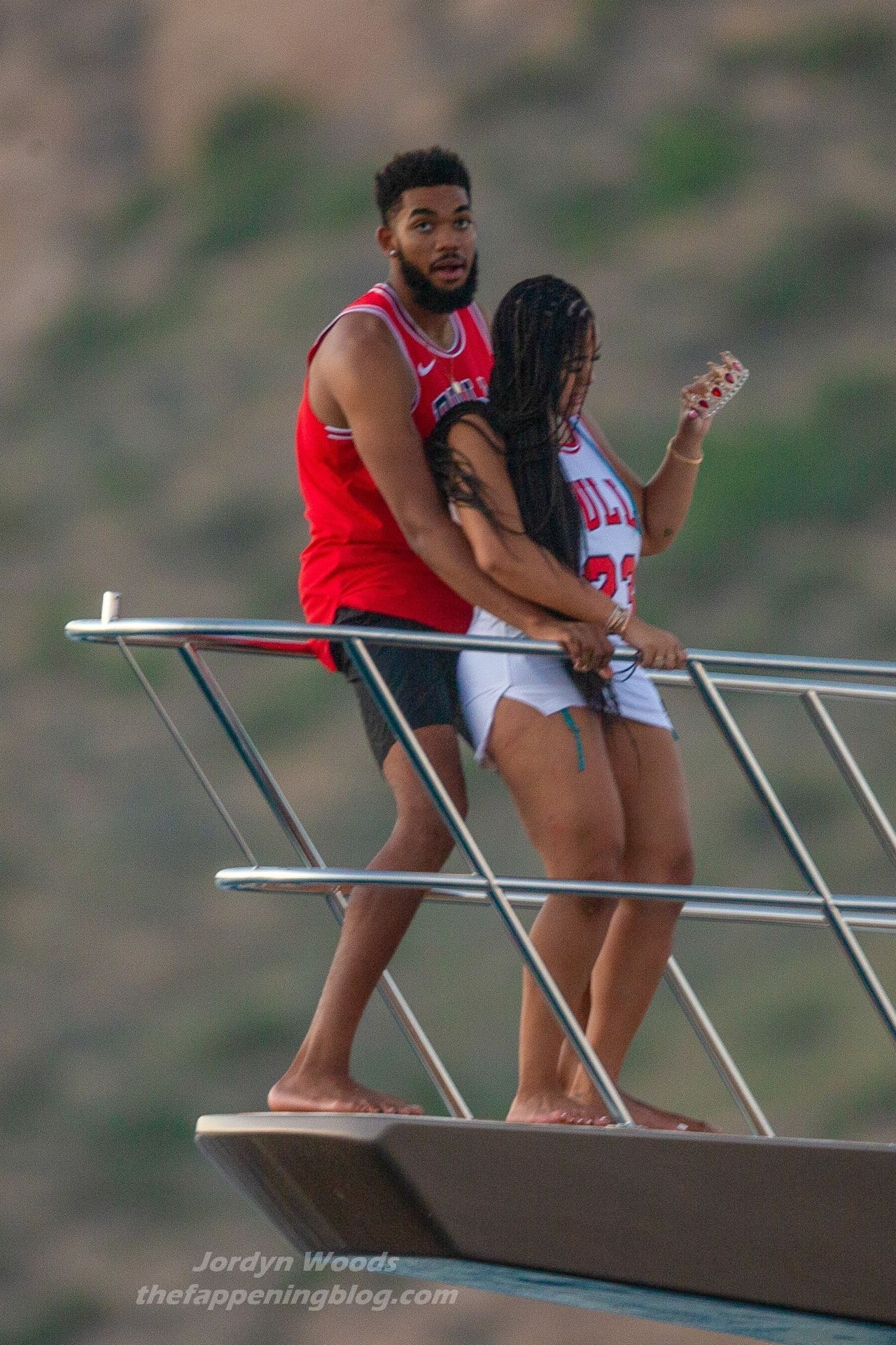 La fiesta de cumpleaños de Jordyn tuvo una temática en negro y rojo que incluyó camisetas personalizadas “Woods” con el número 23. Towns también le regaló a Jordyn una camiseta firmada de Michael Jordan que se vende por alrededor de $8k. Jordyn está de vacaciones en Cabo y la pareja fue vista relajándose en un yate, haciendo jet ski y acercándose durante todo el día.