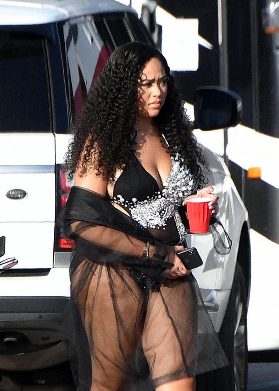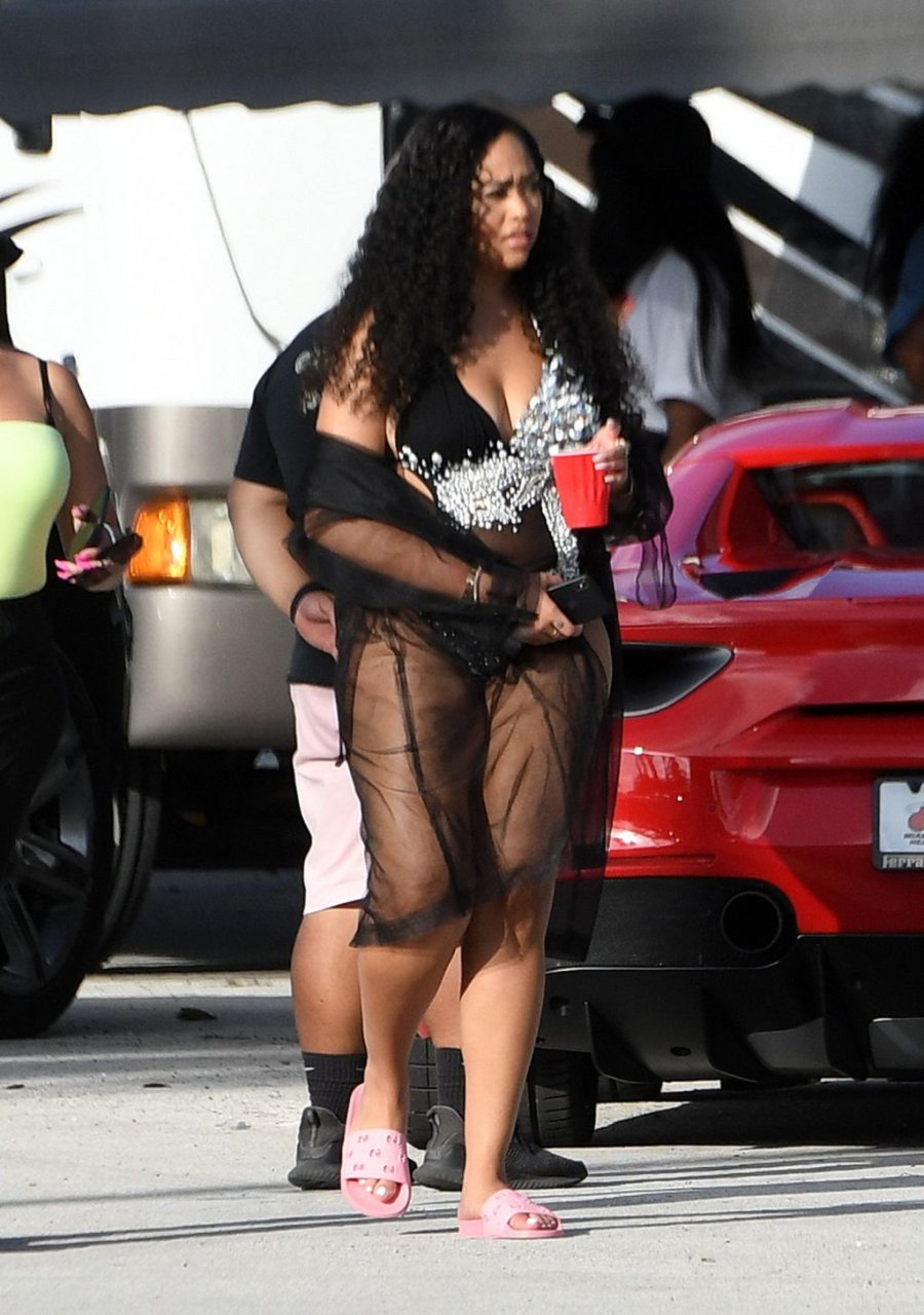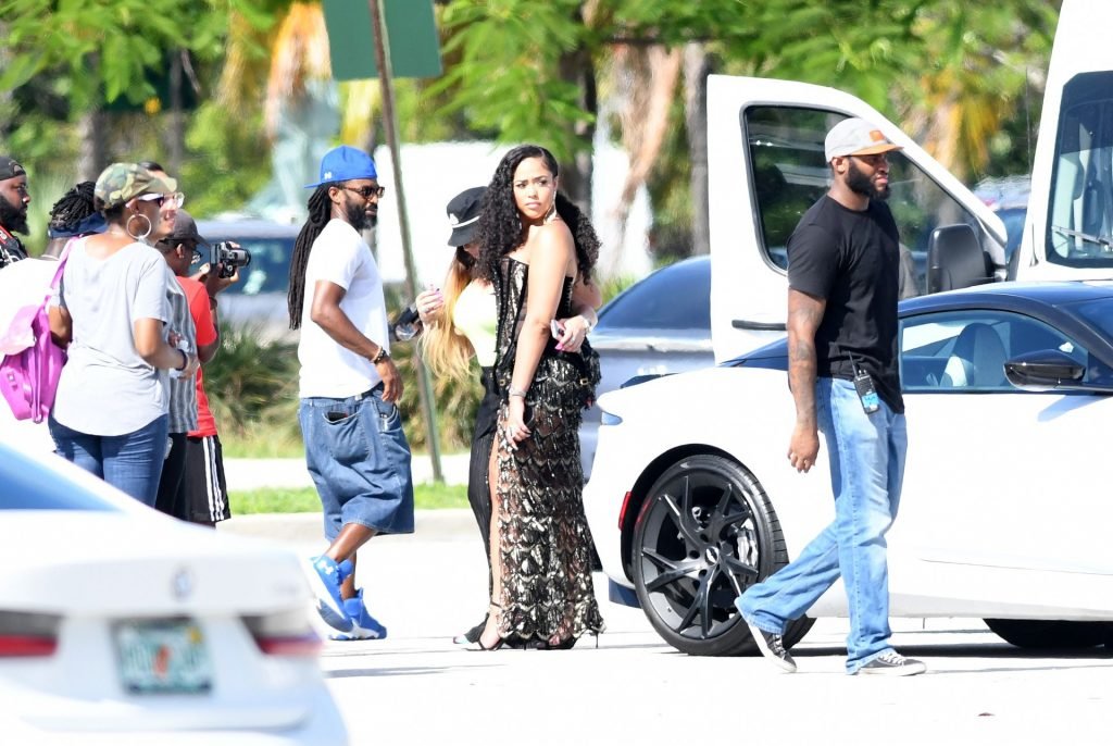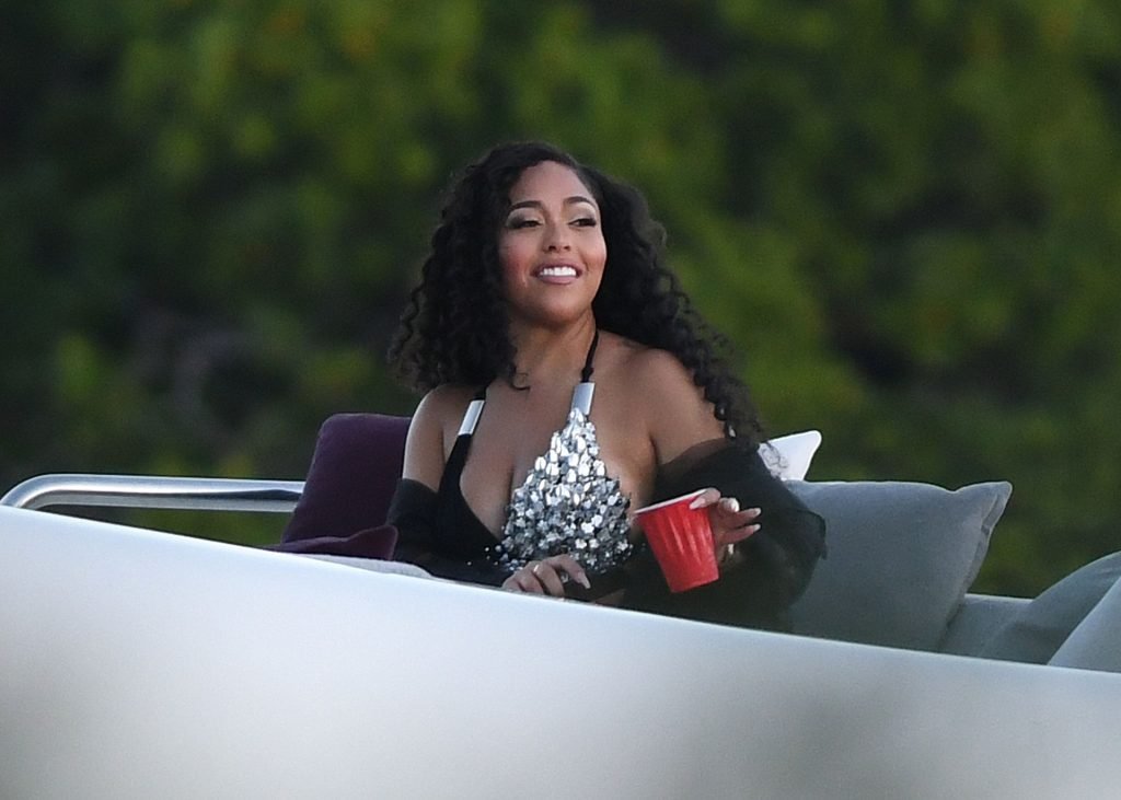La ex mejor amiga de Kylie Jenner, Jordyn Woods, muestra sus curvas con lencería mientras se la ve en el set de un video musical en Miami, 17/07/2019.