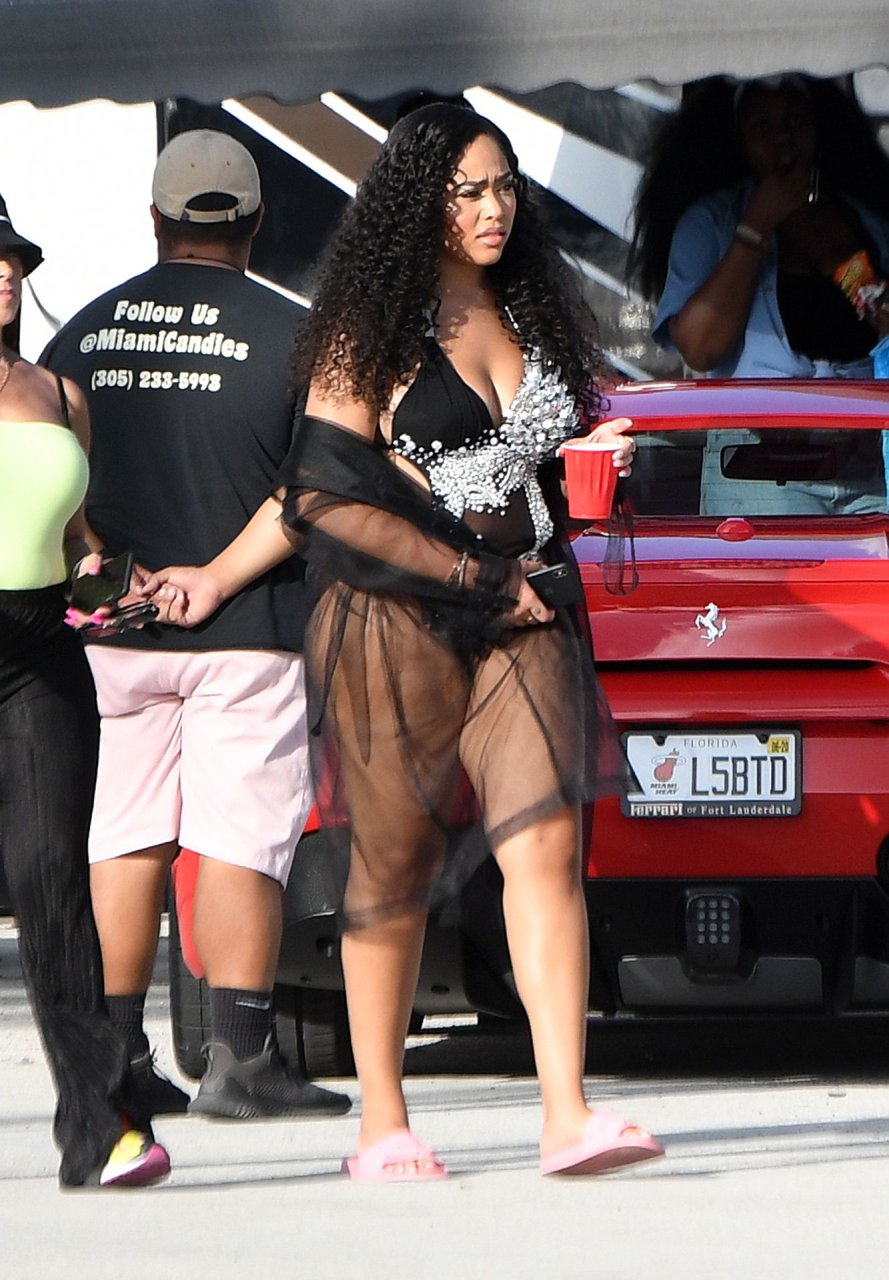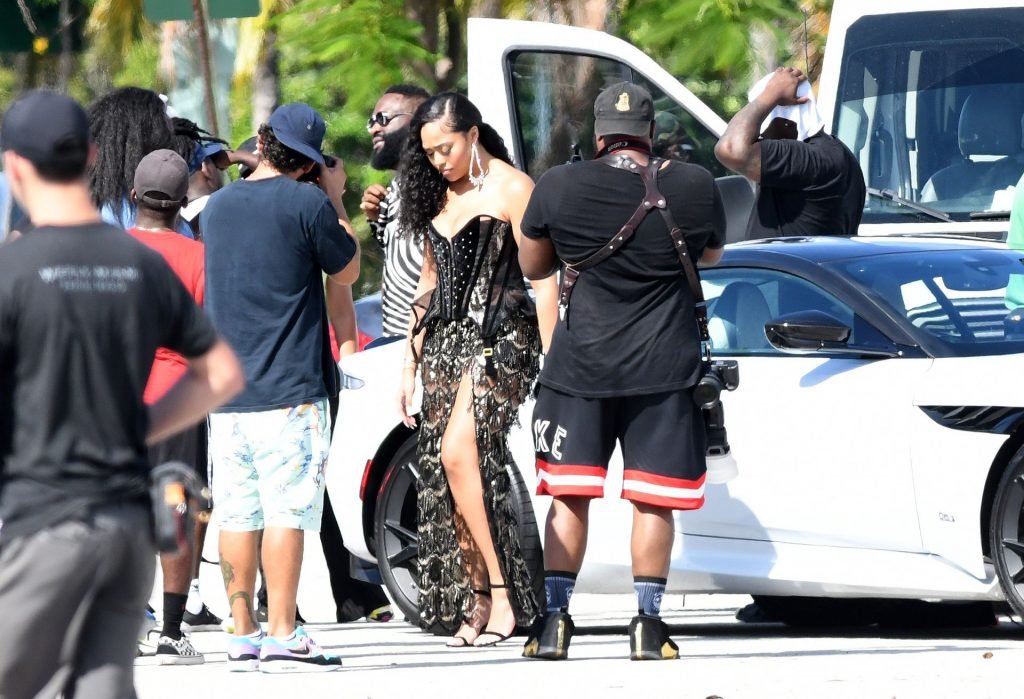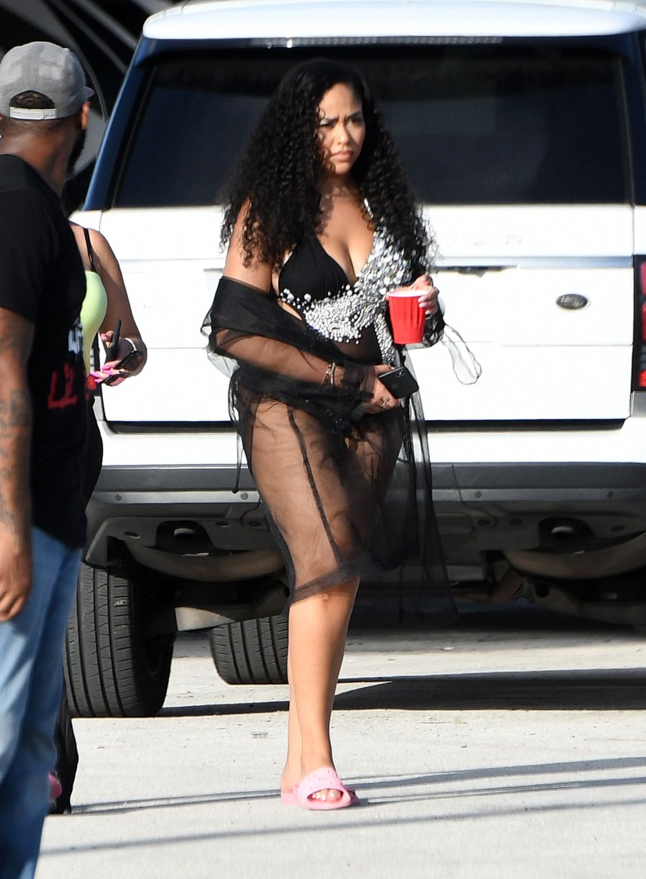 La ex mejor amiga de Kylie Jenner, Jordyn Woods, muestra sus curvas con lencería mientras se la ve en el set de un video musical en Miami, 17/07/2019.