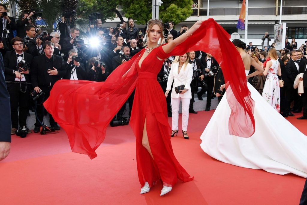 Josephine Skriver asiste a la proyección de “Le Belle Epoque” en la alfombra roja del 72º Festival de Cine de Cannes en Francia, 20/05/2019. La impresionante modelo de 26 años mostró su escote de “Ángel de VS”, vistiendo un hermoso vestido rojo.