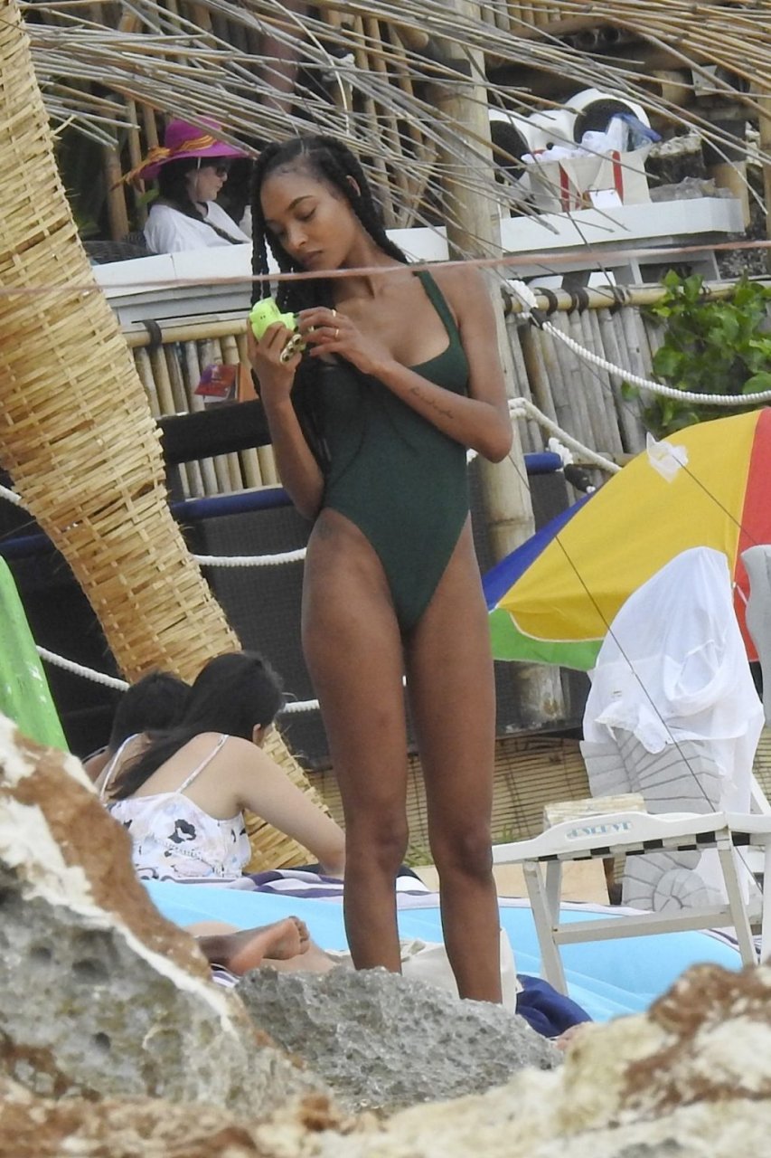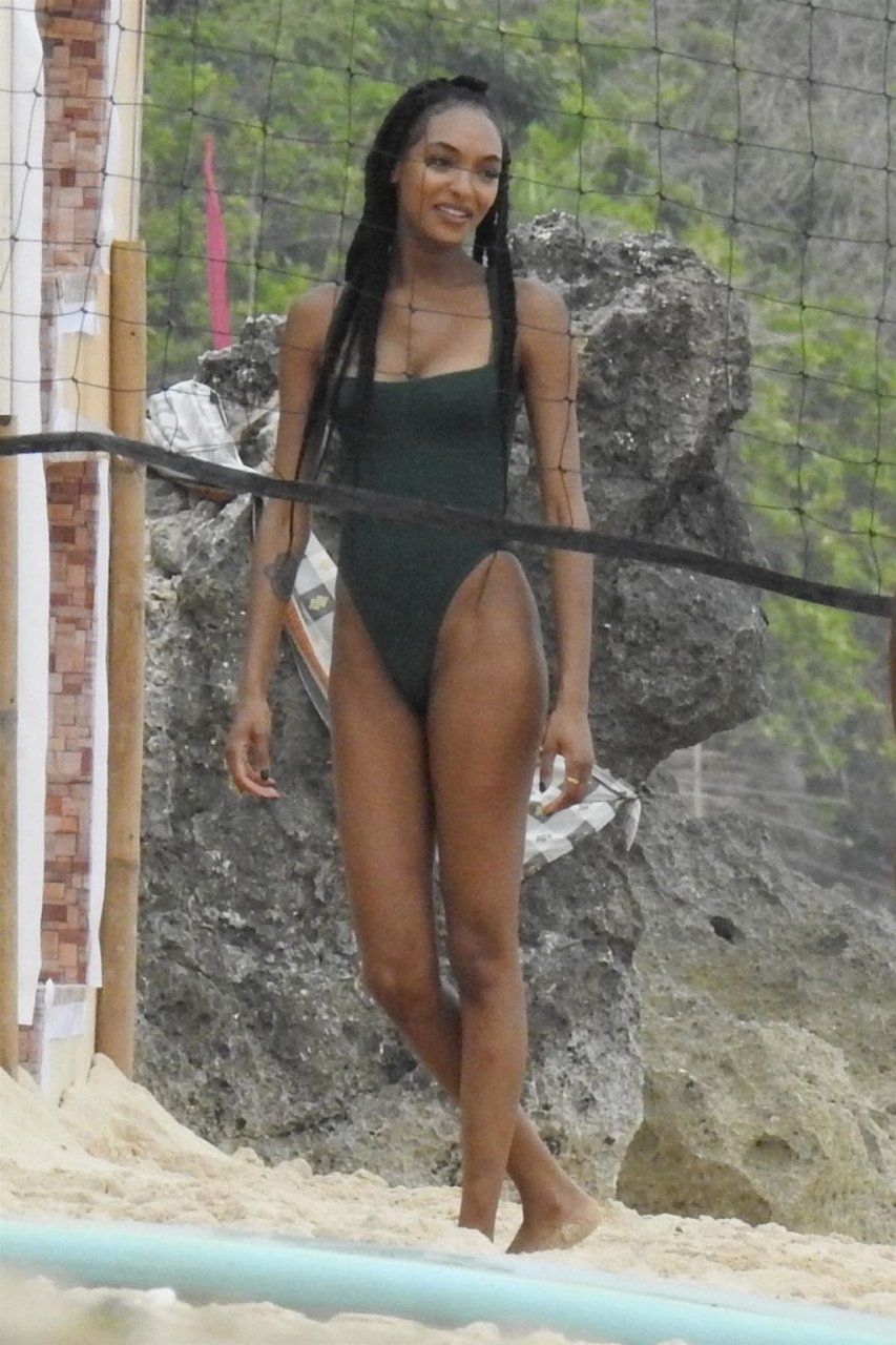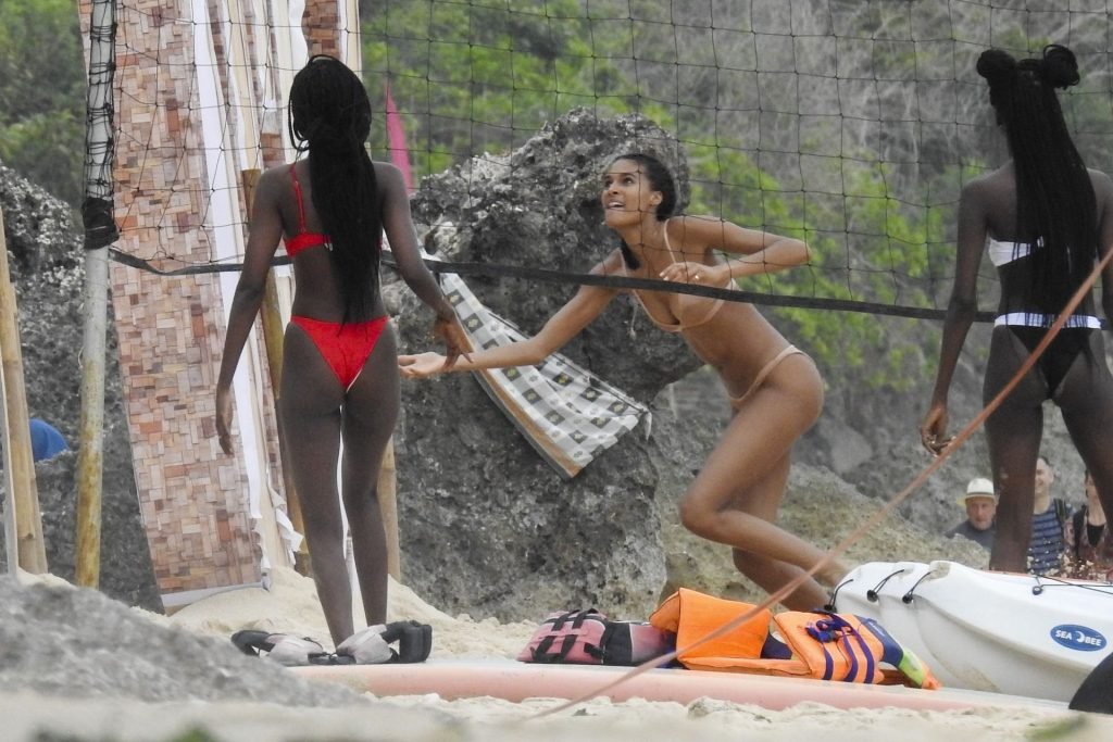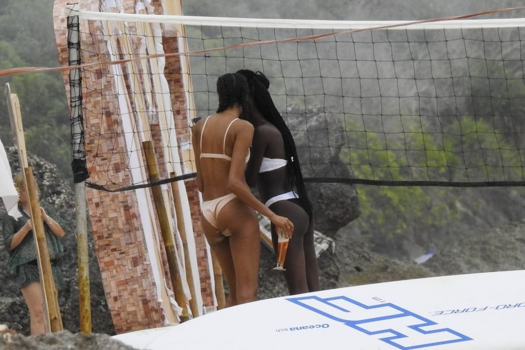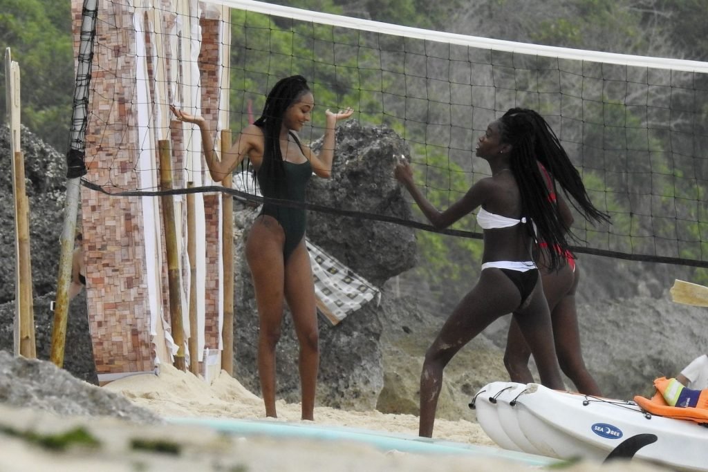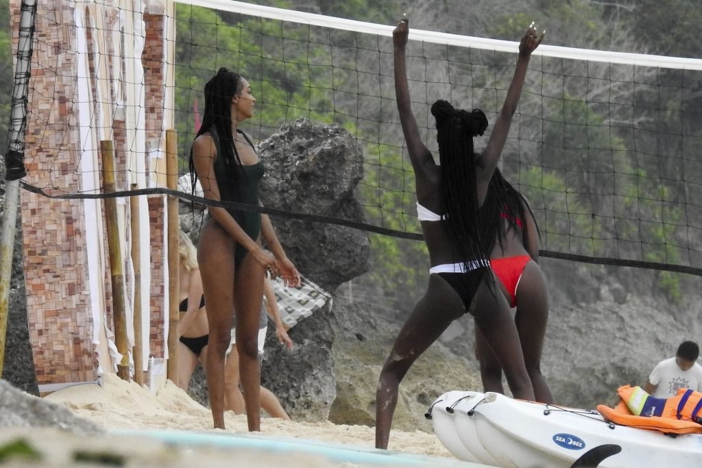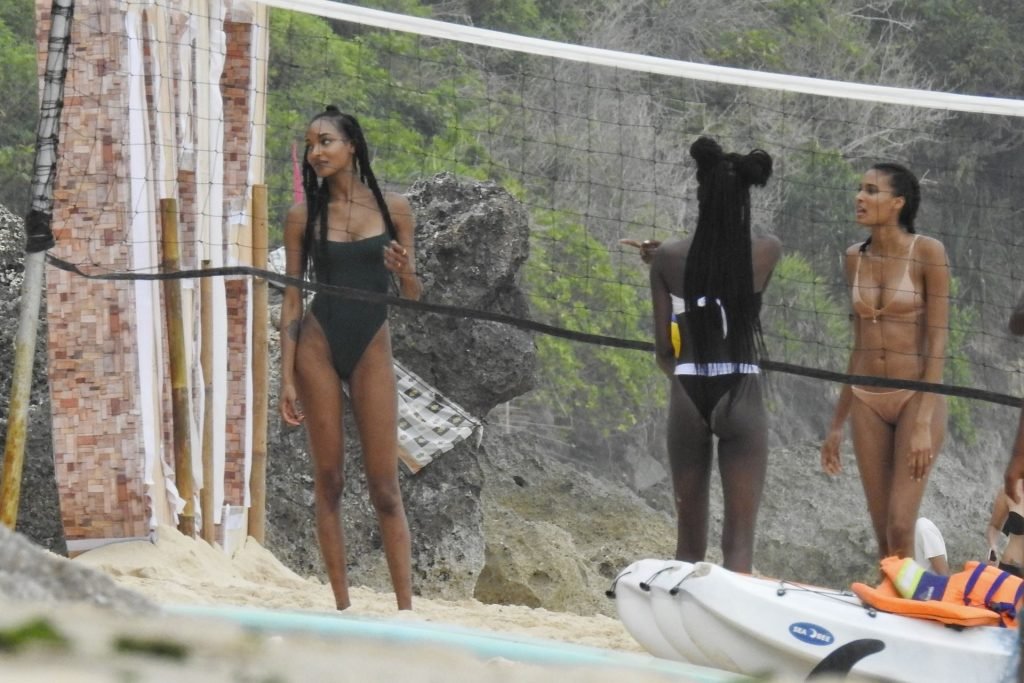 Supermodelos Jourdan Dunn y Cindy Bruna muestran sus físicos tonificados con elegantes trajes de baño mientras disfrutan de un día divertido con algunos amigos en la playa de Bali, 01/03/2019.