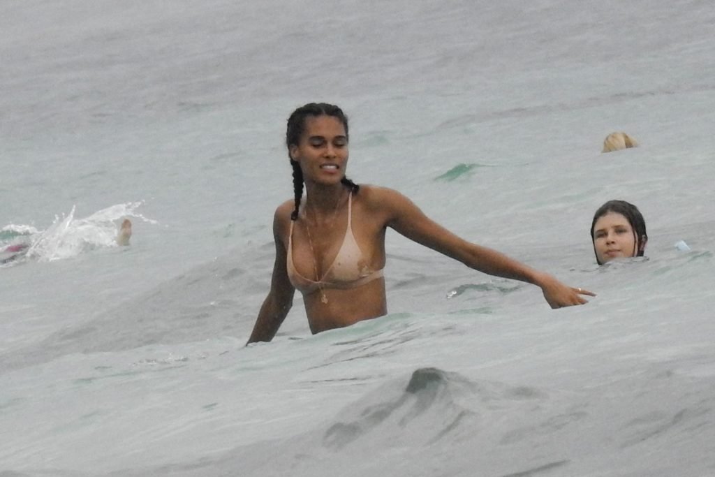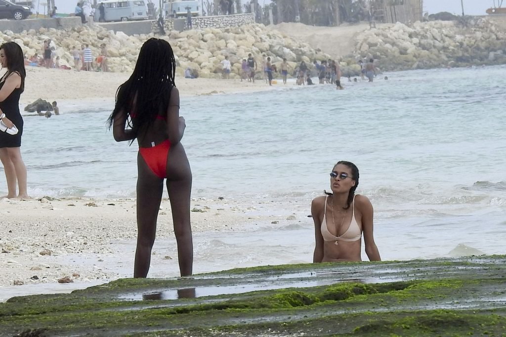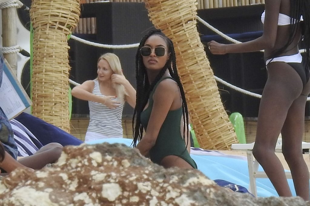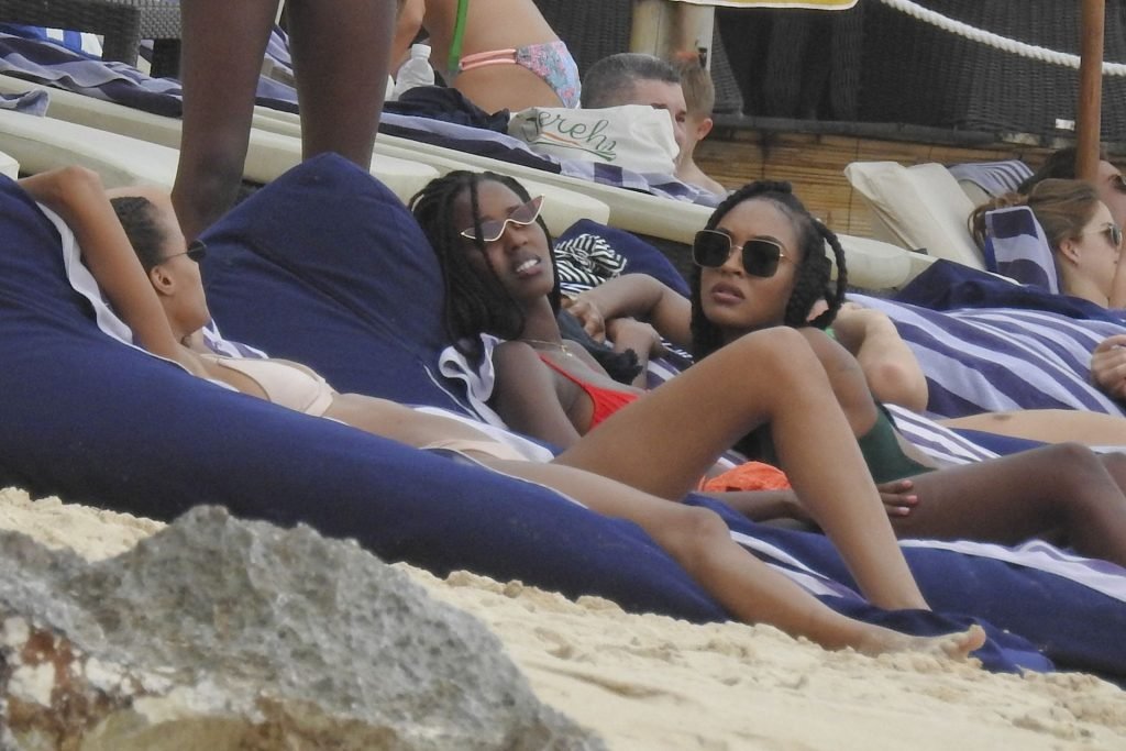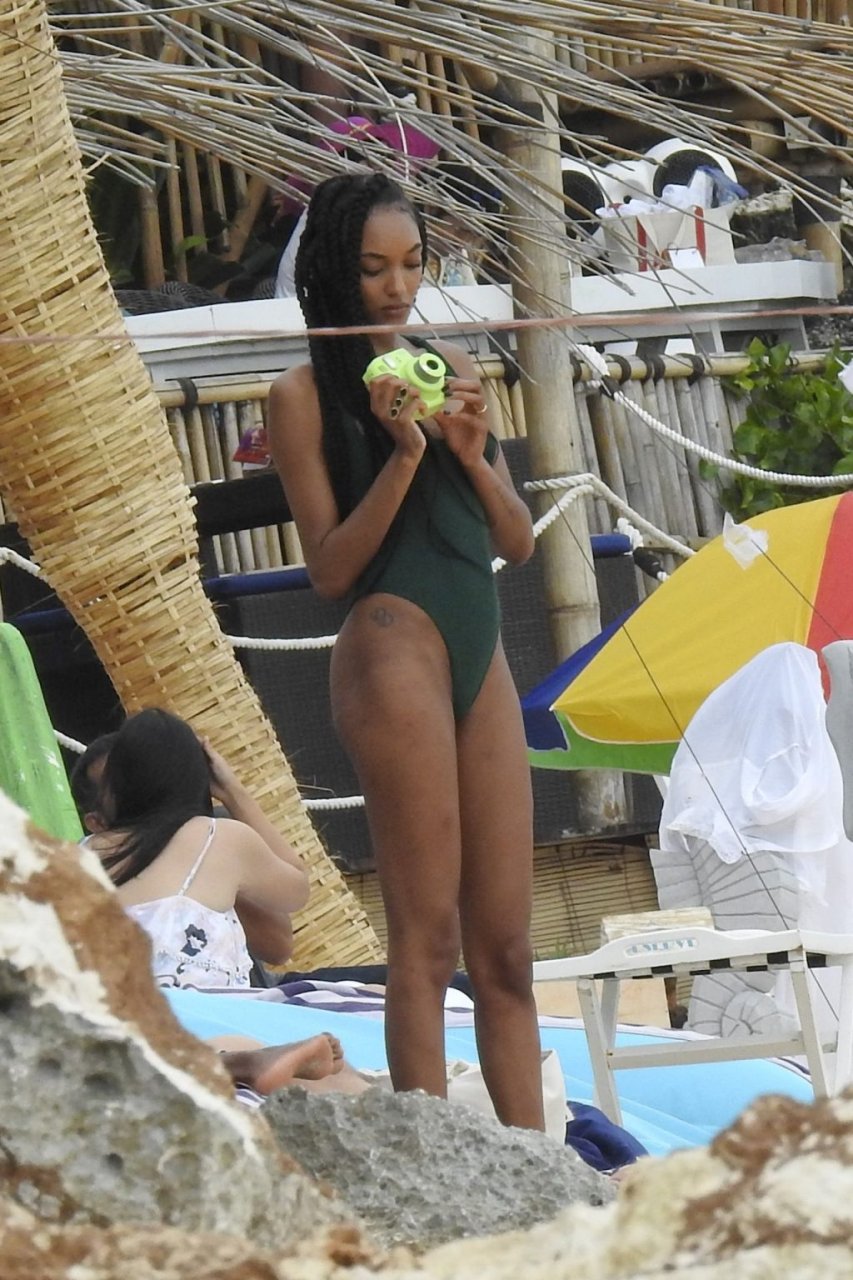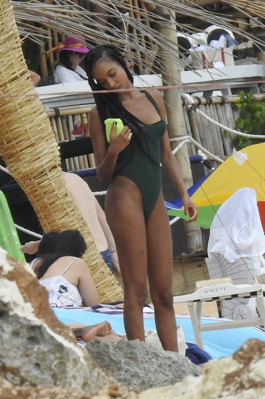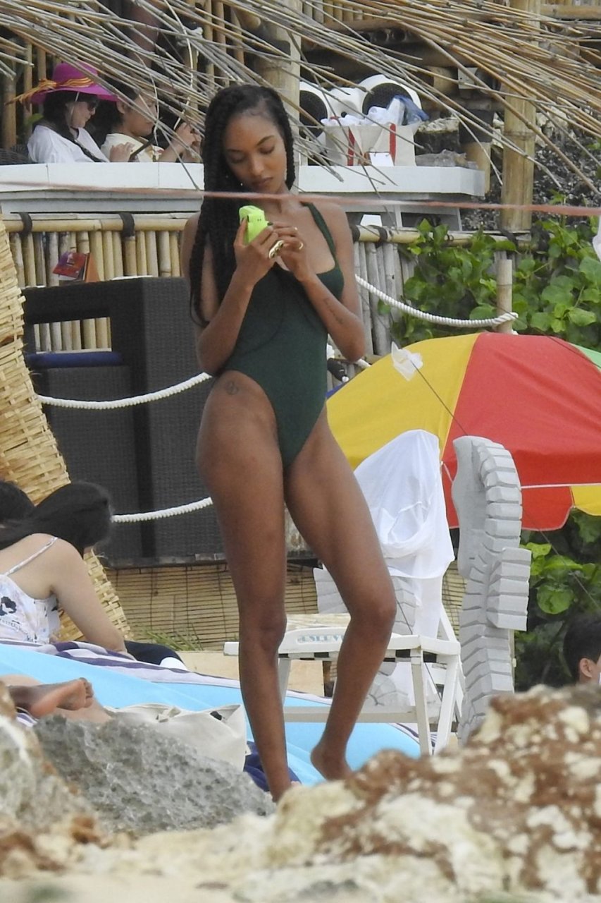 Supermodelos Jourdan Dunn y Cindy Bruna muestran sus físicos tonificados con elegantes trajes de baño mientras disfrutan de un día divertido con algunos amigos en la playa de Bali, 01/03/2019.