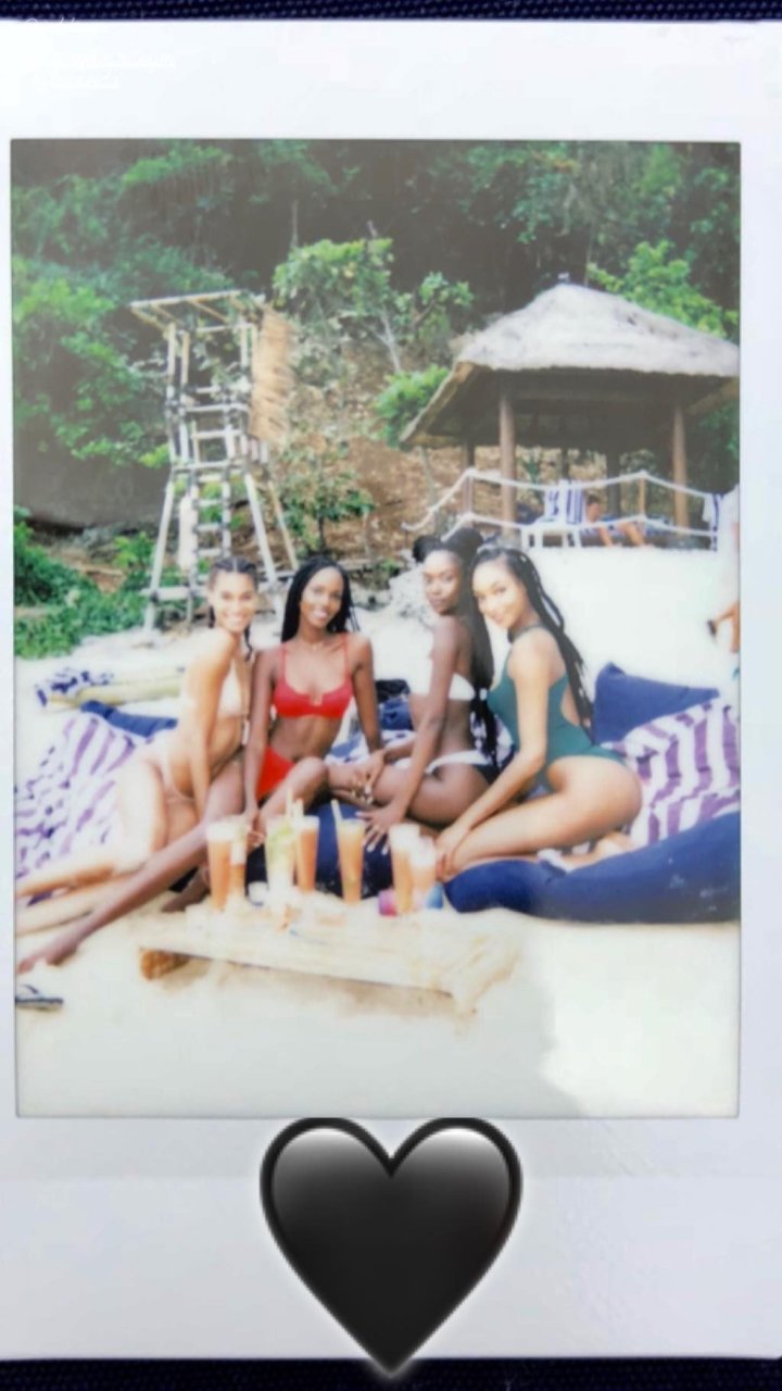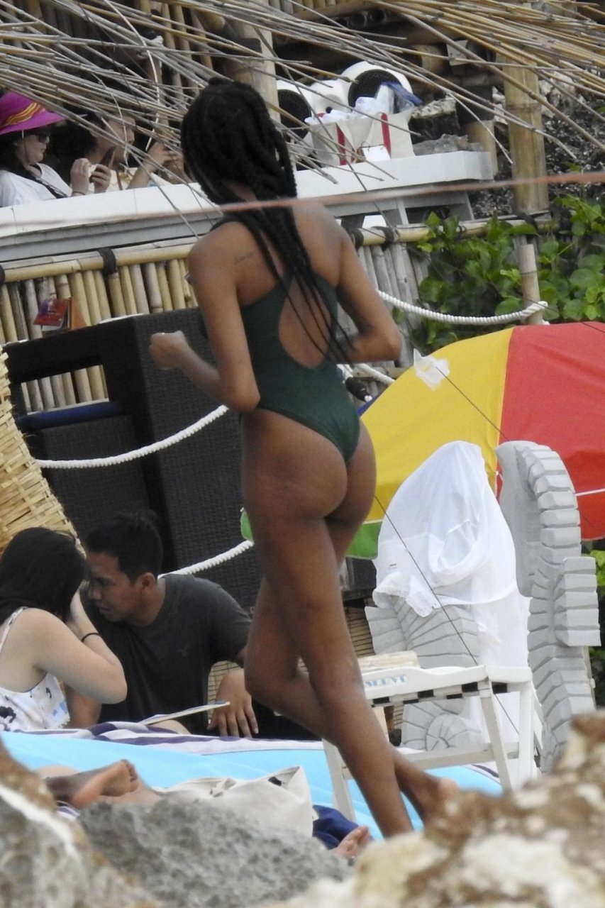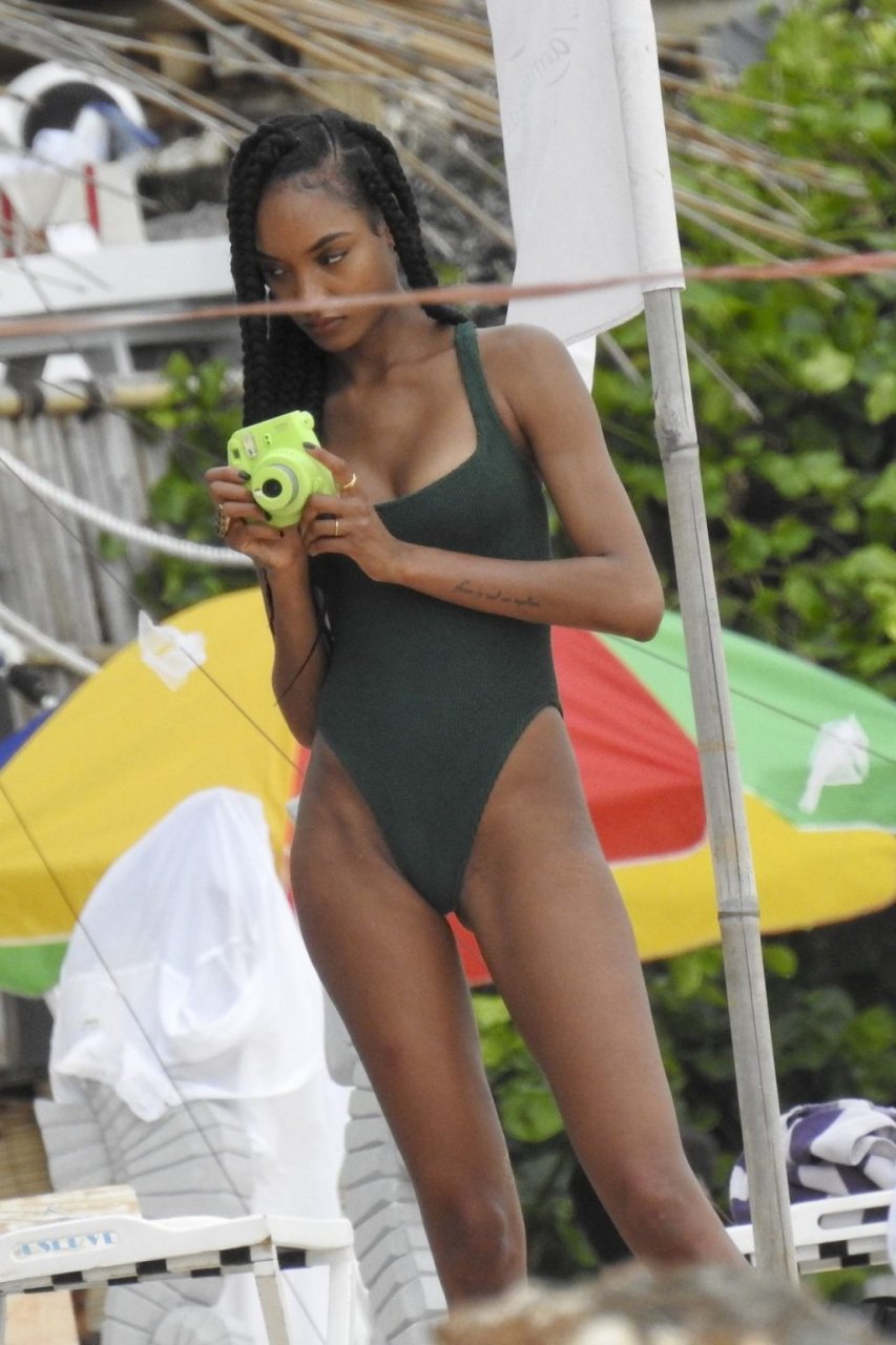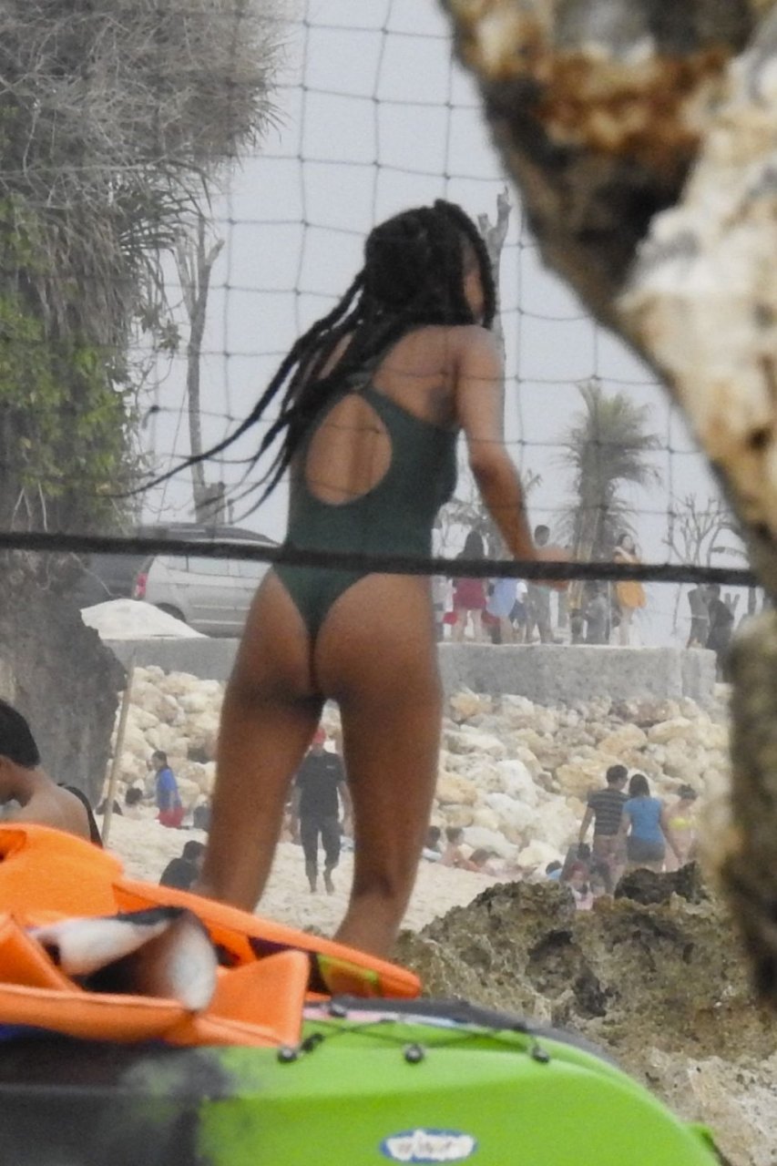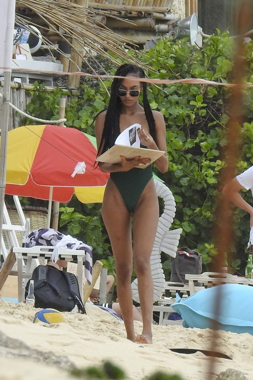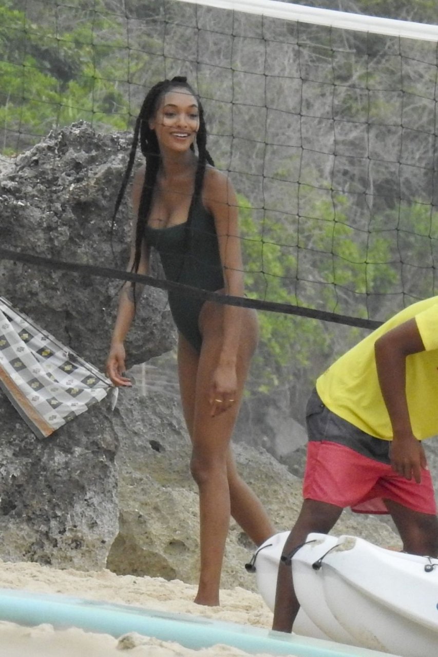 Supermodelos Jourdan Dunn y Cindy Bruna muestran sus físicos tonificados con elegantes trajes de baño mientras disfrutan de un día divertido con algunos amigos en la playa de Bali, 01/03/2019.