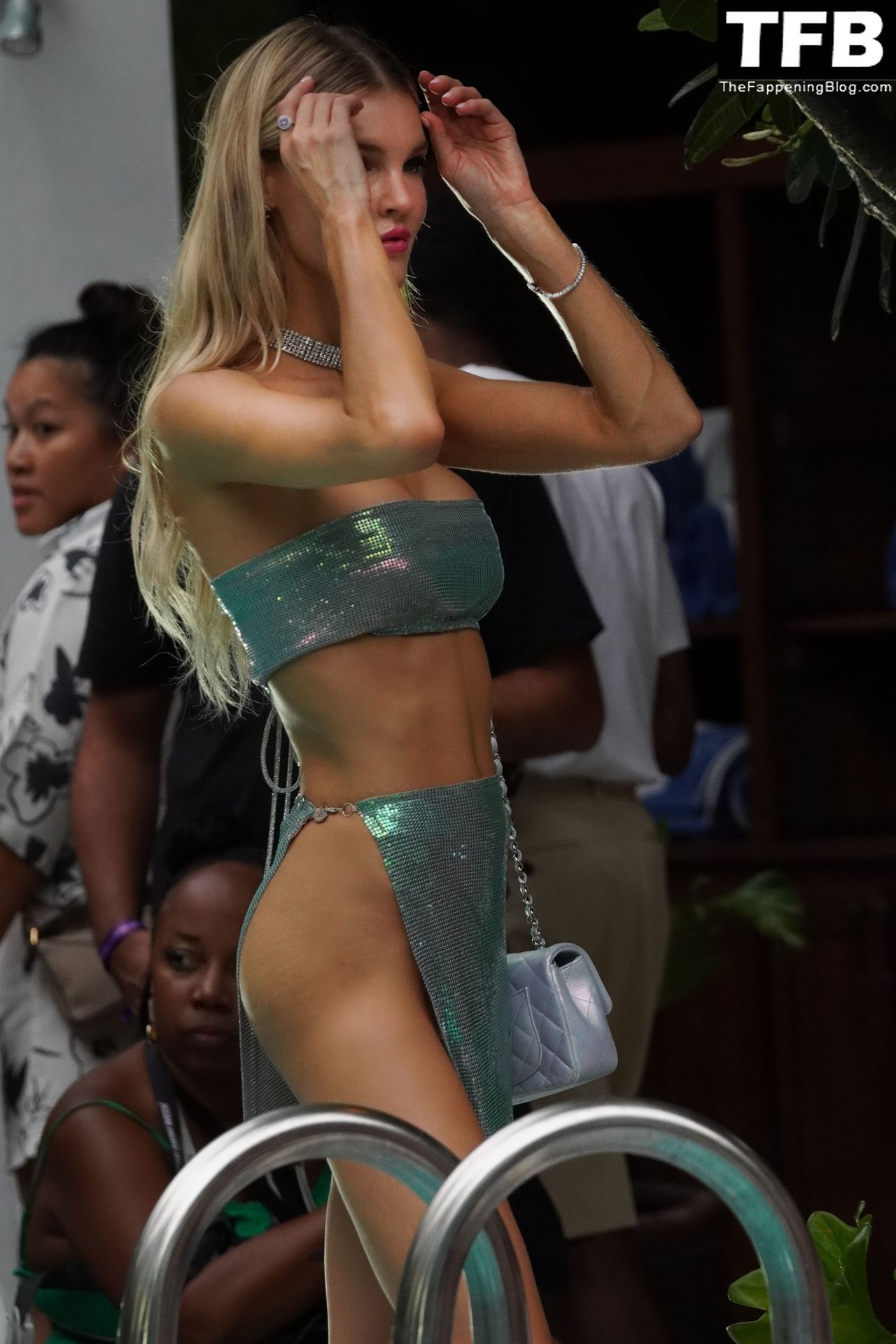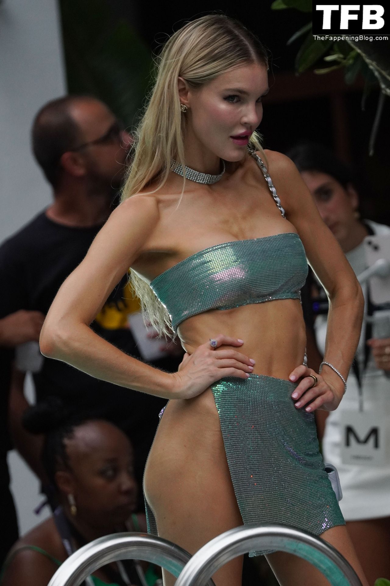 La modelo Joy Corrigan asiste al desfile de trajes de baño “Poster Girl” Cruise ’23 con un conjunto metálico casi inexistente en Soho Beach House en South Beach, 16/07/2022.