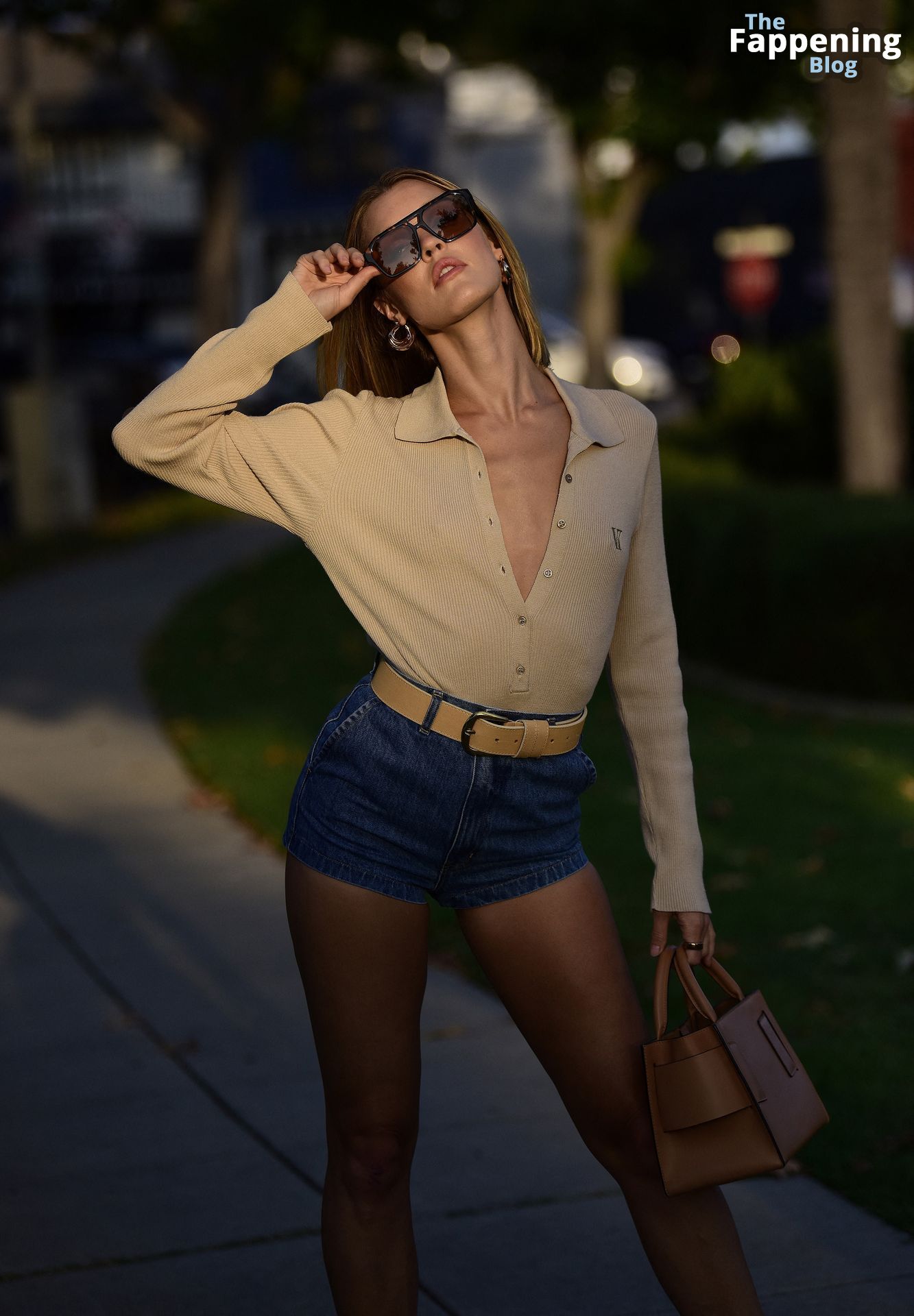 Joy Corrigan muestra sus piernas tonificadas en una sesión de moda urbana (7 fotos)