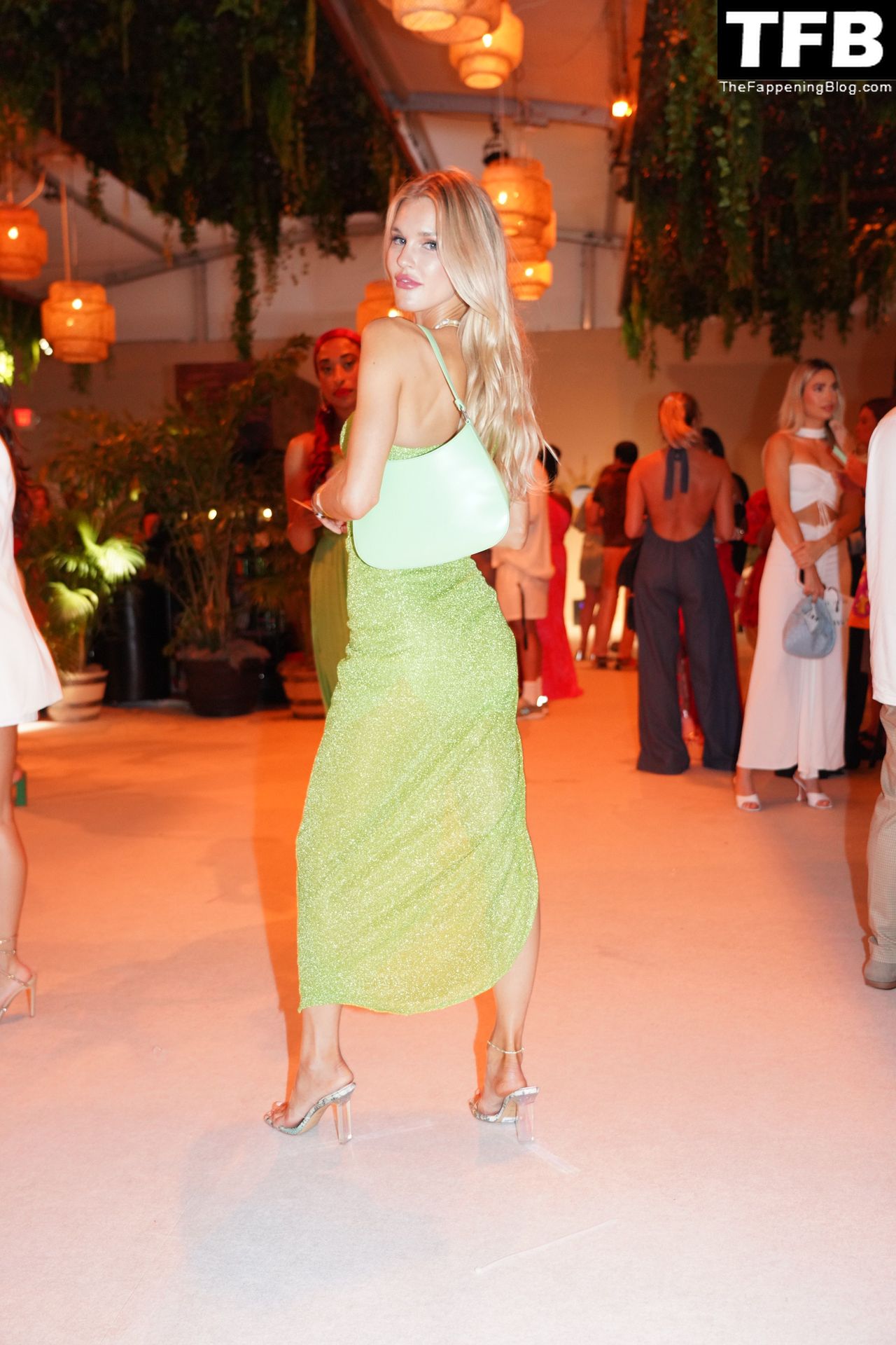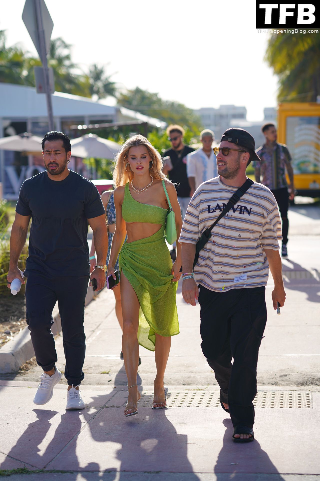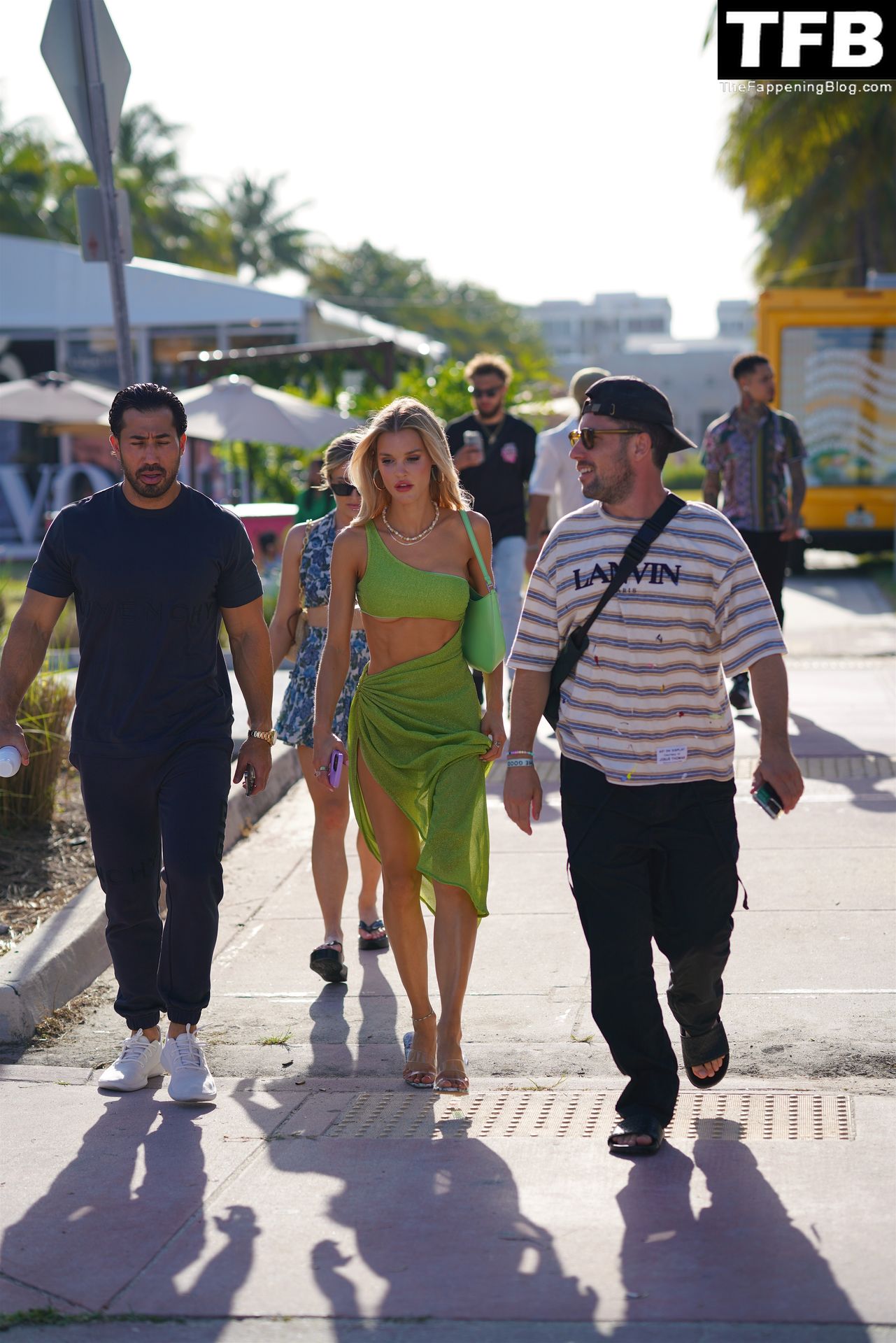 La modelo estadounidense y estrella de The Fappening Joy Corrigan luce impresionante con un conjunto verde transparente mientras pasea durante la Semana de la Moda de Miami Swim Week, 15/07/2022.