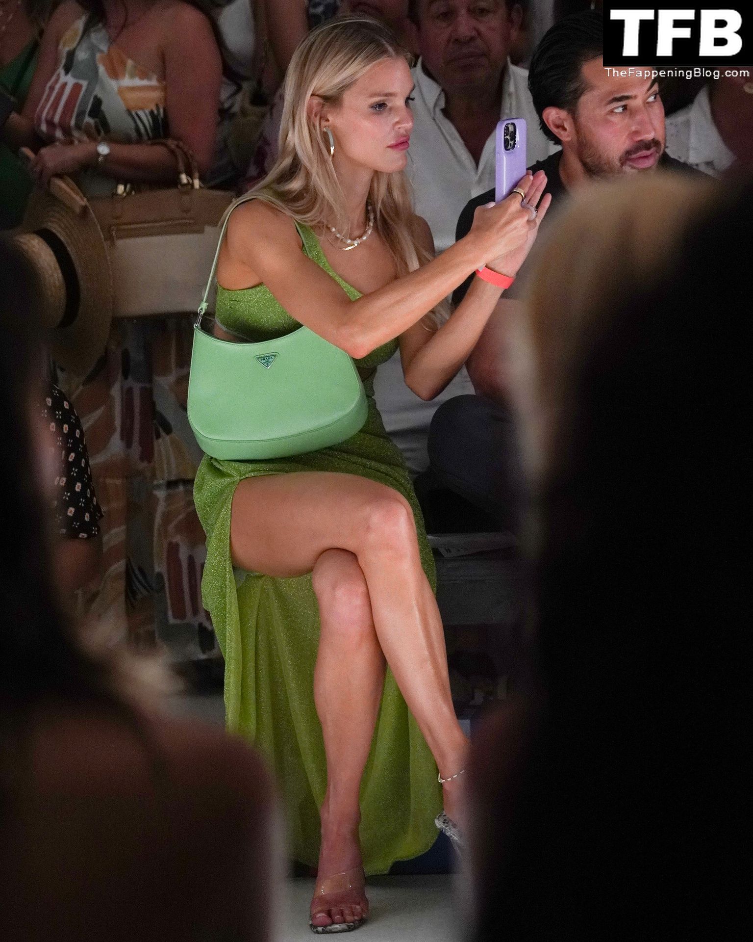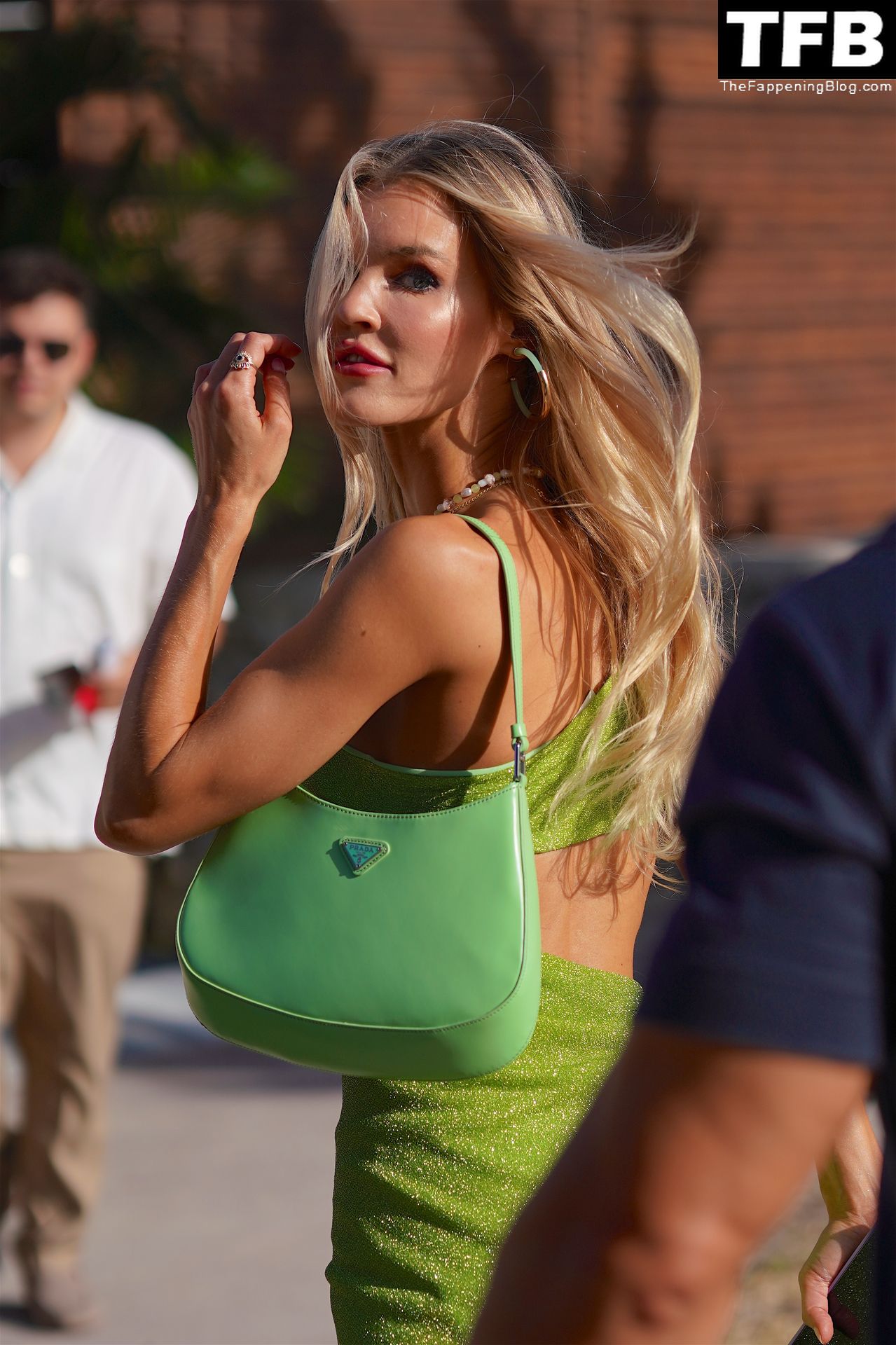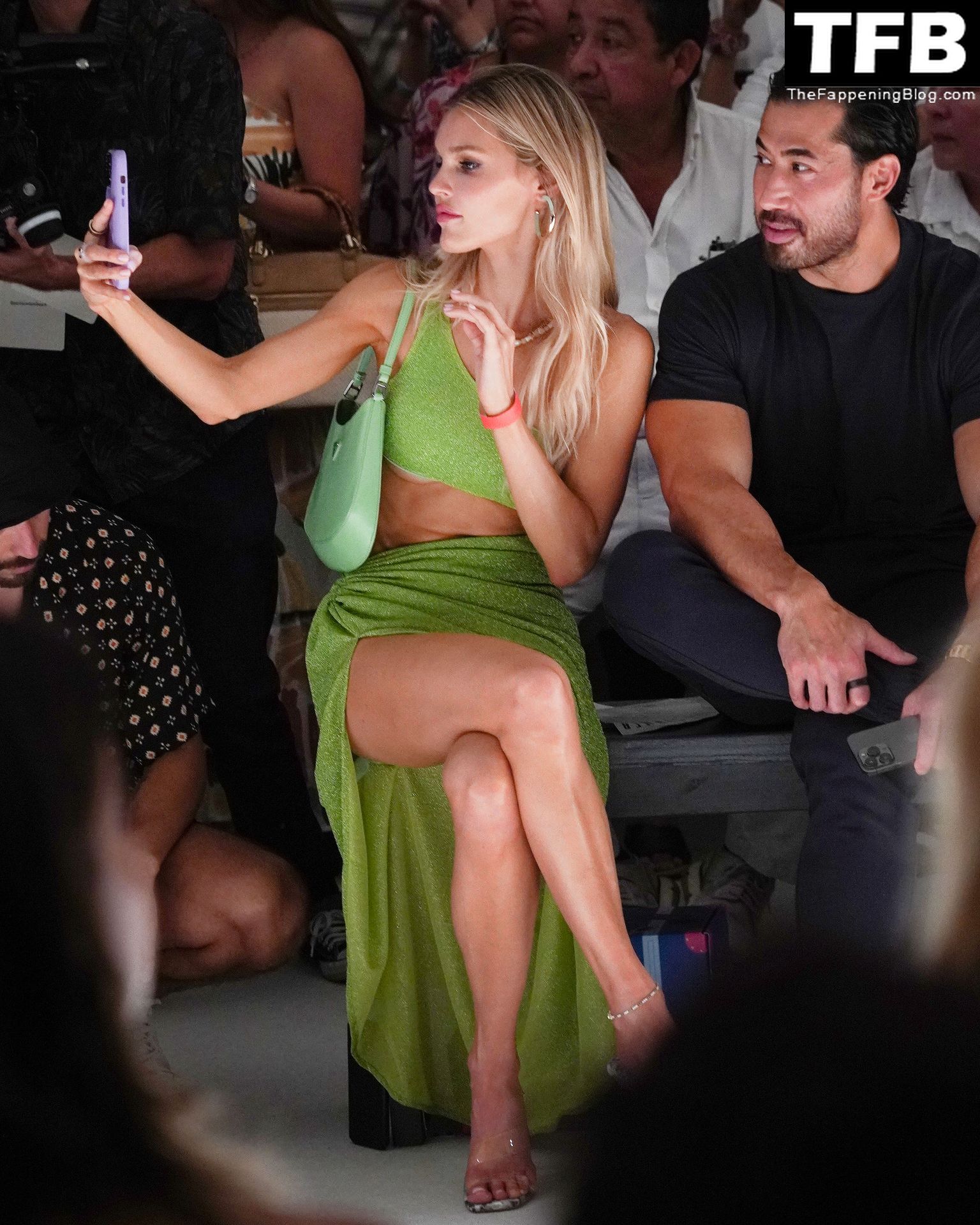 La modelo estadounidense y estrella de The Fappening Joy Corrigan luce impresionante con un conjunto verde transparente mientras pasea durante la Semana de la Moda de Miami Swim Week, 15/07/2022.