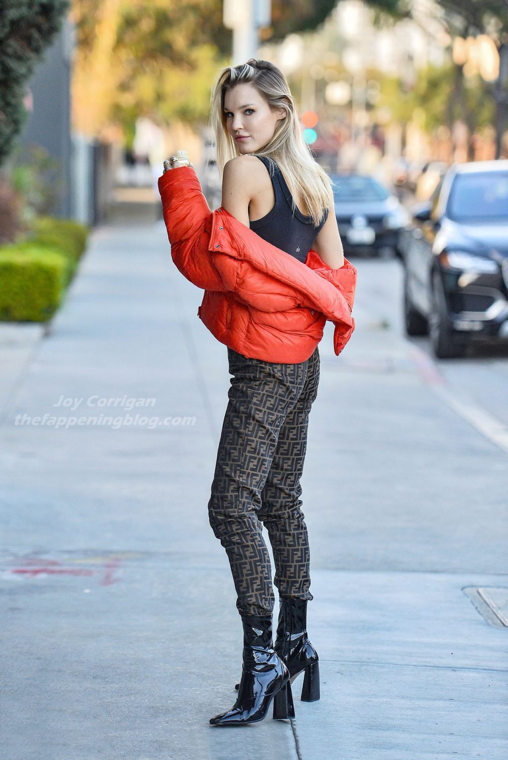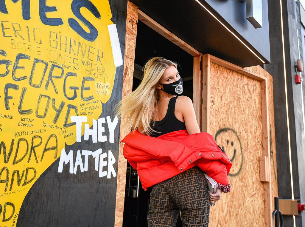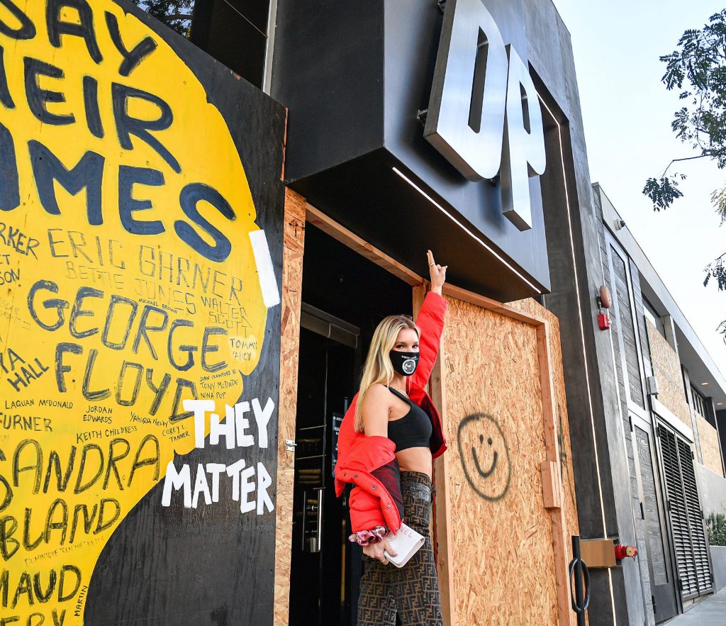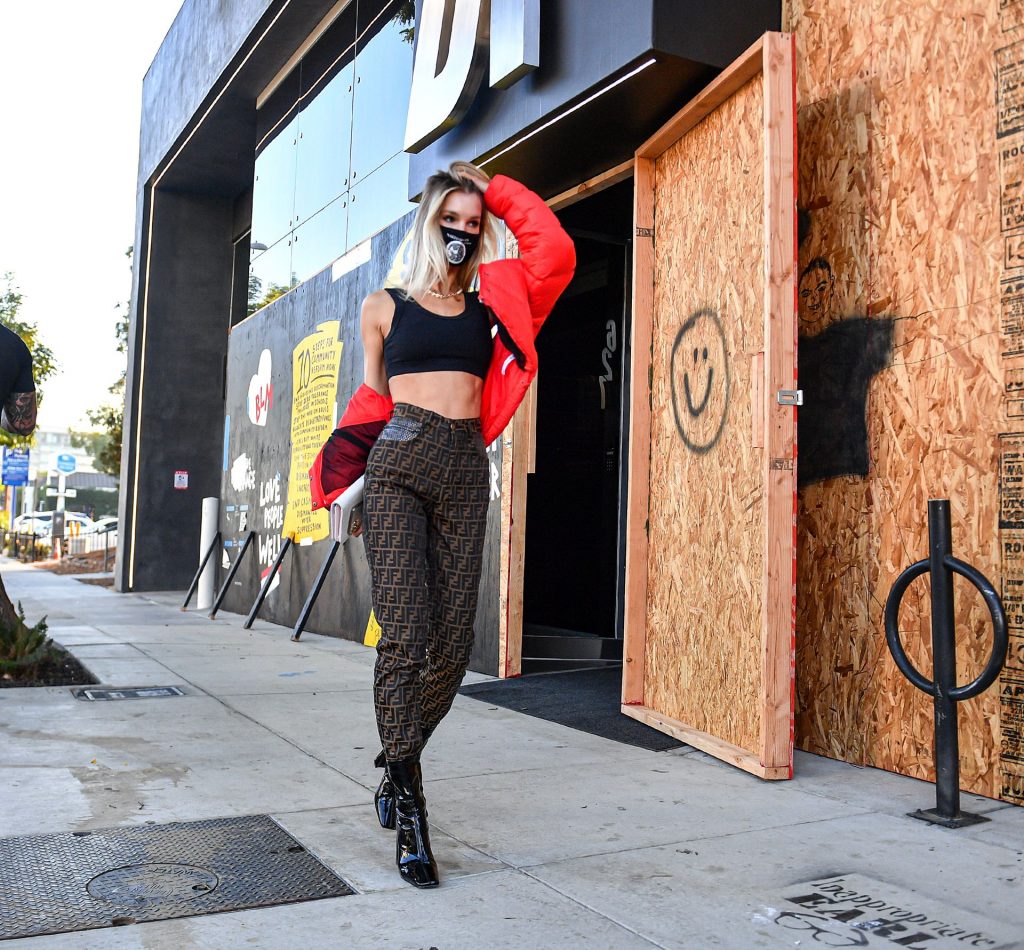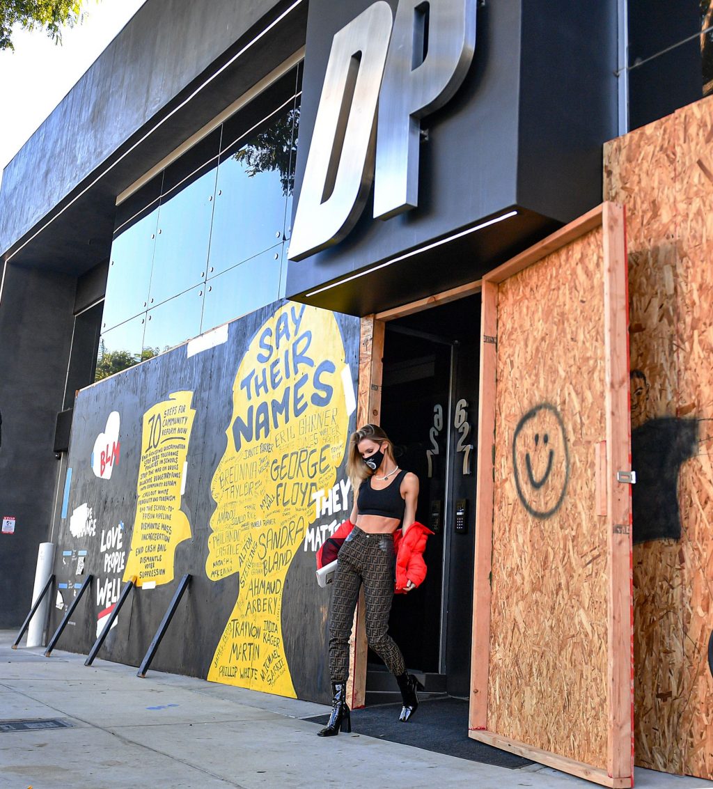 La estrella de The Fappening y modelo Joy Corrigan es vista con estilo mientras sale del DogPound Gym tras un intenso entrenamiento privado en West Hollywood, 18/11/2020.