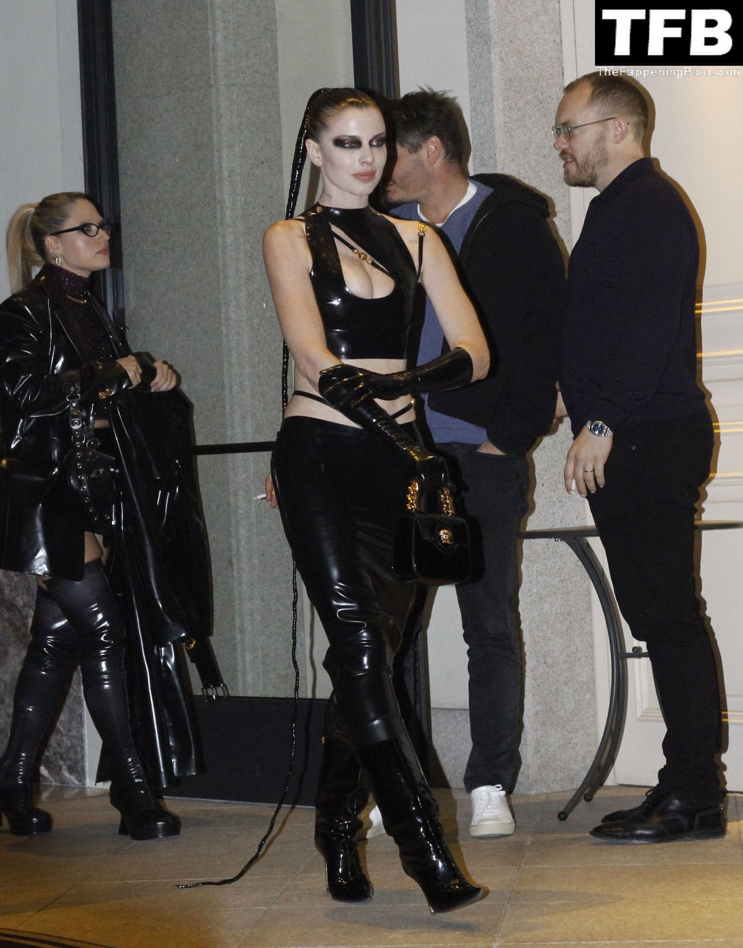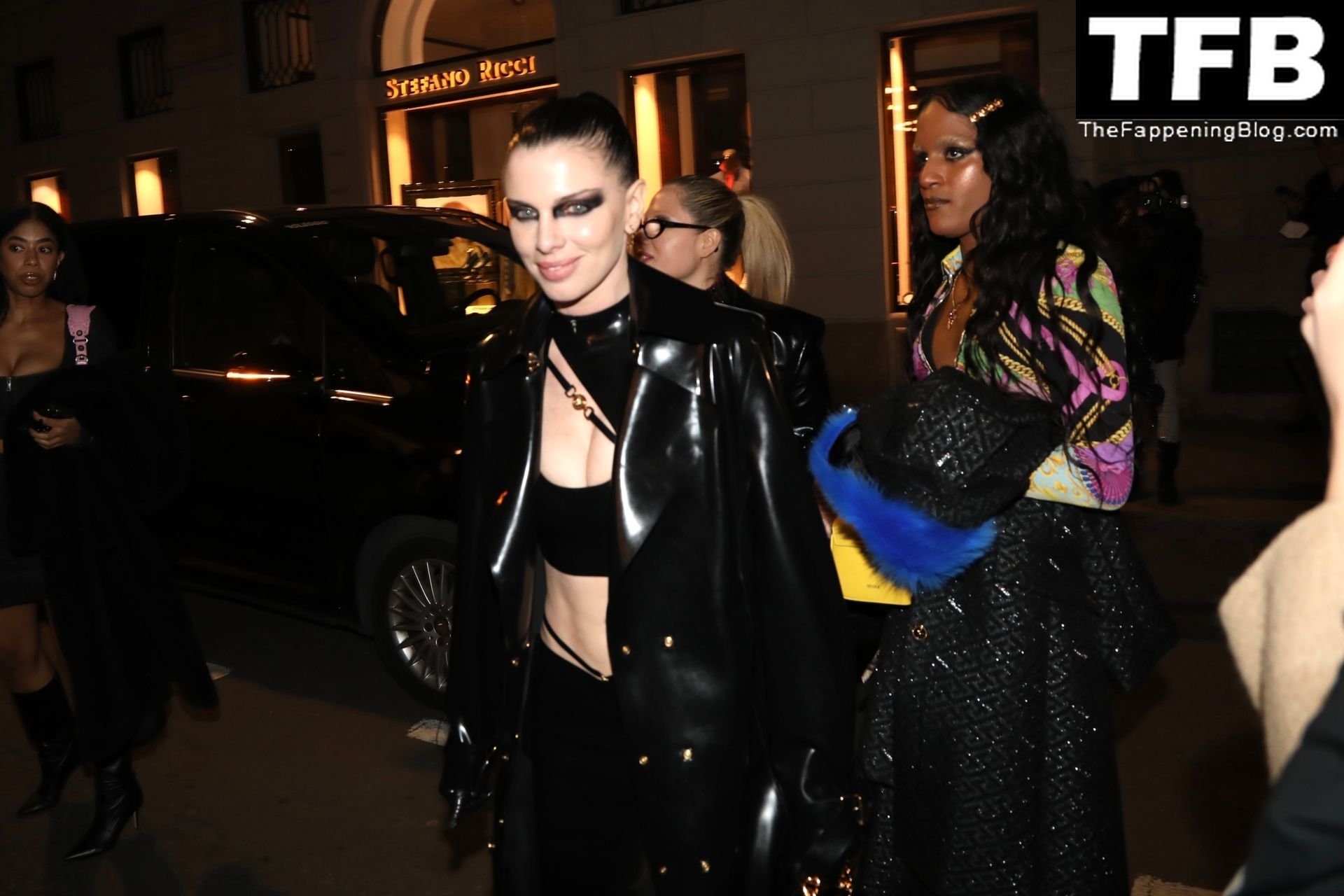 La actriz/modelo estadounidense Julia Fox llega a la cena posterior al desfile de Versace durante la Semana de la Moda Femenina de Milán Otoño-Invierno 2022-23 en Milán, Italia, 25/02/2022.