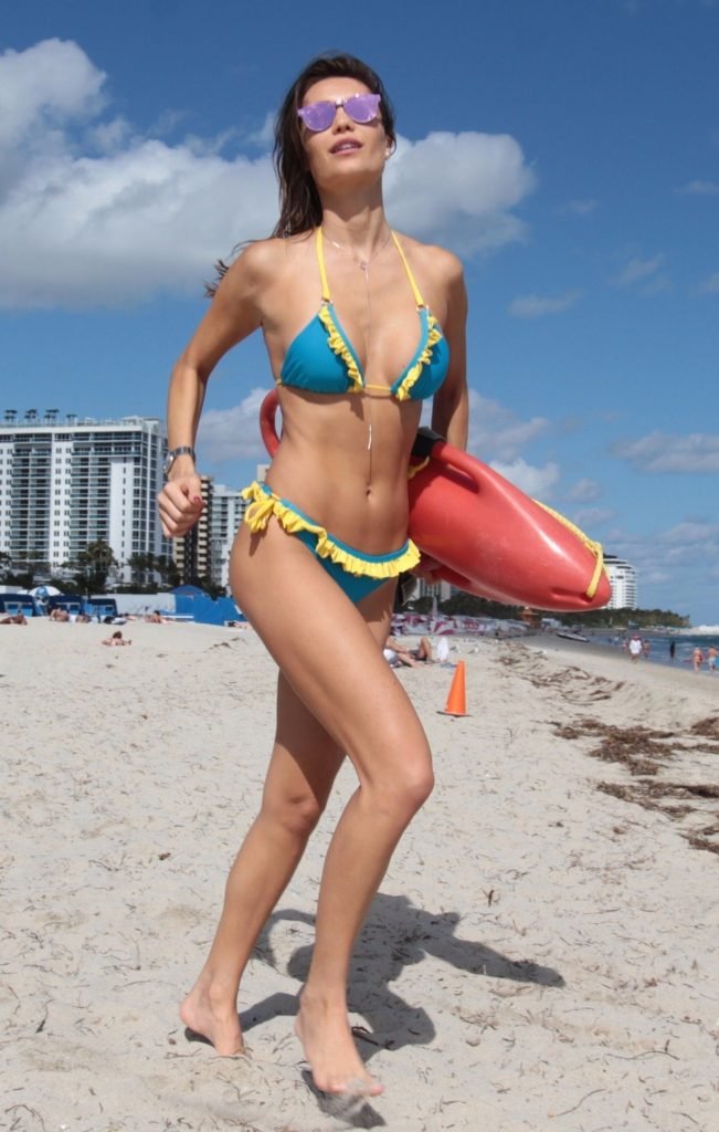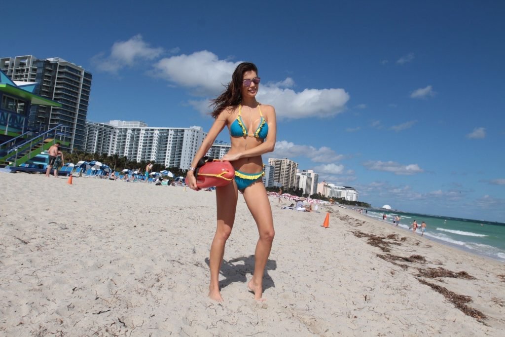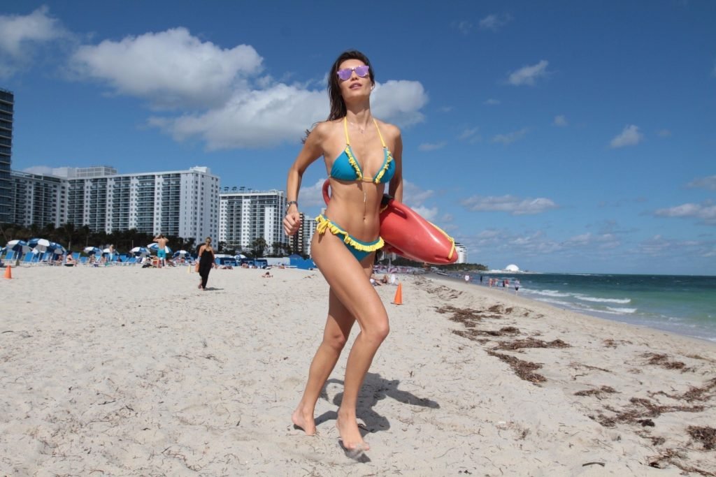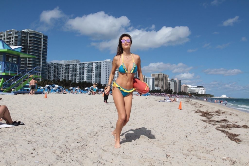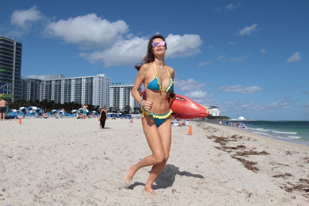 Model y diseñadora de trajes de baño Julia Pereira (30) muestra su cuerpo en bikini en la playa de Miami, 12/02/2017.