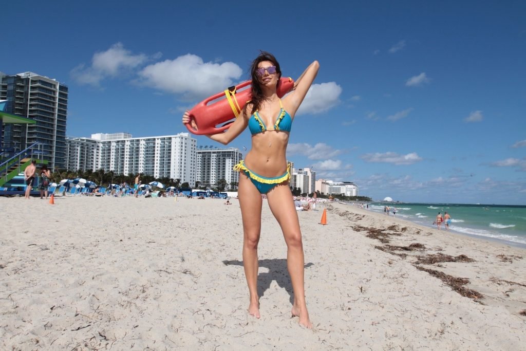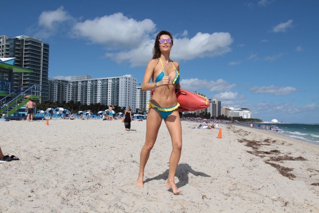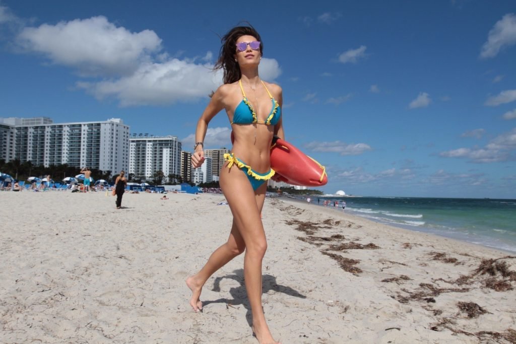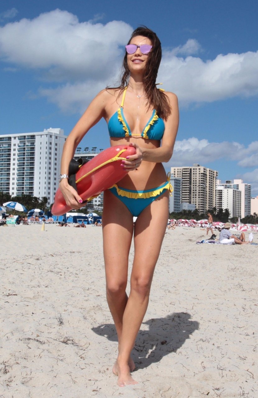 Model y diseñadora de trajes de baño Julia Pereira (30) muestra su cuerpo en bikini en la playa de Miami, 12/02/2017.