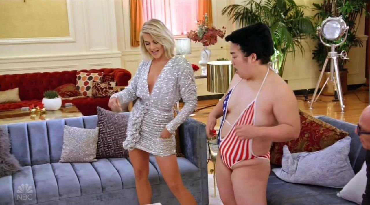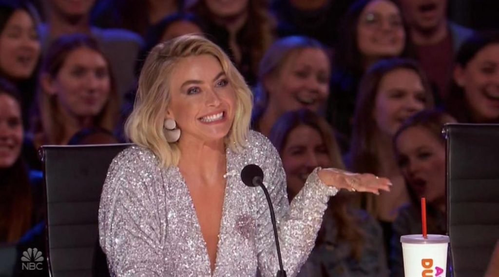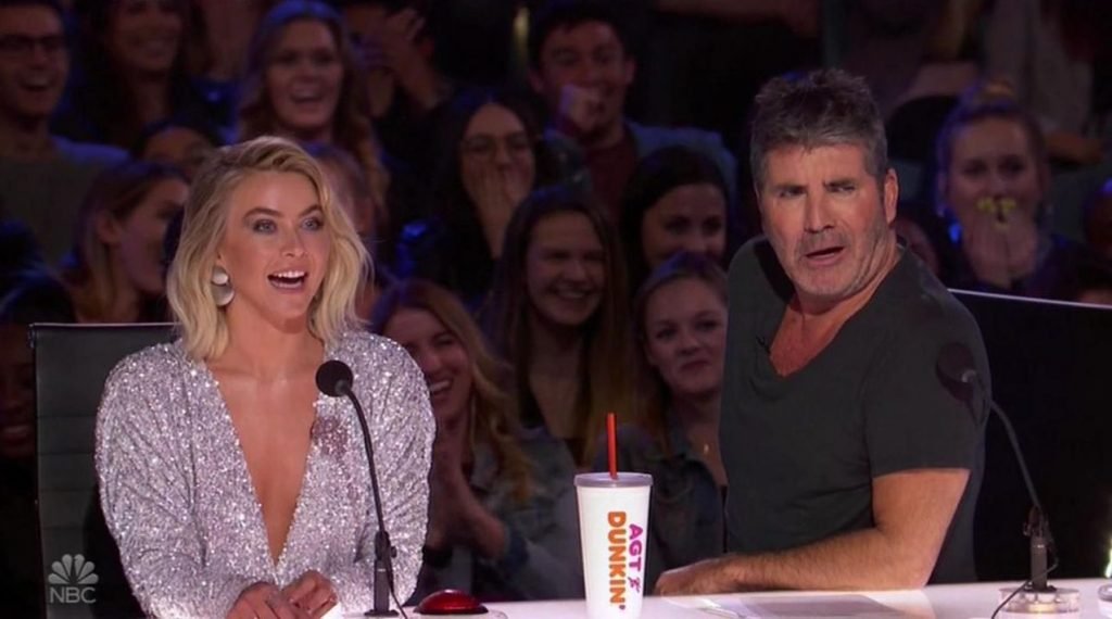 Julianne Hough da lecciones de danza interpretativa entre bastidores después de que descaradamente le da a Simon Cowell los detalles de su habitación de hotel en America’s Got Talent.