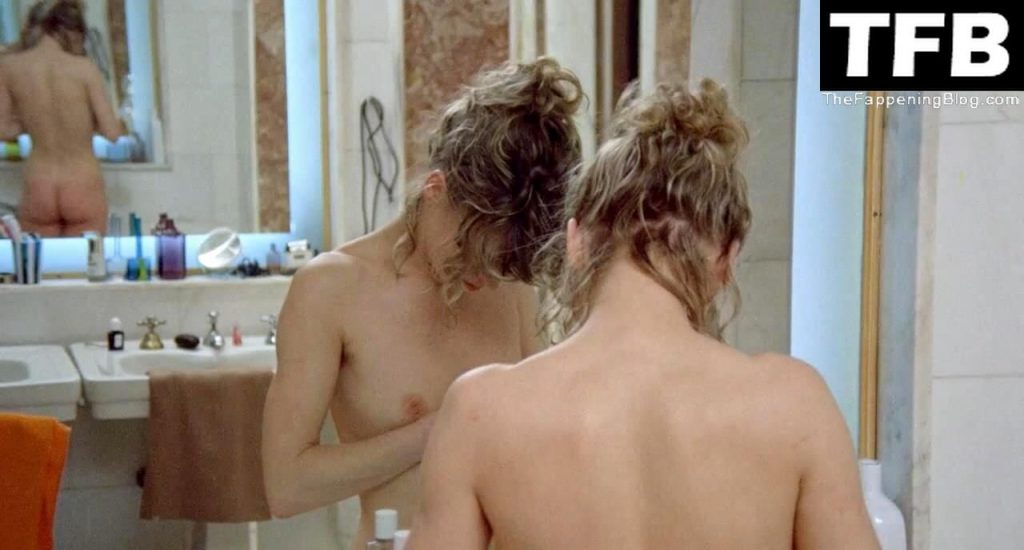 Julie Christie se está quitando la ropa en un baño, mostrando sus bragas mientras se quita la falda. Luego la vemos desnuda en una bañera, mostrando sus pechos y un poco de vello púbico mientras habla con un hombre que está en el baño con ella. Julie luego se levanta y vemos su trasero y más de sus pechos mientras está frente al espejo del baño.