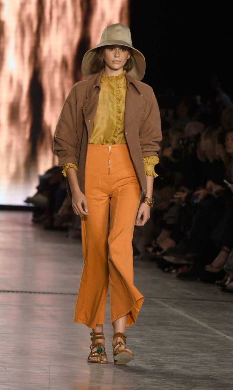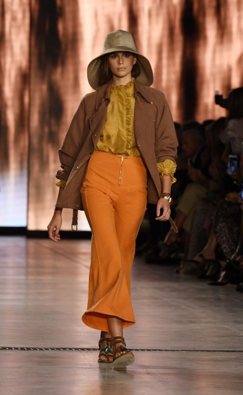 Joven modelo Kaia Gerber camina sin sostén por la pasarela en el desfile de Alberta Ferretti durante la Semana de la Moda de Milán Primavera/Verano 2020 en Milán, Italia, 18/09/2019.