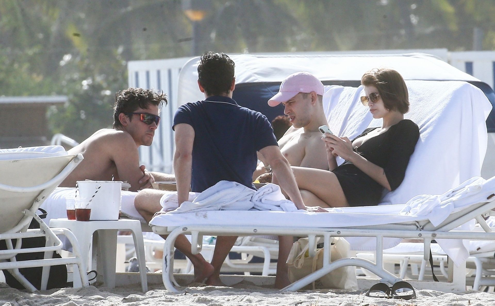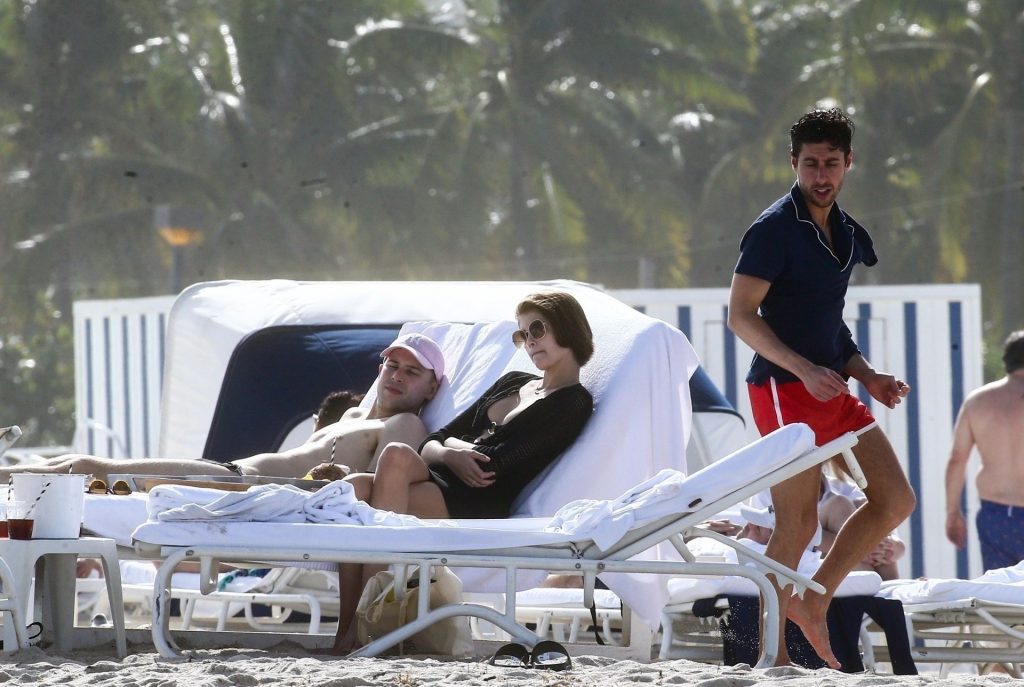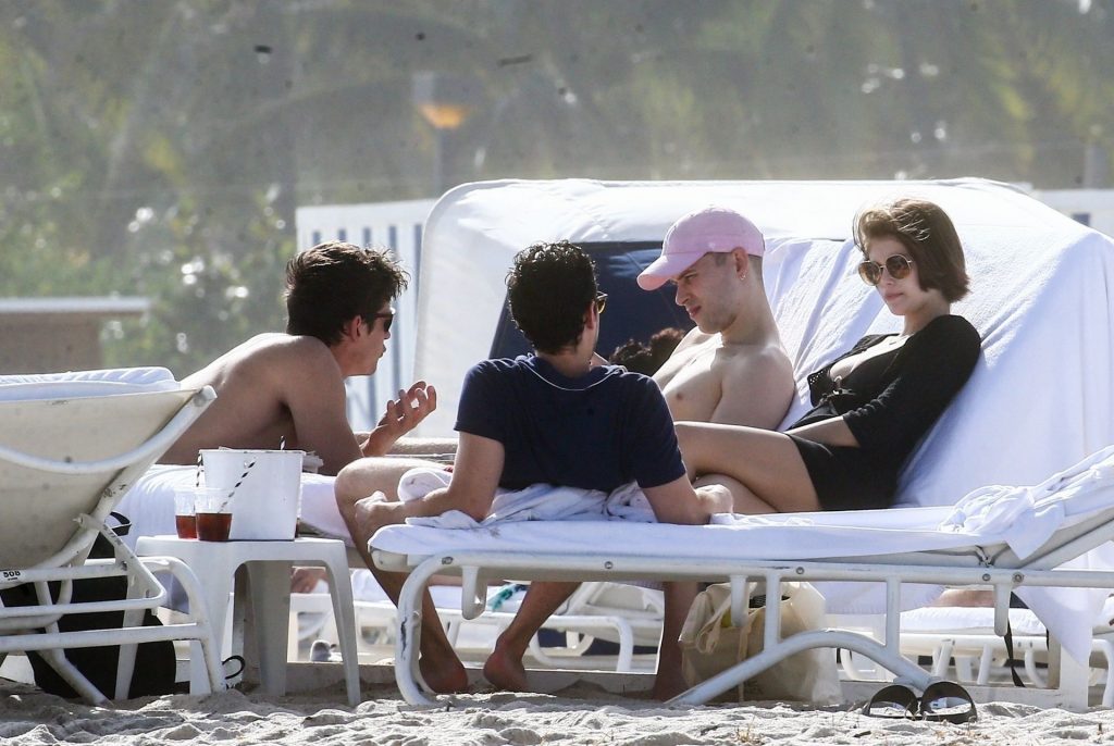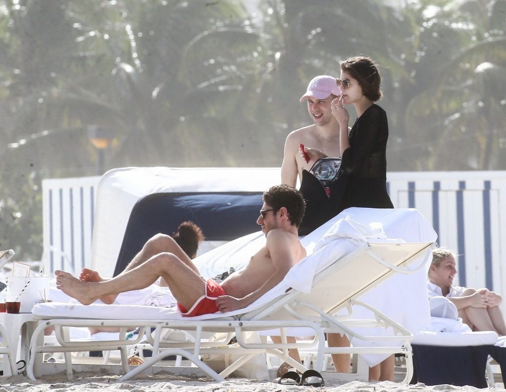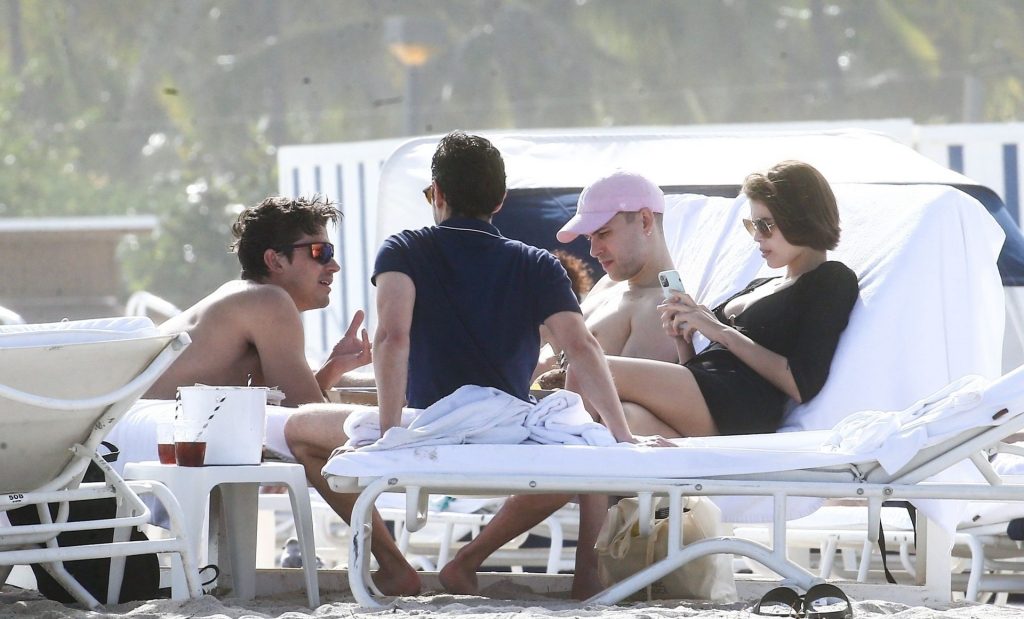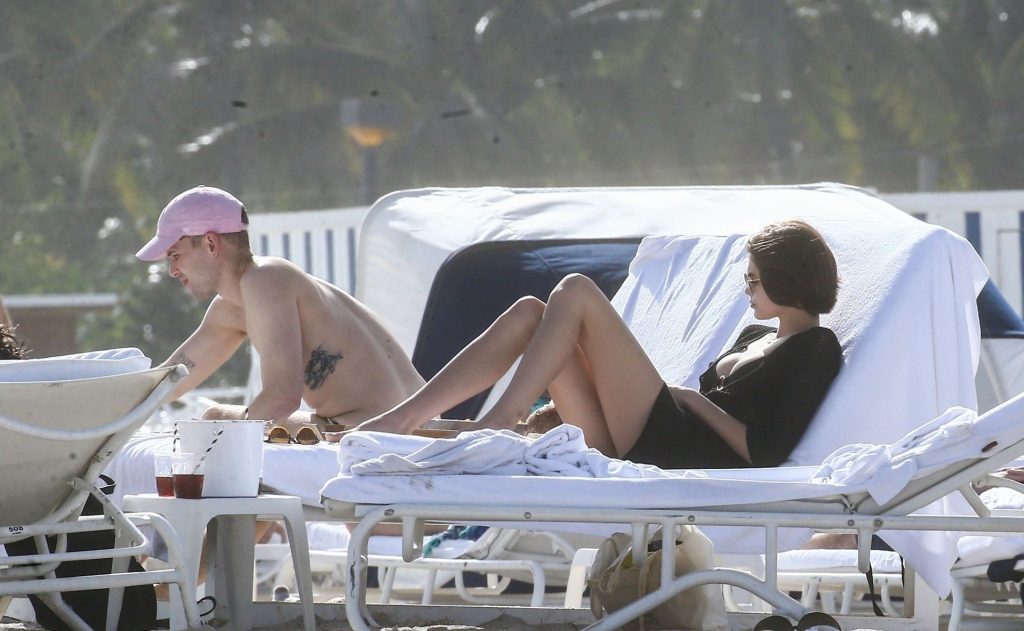 Kaia Gerber muestra sus pequeños pechos, dulce trasero y piernas sexys, mientras disfruta de un día en la playa en Miami Beach, 11/01/2020. Kaia luce genial con el conjunto negro mientras disfruta el día con amigos. A los chicos les gustaría ver un trío desnudo.