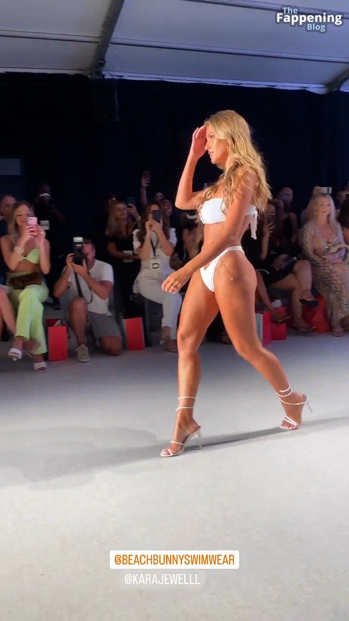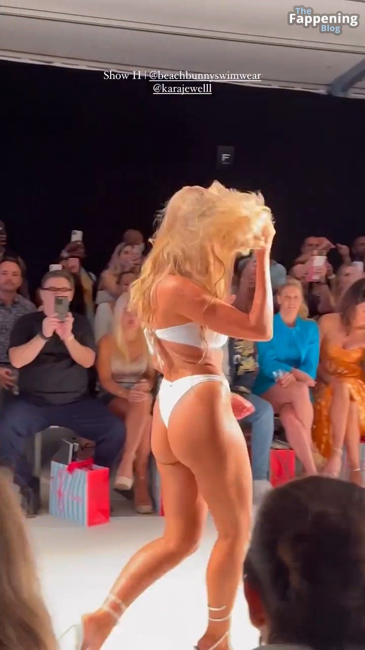 La popular modelo Kara del Toro sorprendió a todos en el Desfile de Moda Beach Bunny en California, caminando por la pasarela con varios bikinis reveladores. Mira su jugoso trasero abajo.
