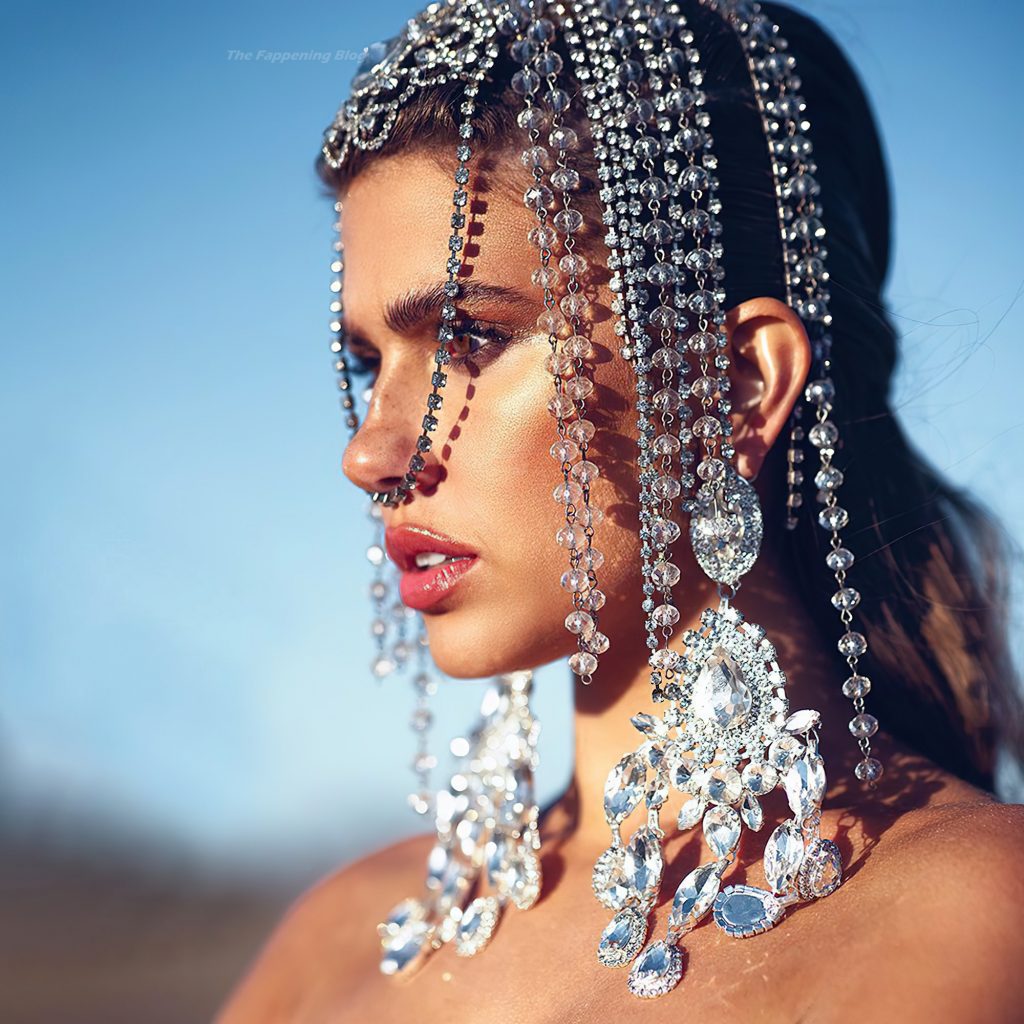 La modelo estadounidense Kara Del Toro revela sus brillantes grandes pechos posando sin sujetador con la blusa transparente para Harper’s Bazaar Vietnam mayo 2021. ¡Estos pechos te hacen pensar positivo!