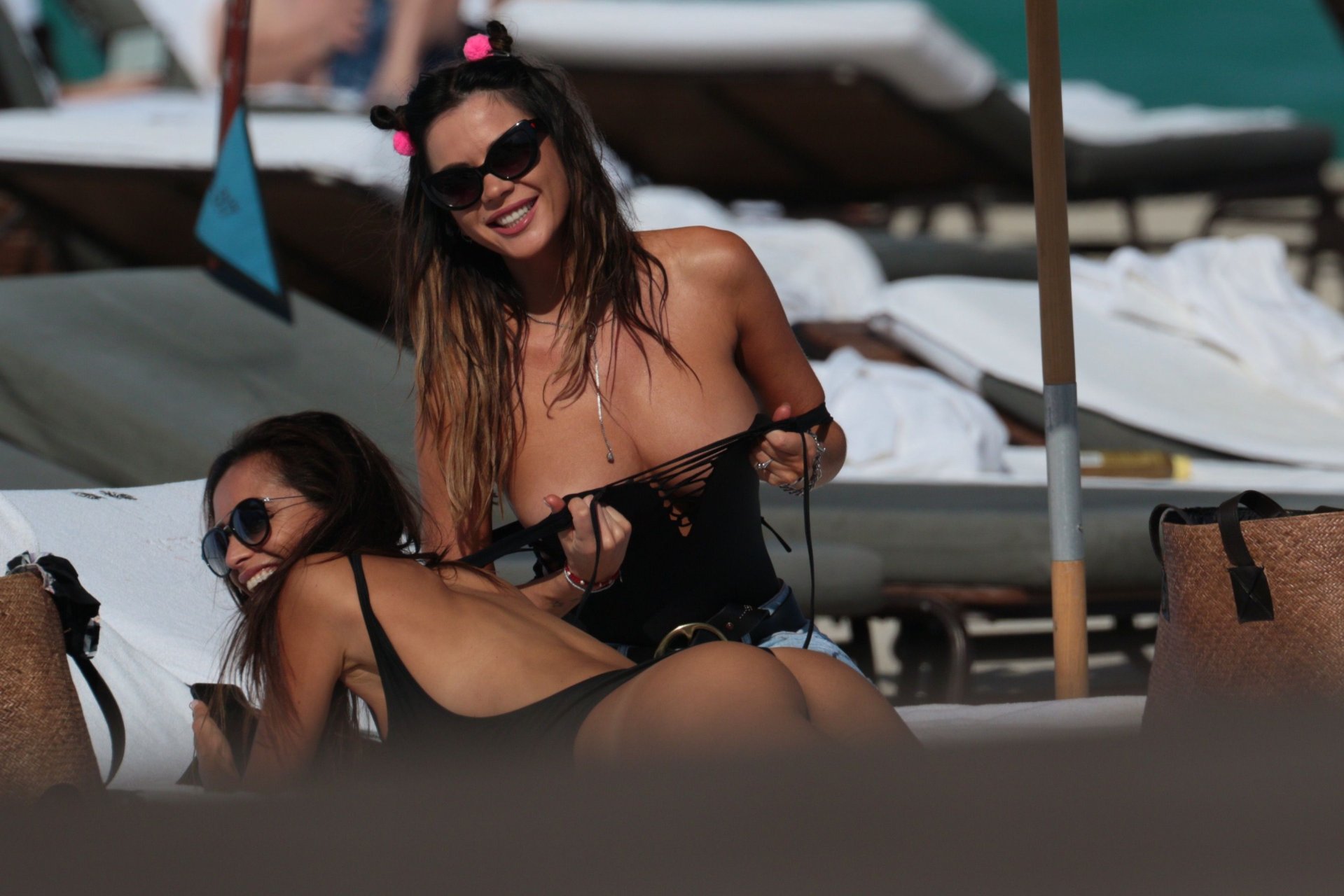 Karina Jelinek muestra sus pechos en la playa de Miami, 27/03/2017. Olga Karina Jelinek Yamaguchi es una modelo, actriz y personalidad de televisión de Villa María. Edad: 36 (nacida el 22 de marzo de 1981).