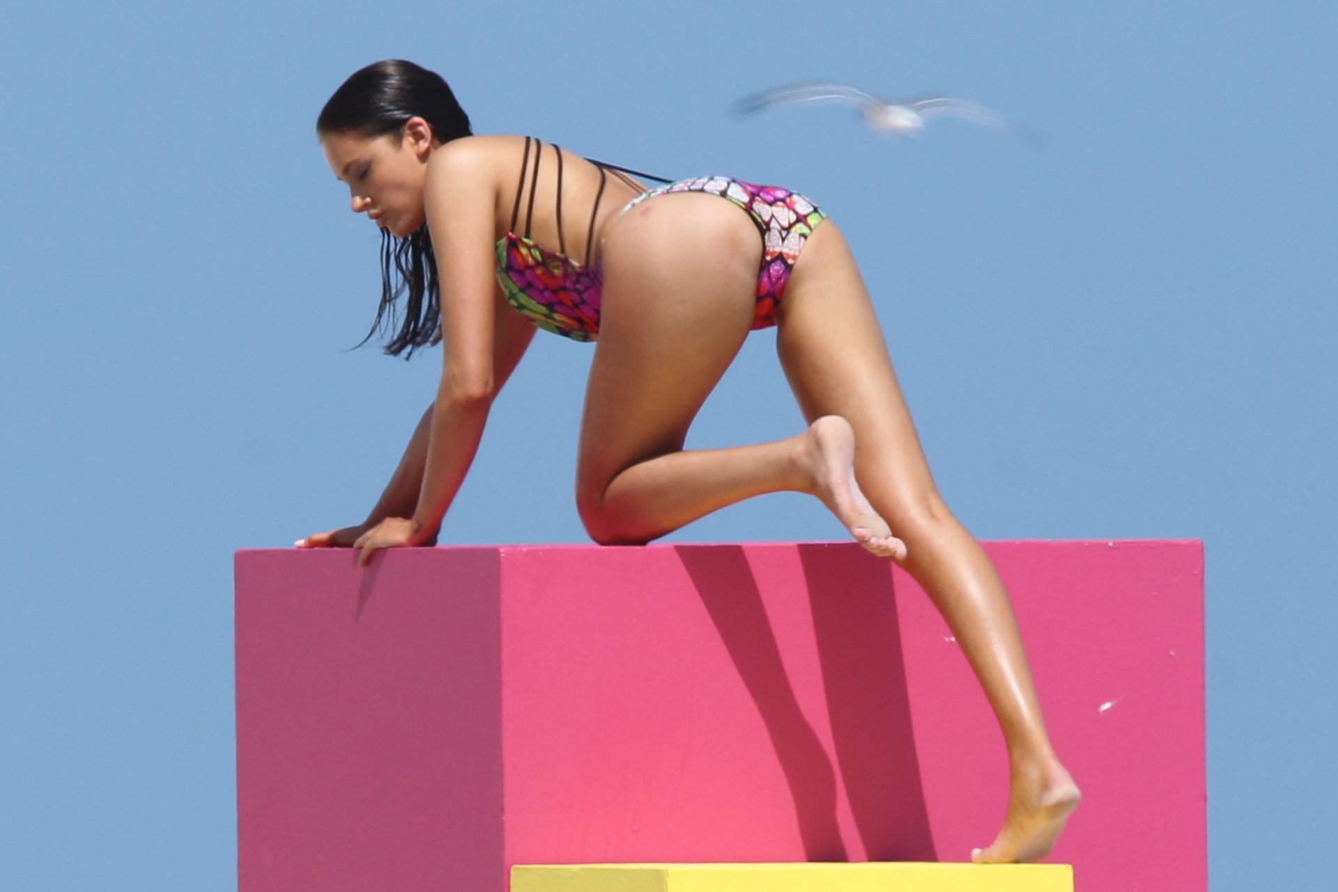 Karina Jelinek tuvo un fallo de vestuario durante una sesión de fotos en Miami Beach, 13/03/2016. Olga Karina Jelinek Yamaguchi es una modelo, actriz y personalidad de televisión argentina. Edad: 34 (22 de marzo de 1981).