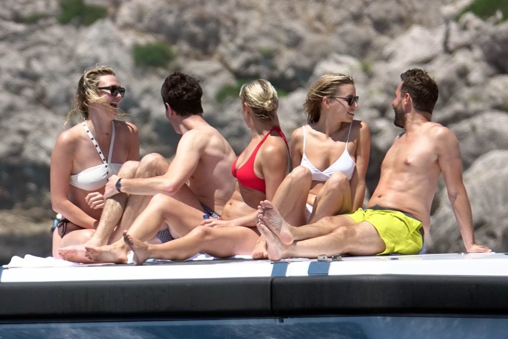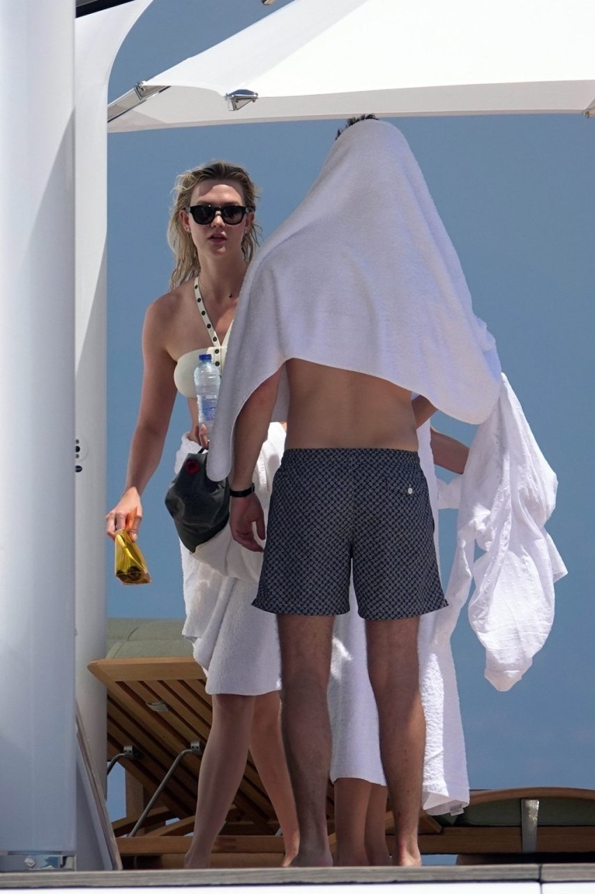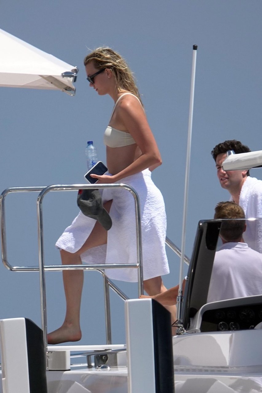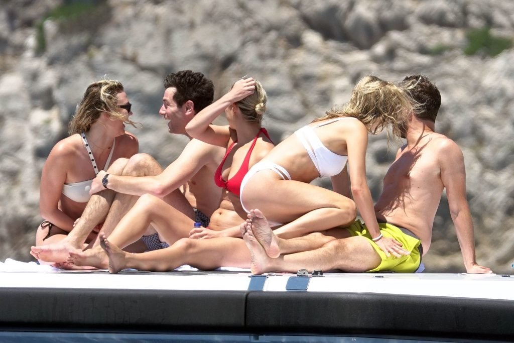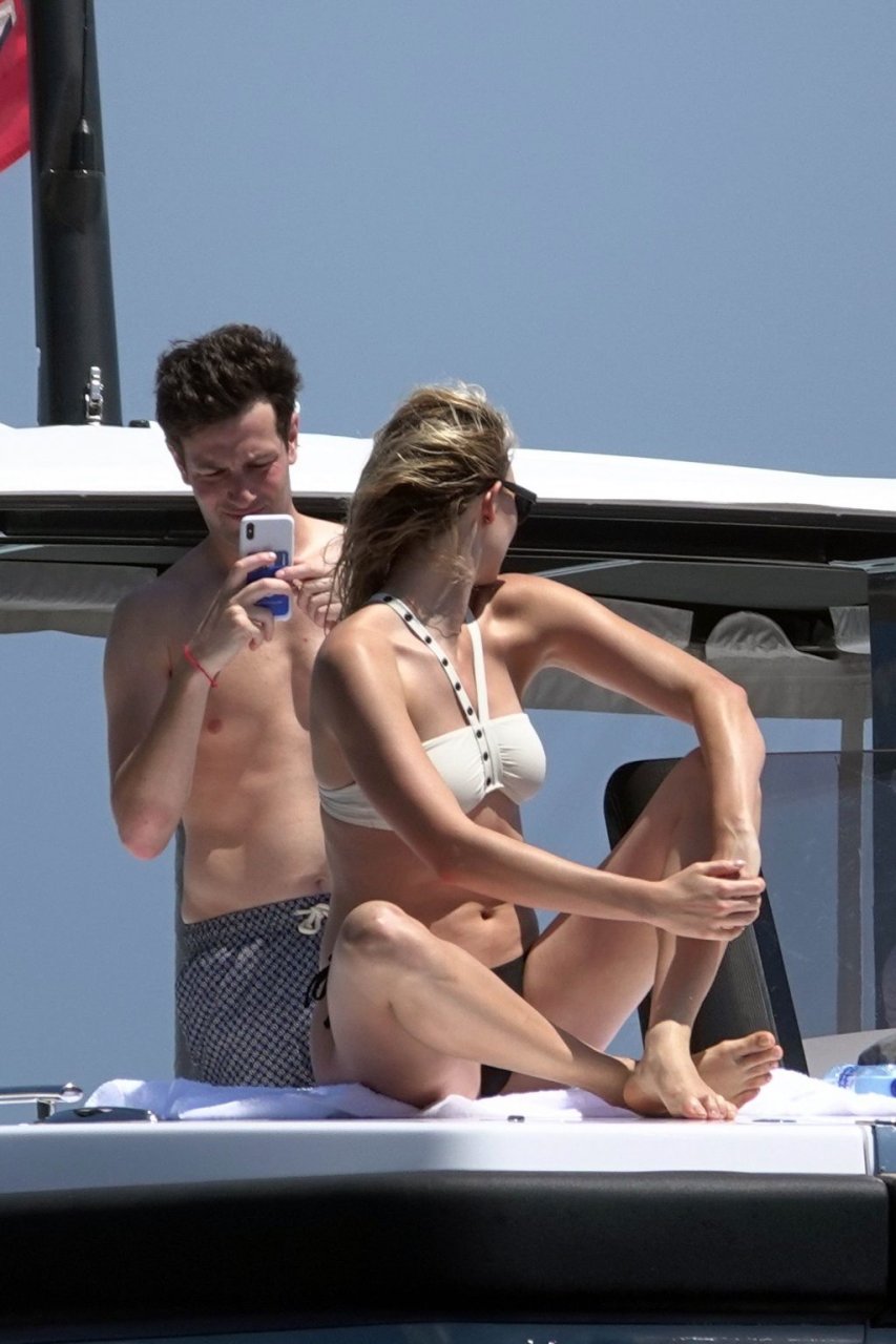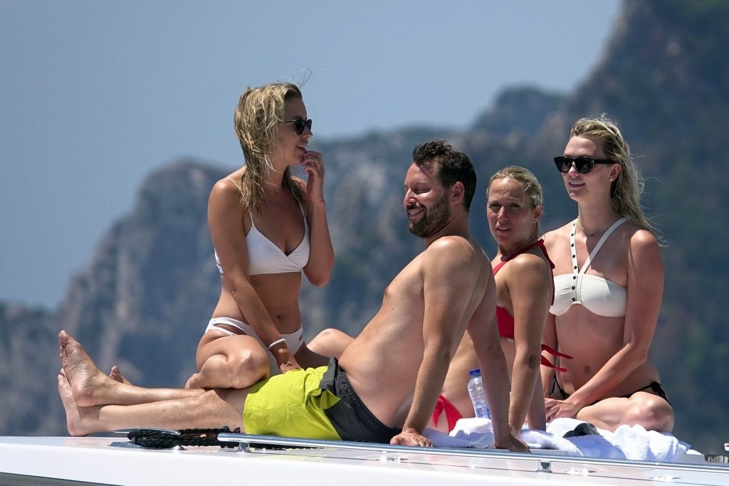 La modelo Karlie Kloss (25) y su novio Joshua Kushner fueron vistos disfrutando de un día en el mar con amigos mientras estaban de vacaciones en Capri, Italia, 20/07/2018.