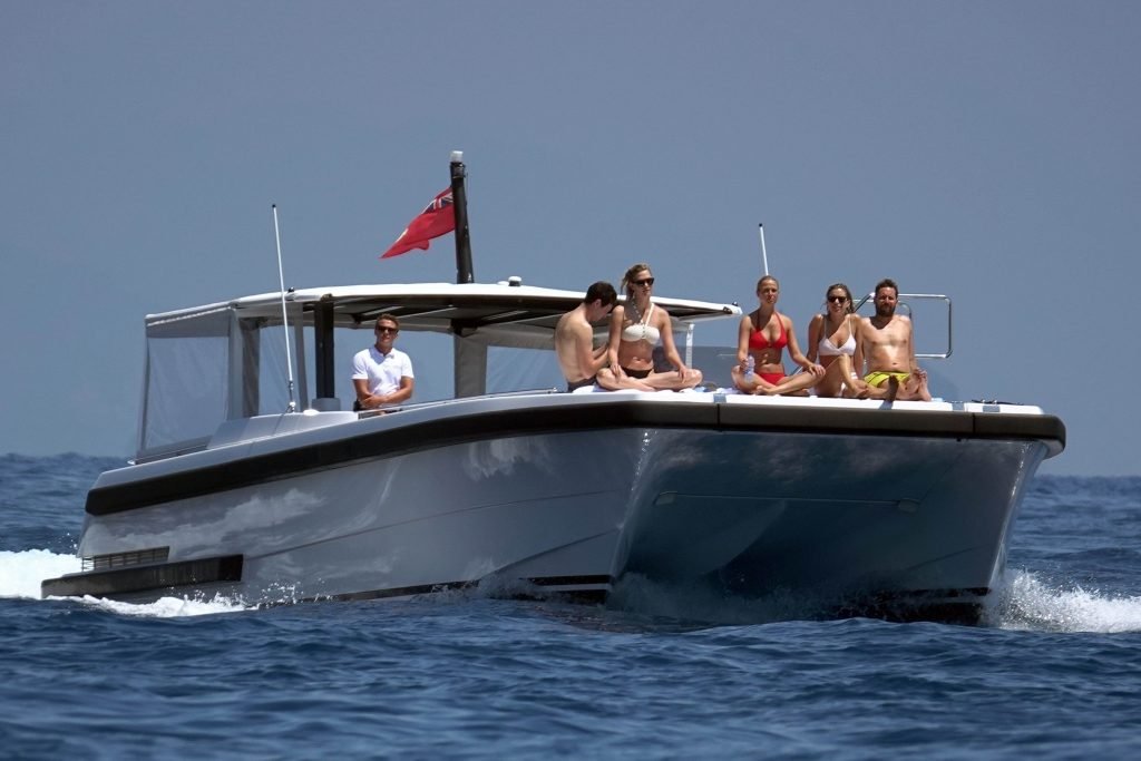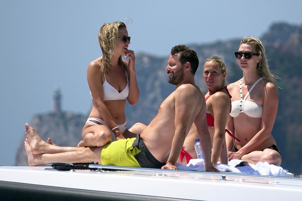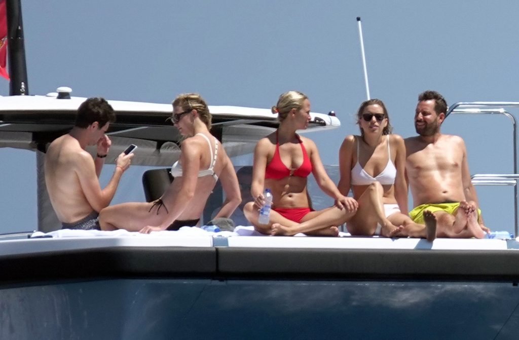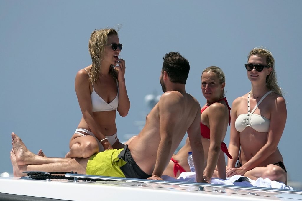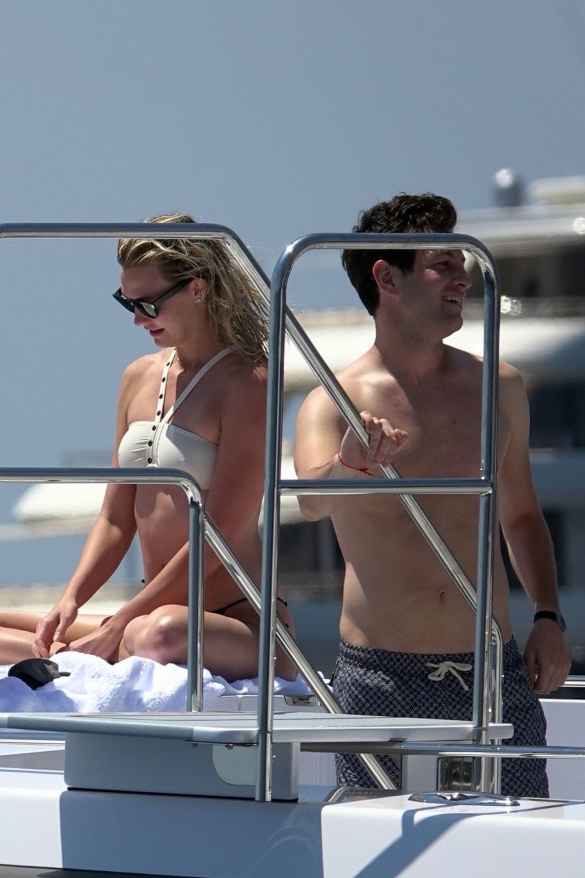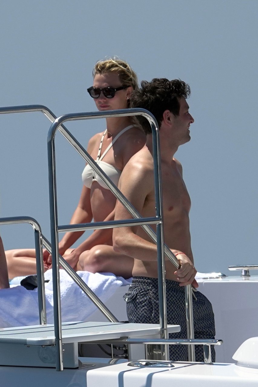 La modelo Karlie Kloss (25) y su novio Joshua Kushner fueron vistos disfrutando de un día en el mar con amigos mientras estaban de vacaciones en Capri, Italia, 20/07/2018.
