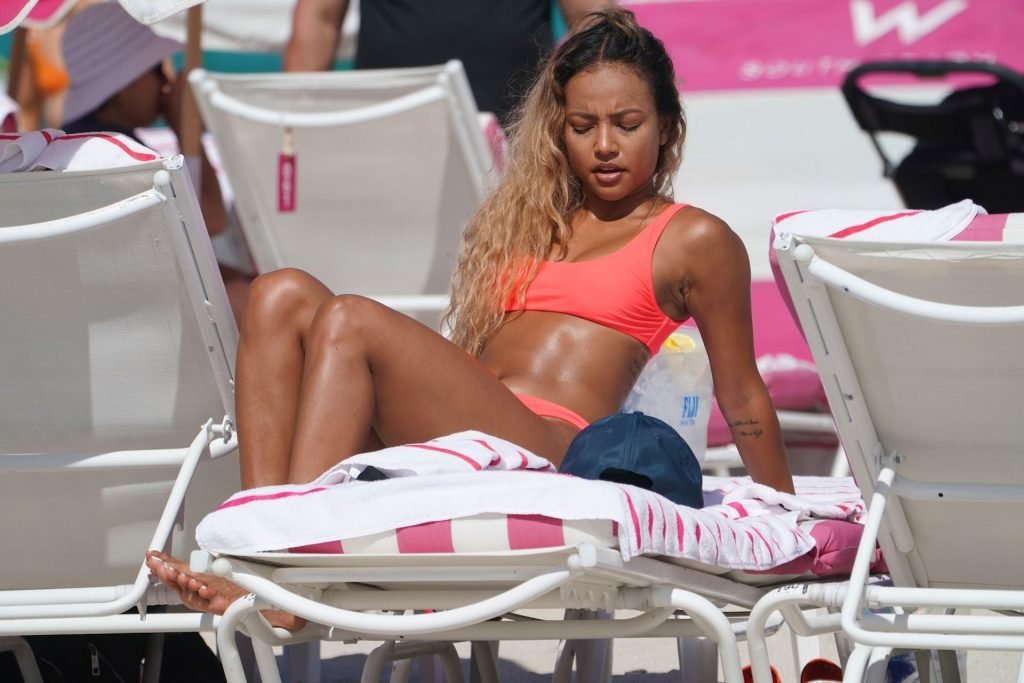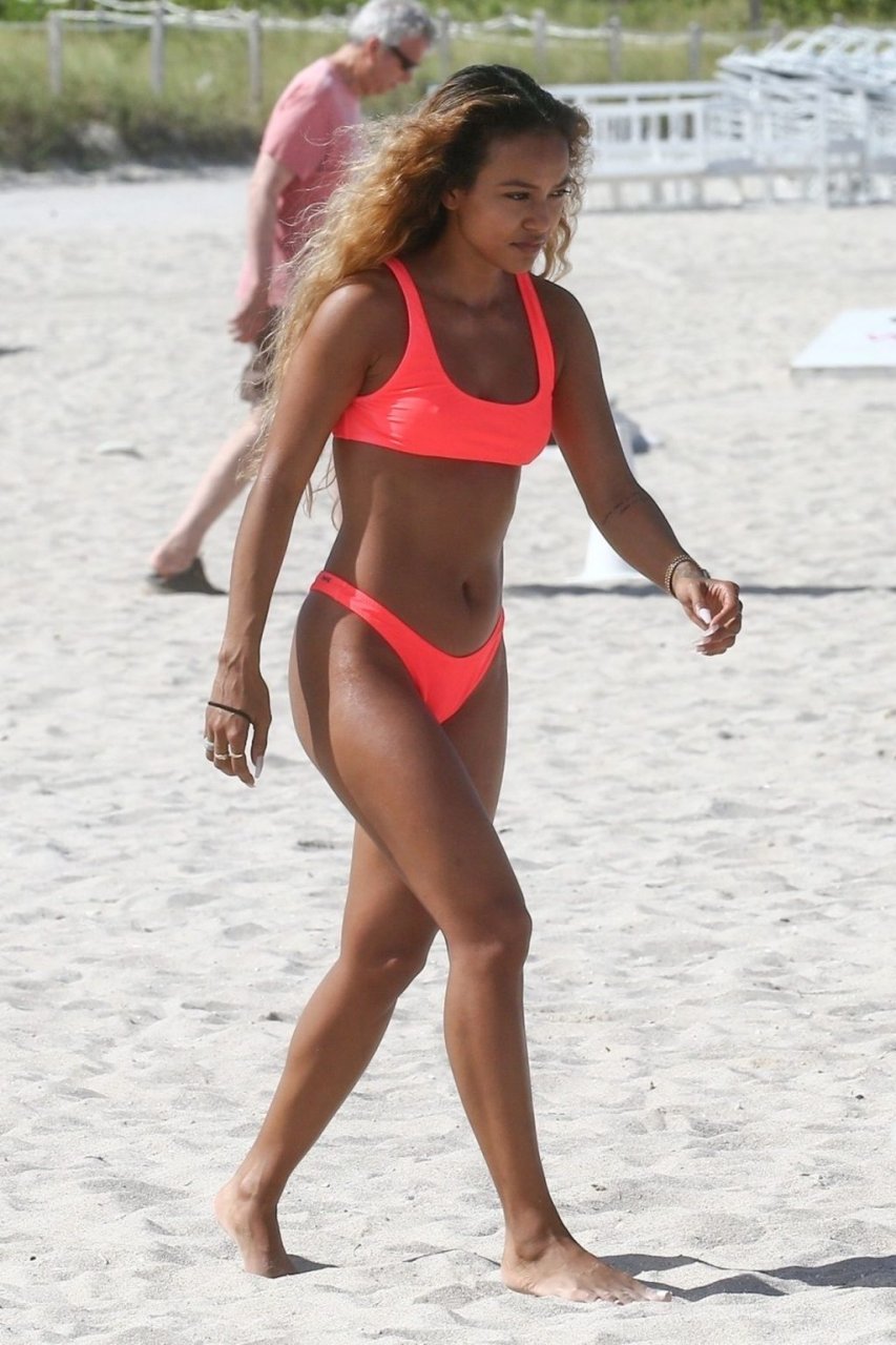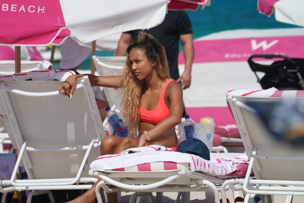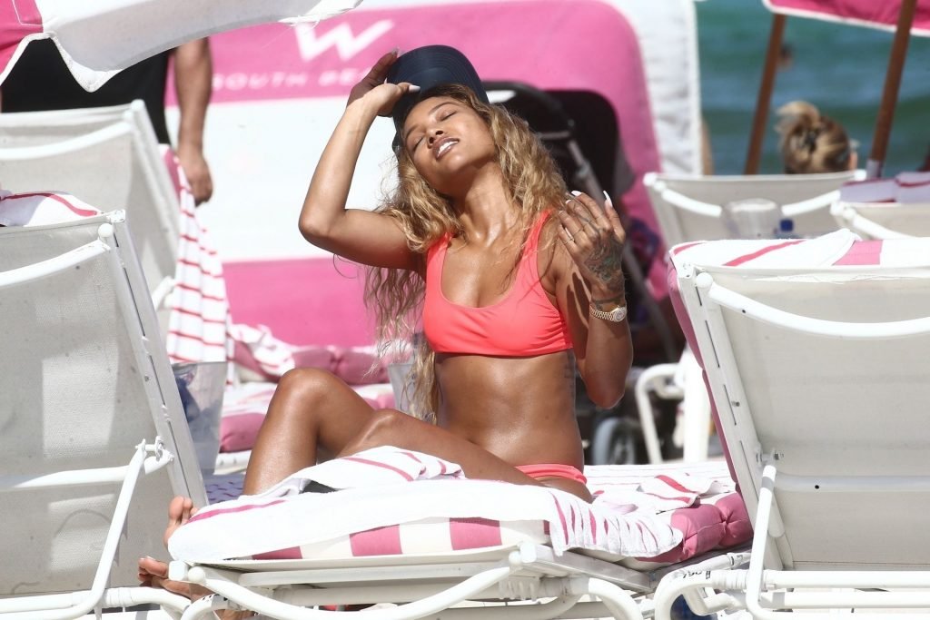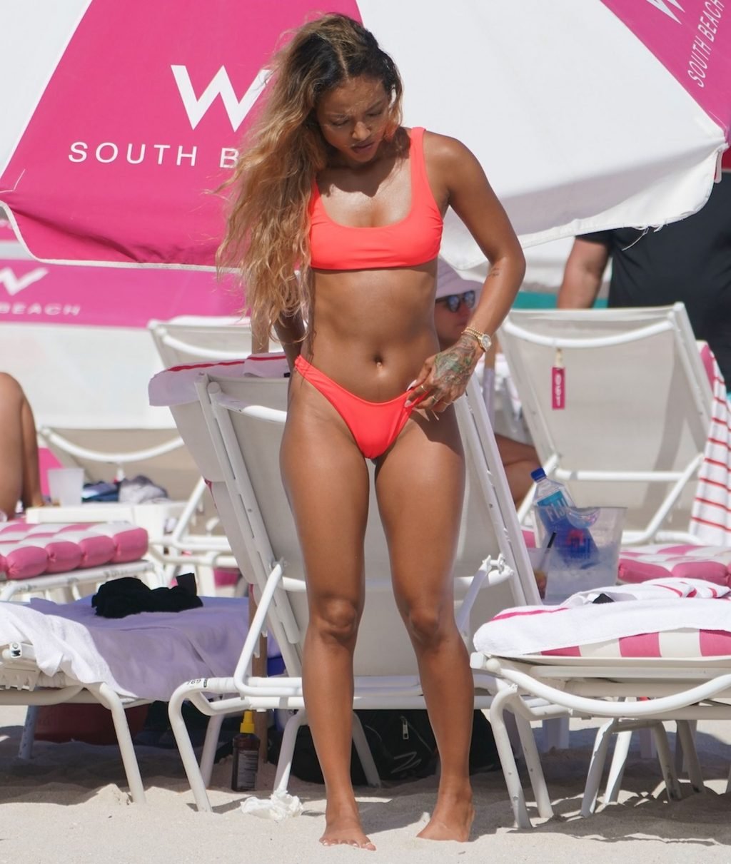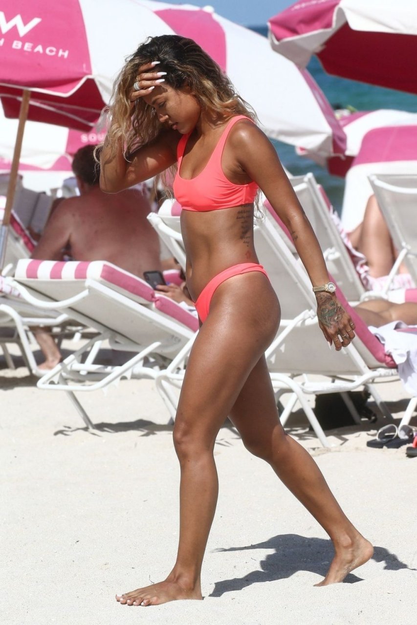 La última vez que se la vio fue disfrutando de la fiesta en el festival de música Coachella entre las estrellas. Y Karrueche Tran volvió a subir la temperatura cuando fue vista paseando por la playa de arena blanca con sus amigas. La sexy celebridad, de 30 años, lució su figura delgada y esbelta con un bikini ligero que llamó la atención de los espectadores gracias a su color fucsia.