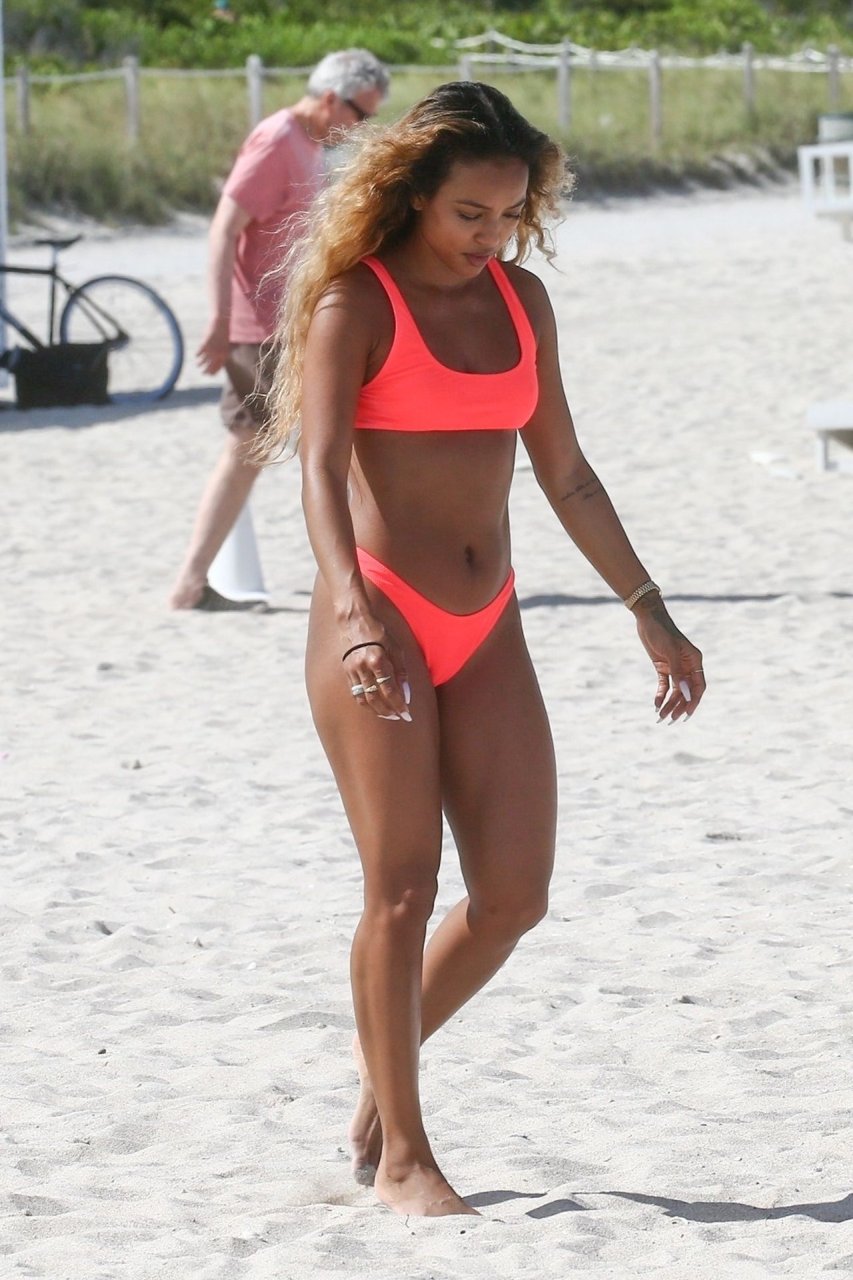 La última vez que se la vio fue disfrutando de la fiesta en el festival de música Coachella entre las estrellas. Y Karrueche Tran volvió a subir la temperatura cuando fue vista paseando por la playa de arena blanca con sus amigas. La sexy celebridad, de 30 años, lució su figura delgada y esbelta con un bikini ligero que llamó la atención de los espectadores gracias a su color fucsia.