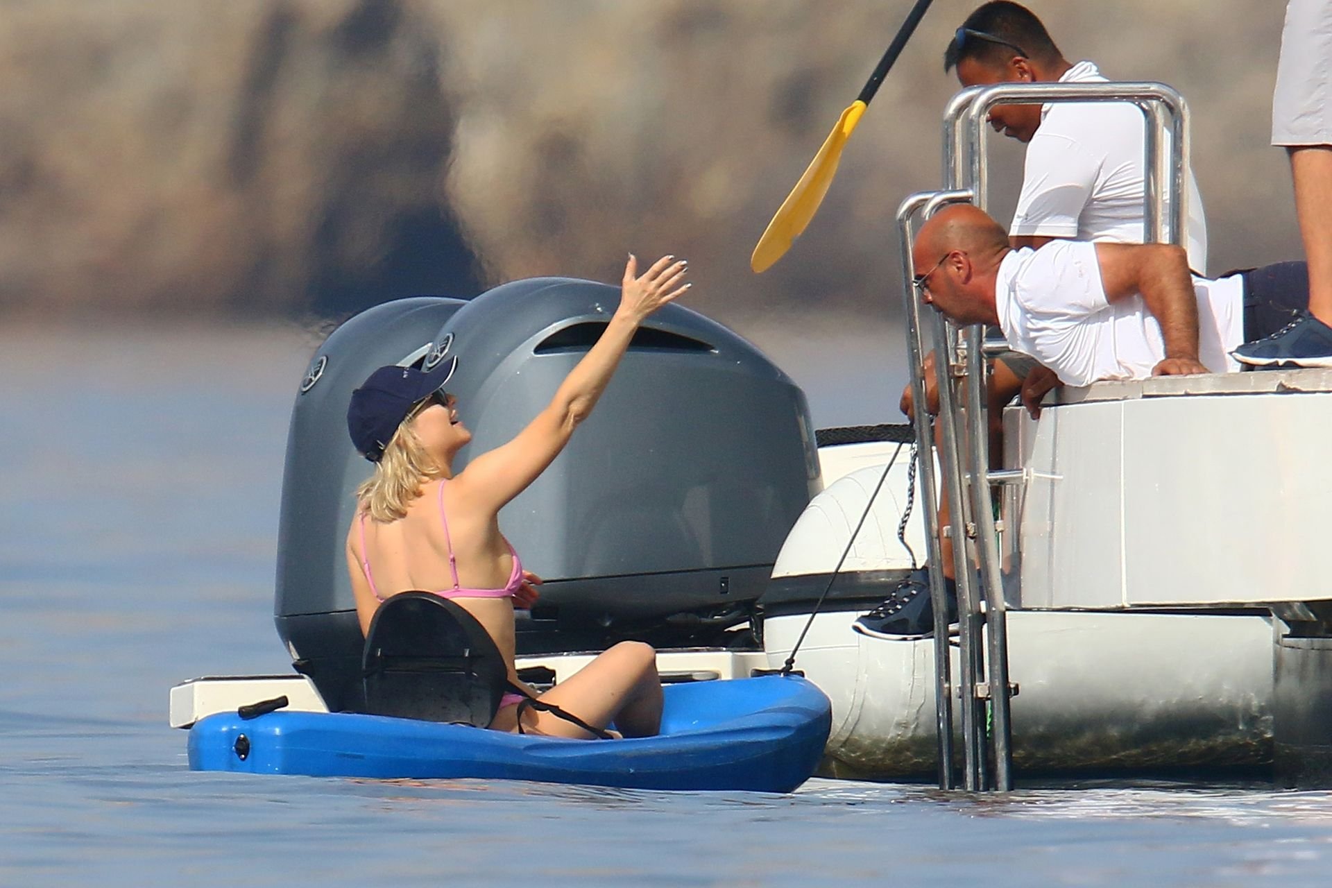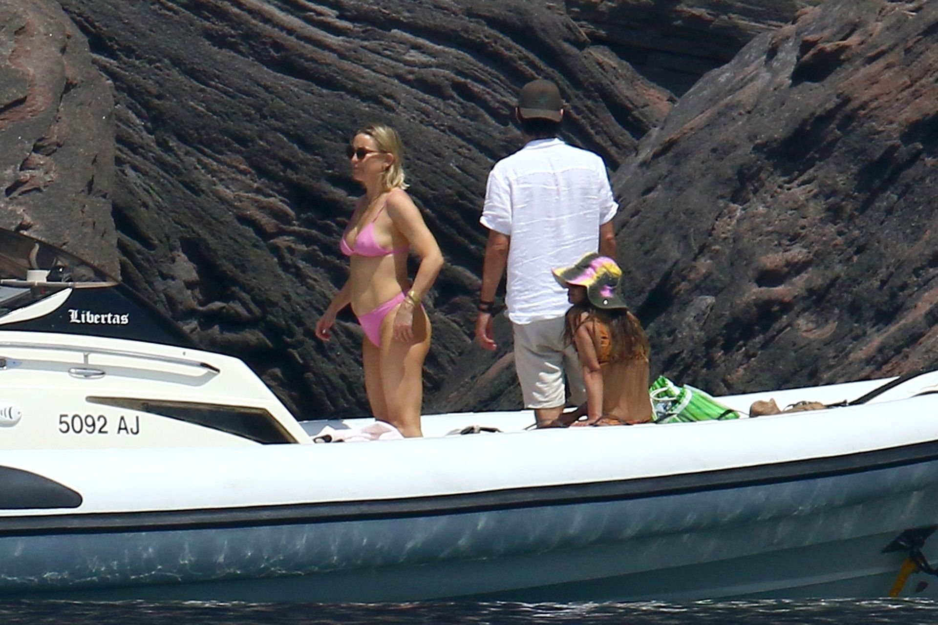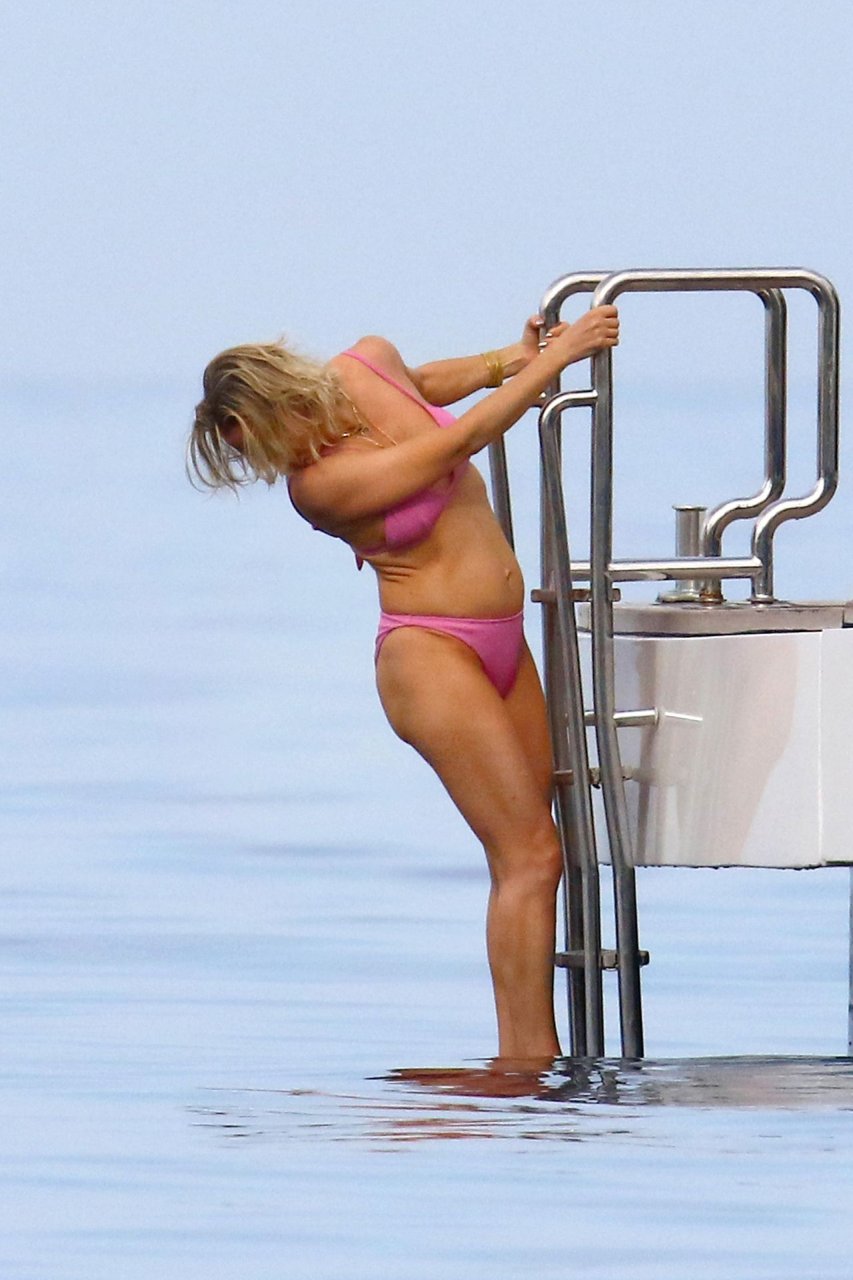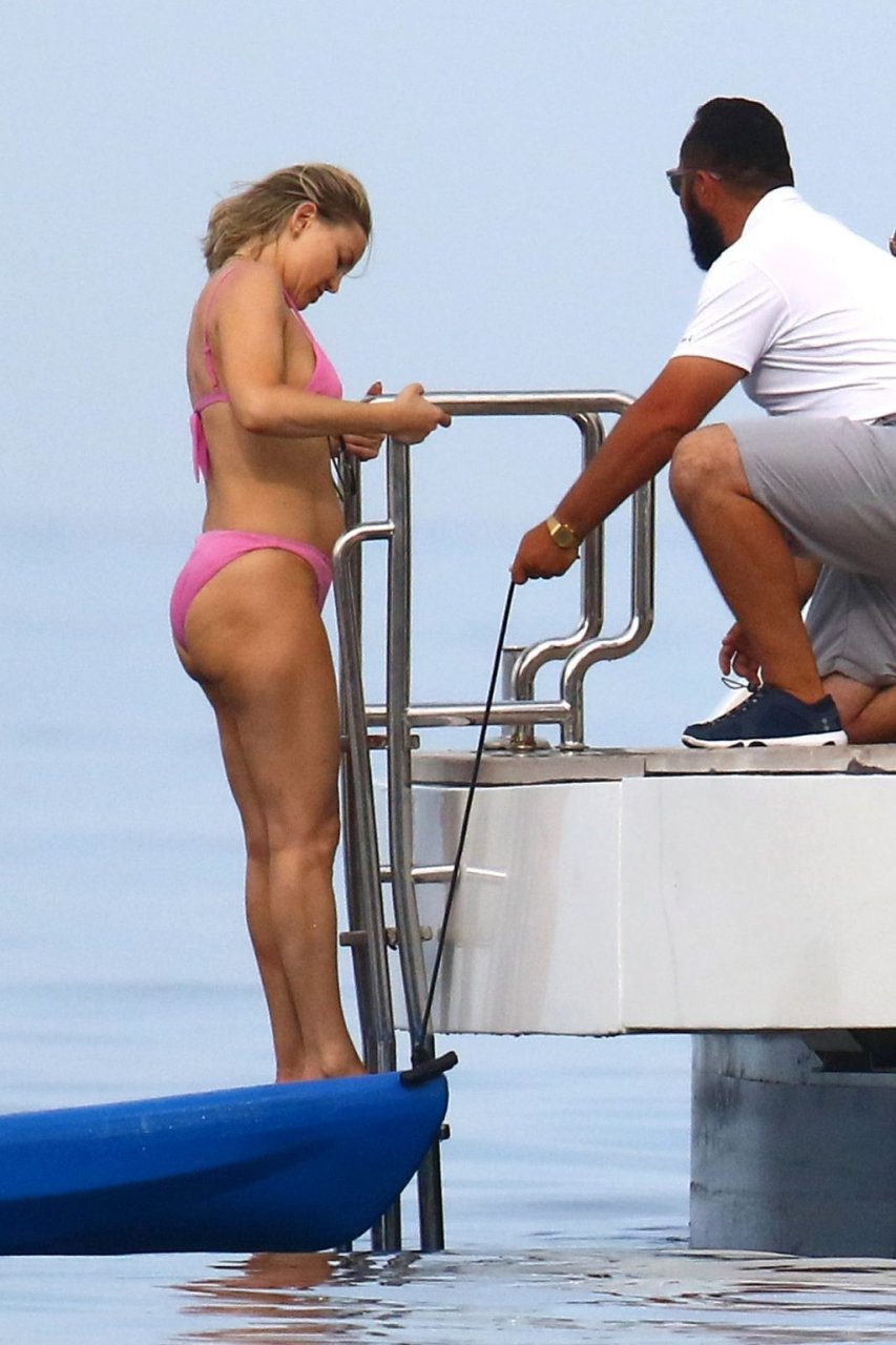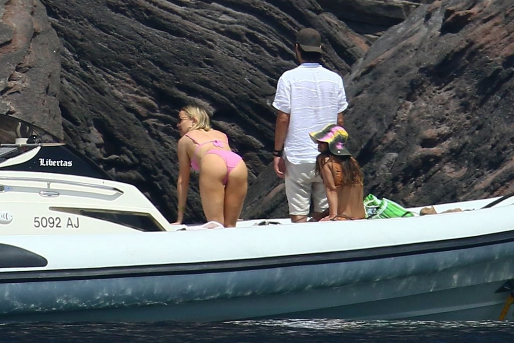 Kate Hudson y su novio Danny Fujikawa disfrutan de sus vacaciones de verano a bordo de un mega yate en Italia con Goldie Hawn, Kurt Russel y algunos amigos, 11/06/2019. Kate muestra un impresionante cuerpo post embarazo con un sexy bikini rosa.