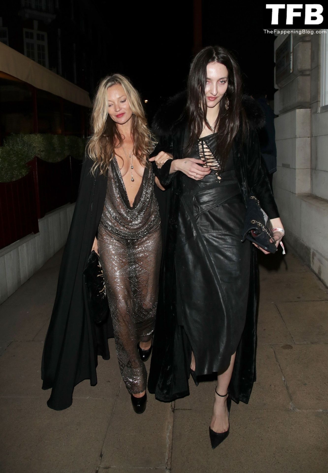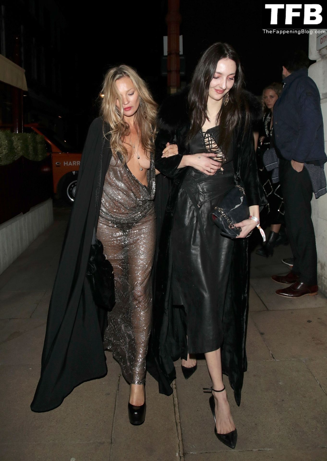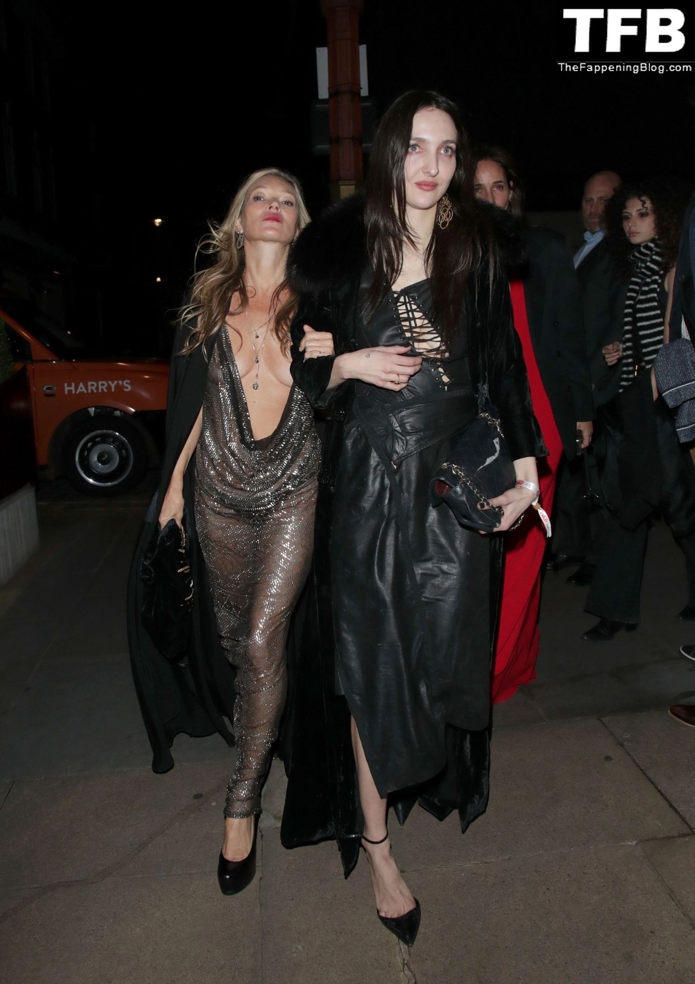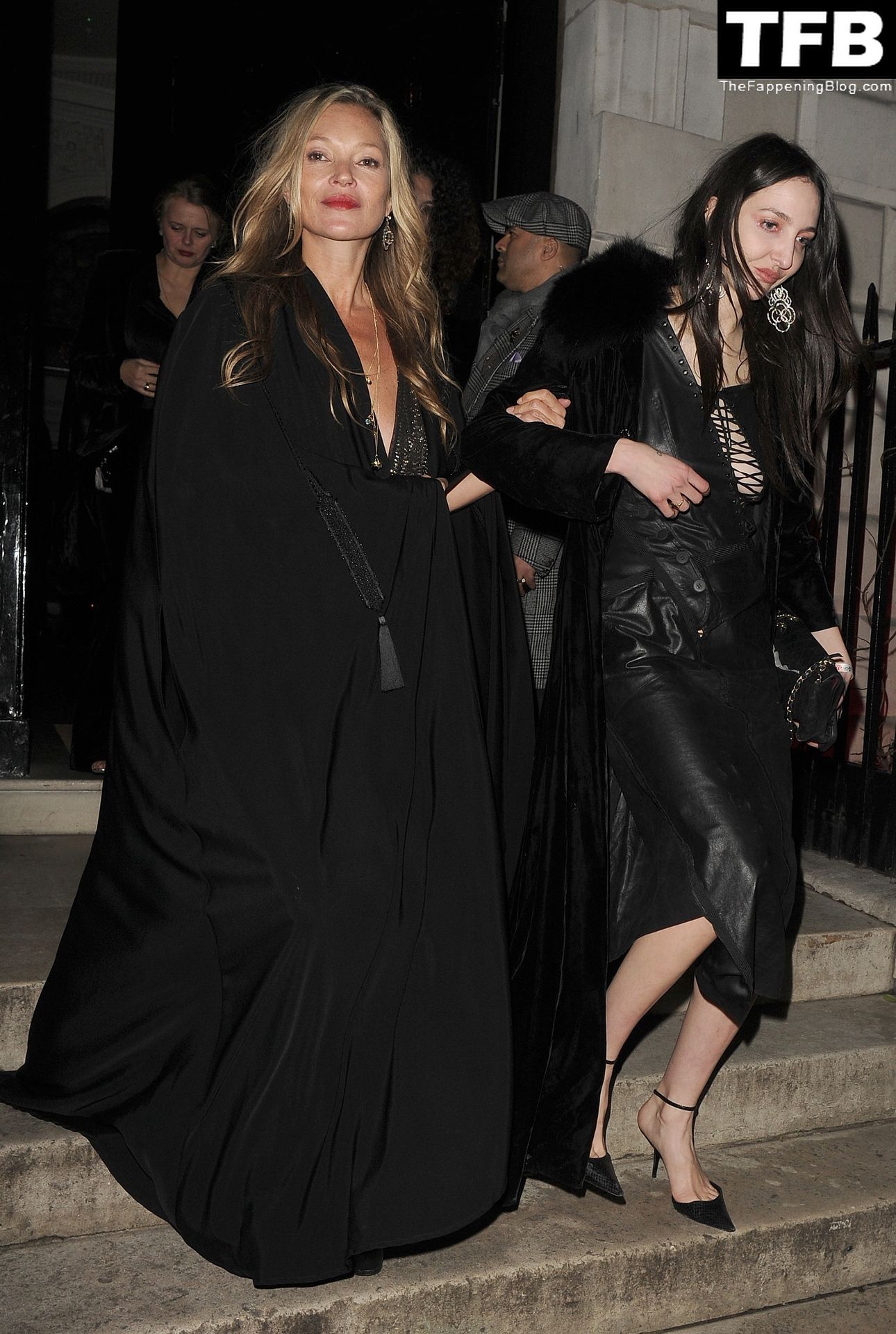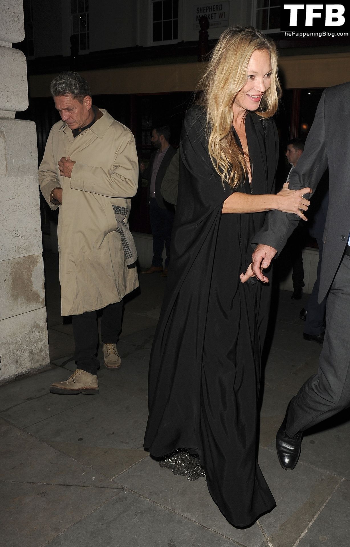 Kate Moss se ve aquí en el Annabels & Loulou’s Members Club en Mayfair, Londres hasta las 3am y fue vista con un fallo de vestuario.
