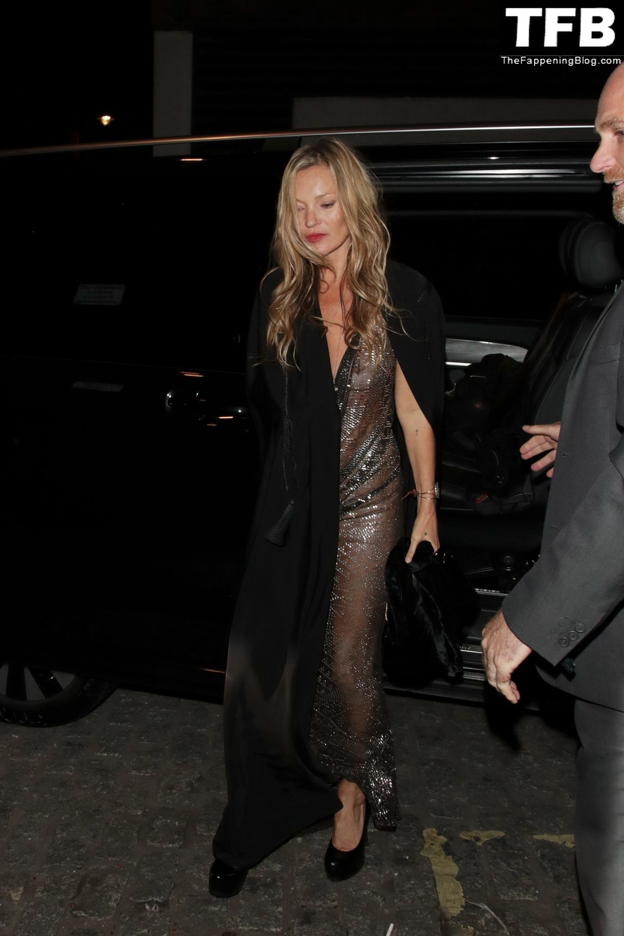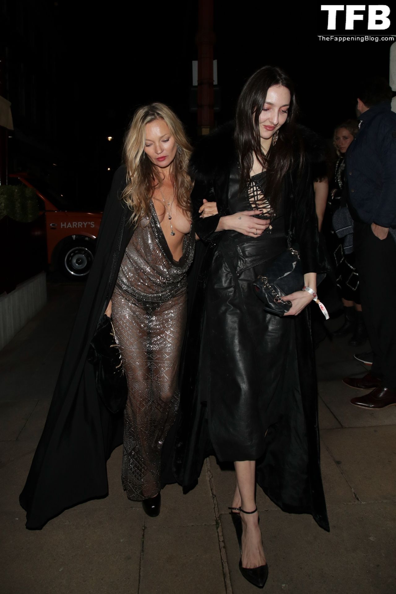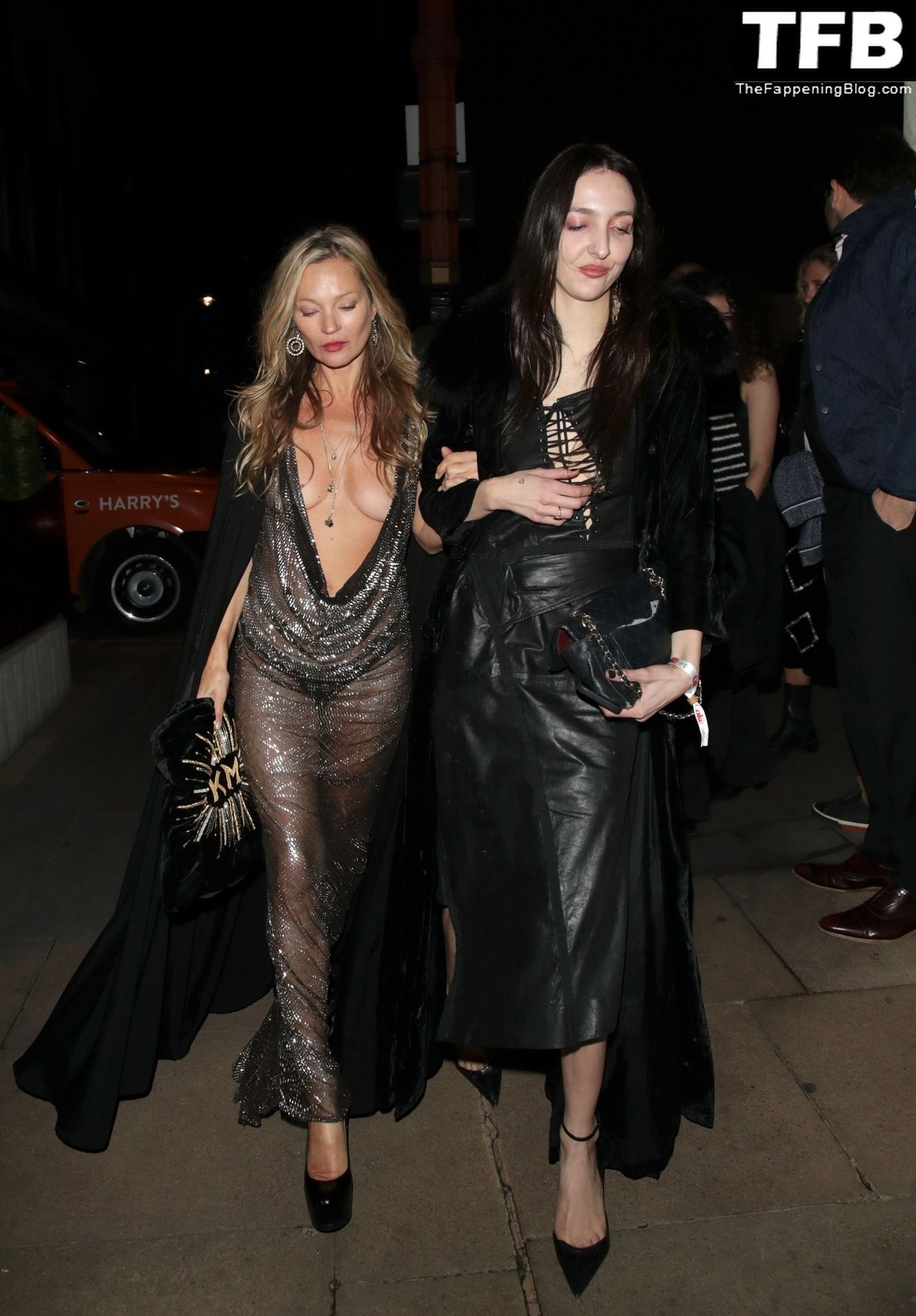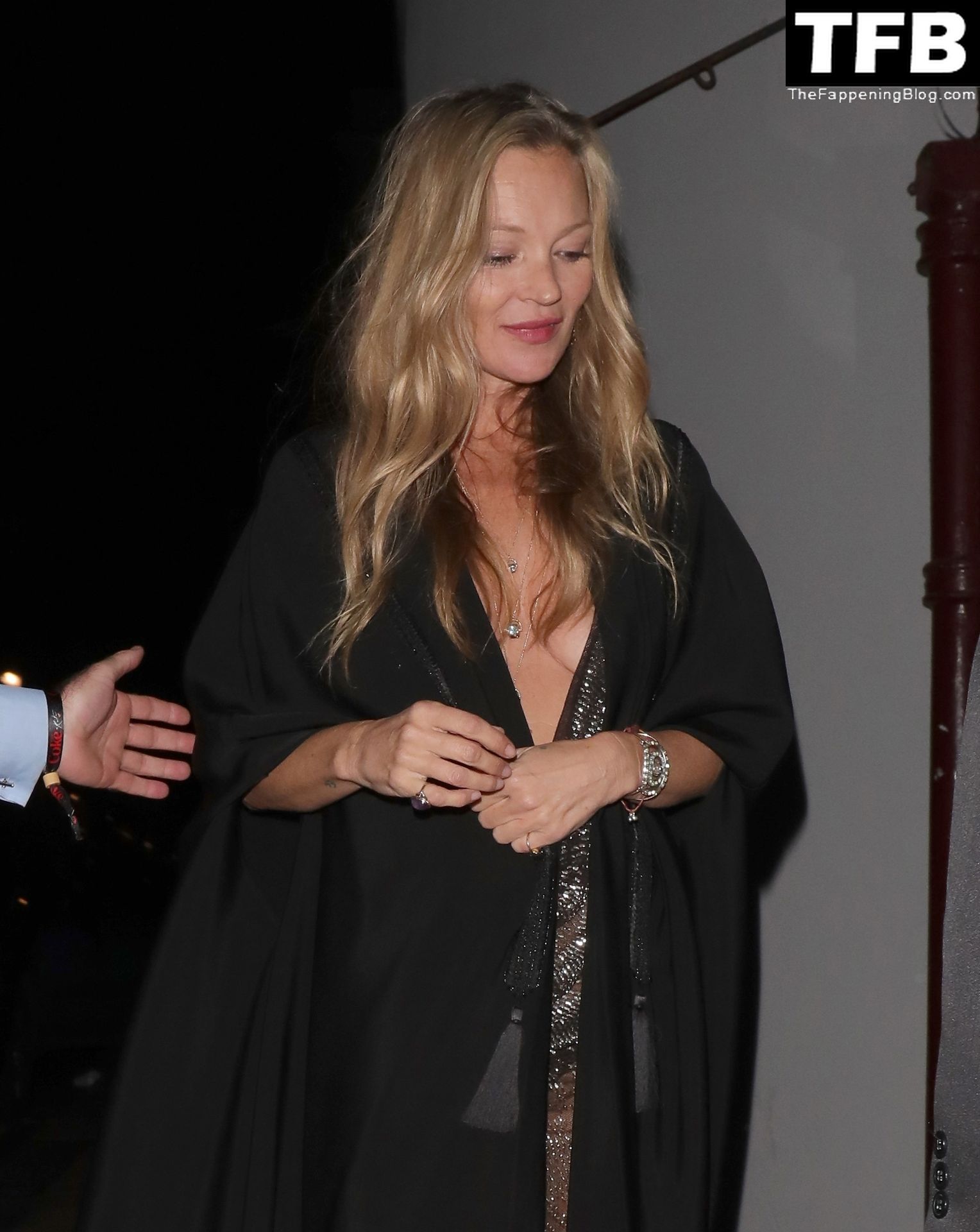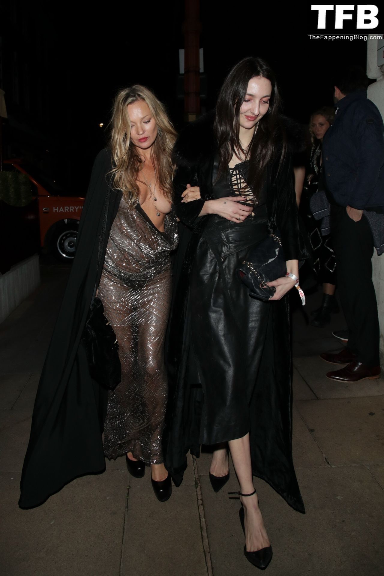 Kate Moss se ve aquí en el Annabels & Loulou’s Members Club en Mayfair, Londres hasta las 3am y fue vista con un fallo de vestuario.