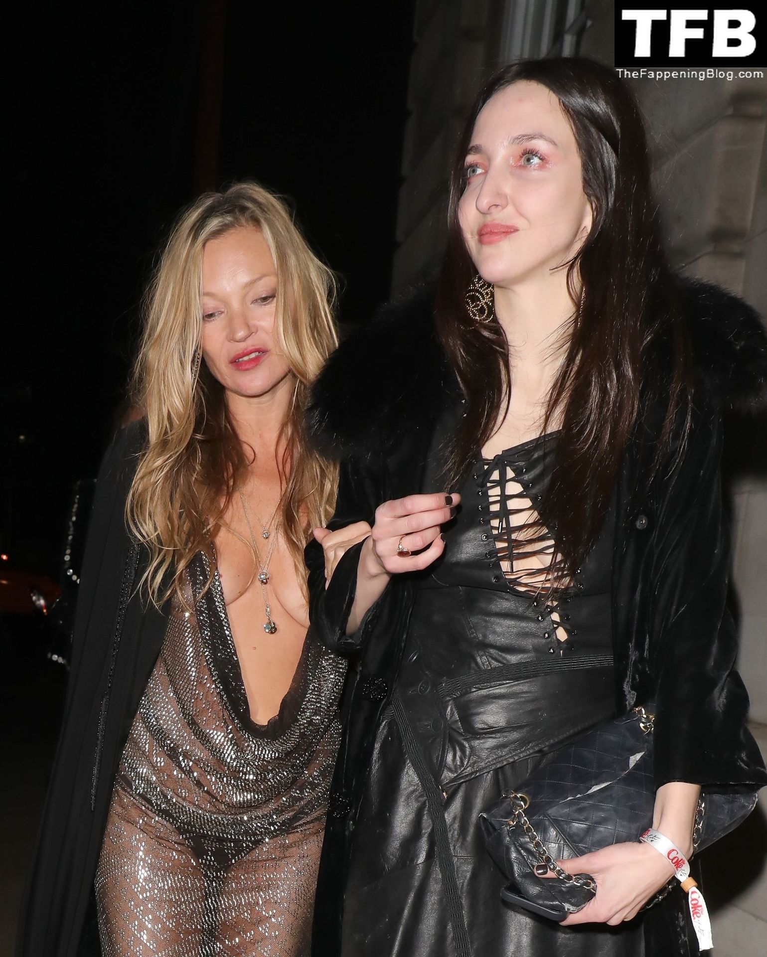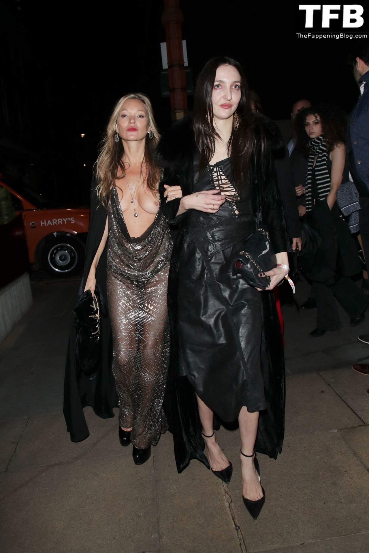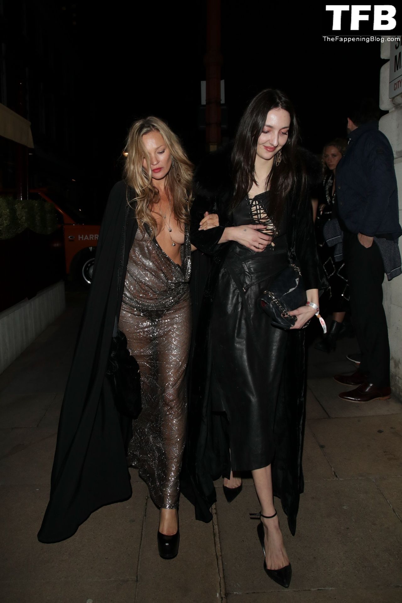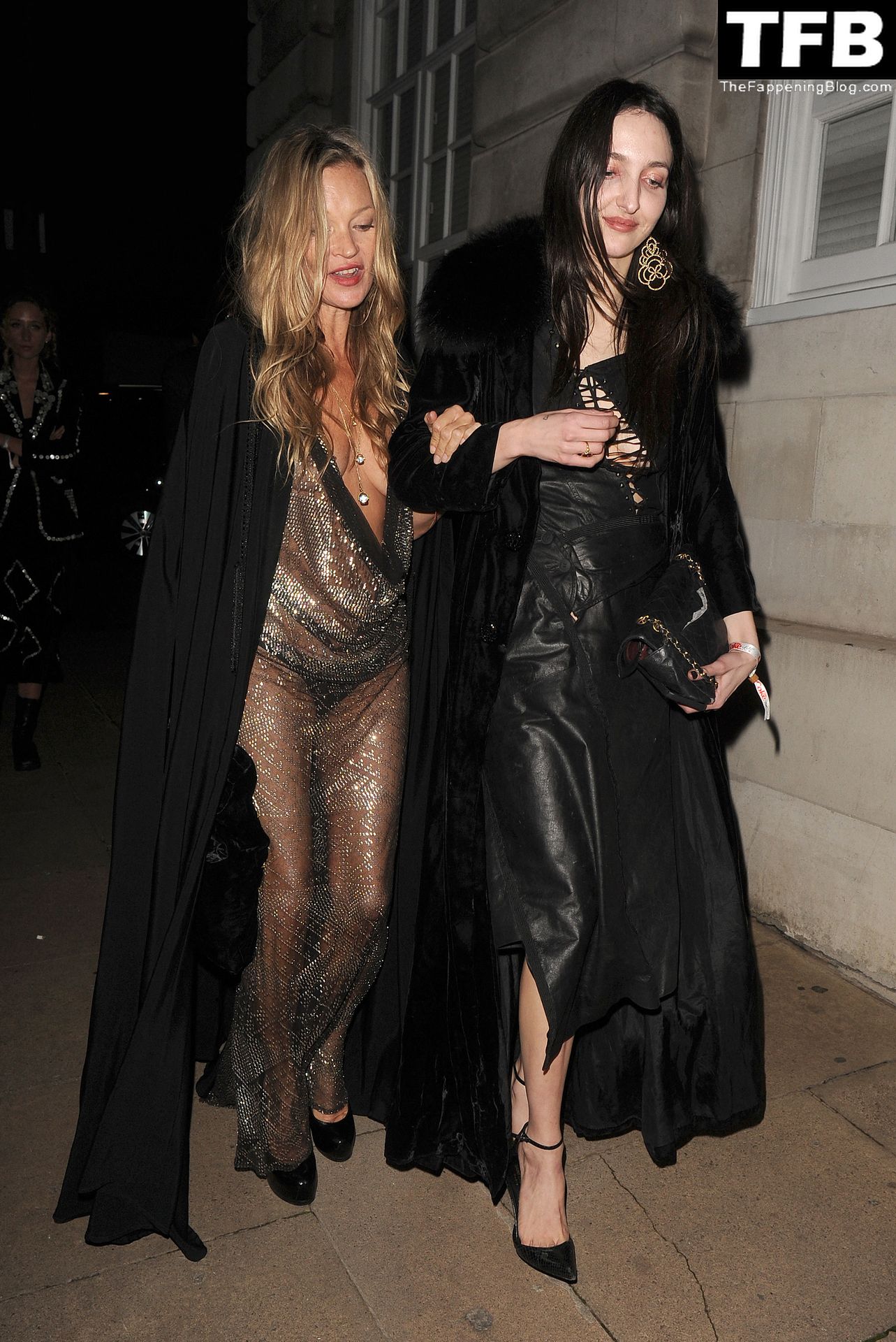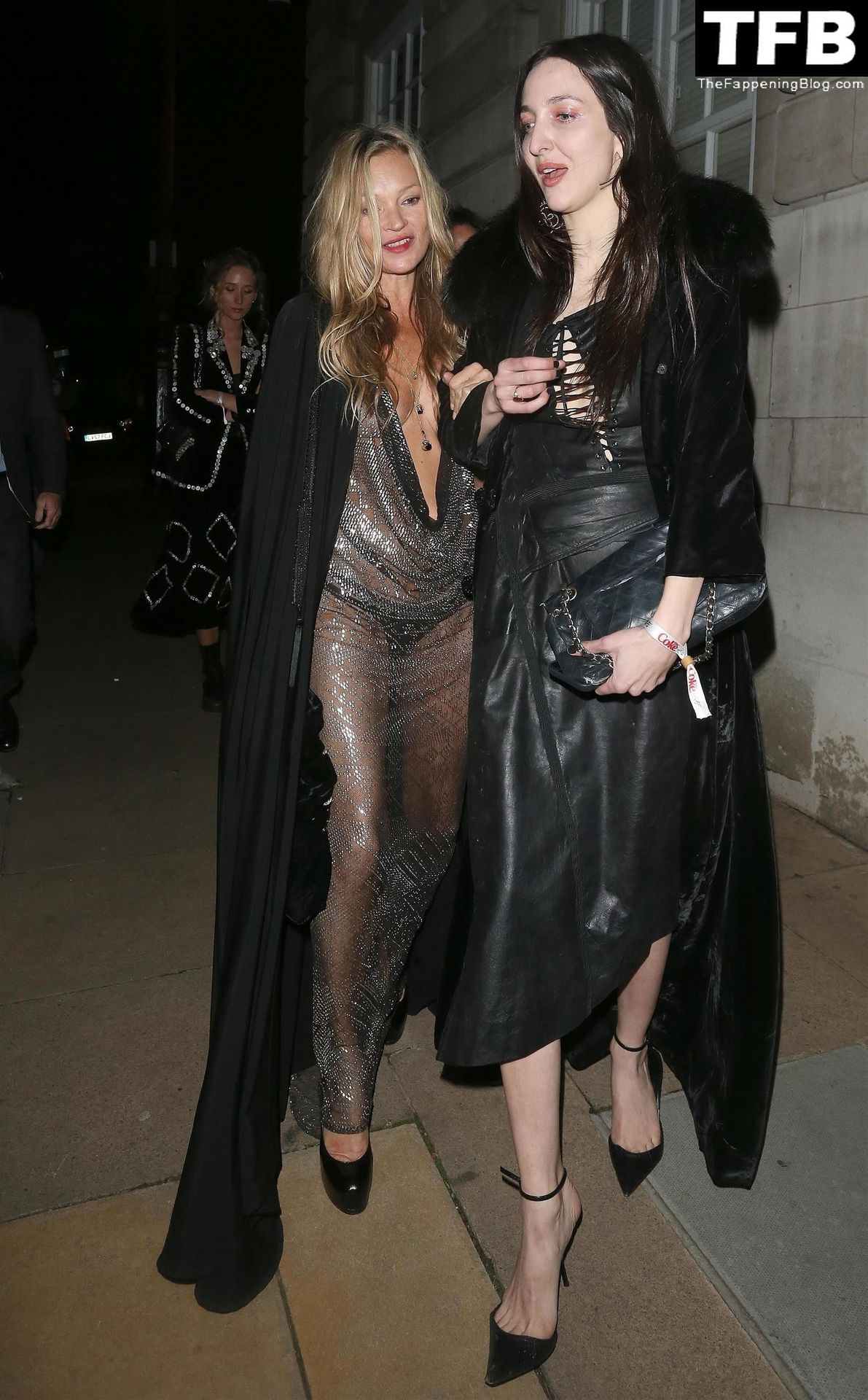 Kate Moss se ve aquí en el Annabels & Loulou’s Members Club en Mayfair, Londres hasta las 3am y fue vista con un fallo de vestuario.