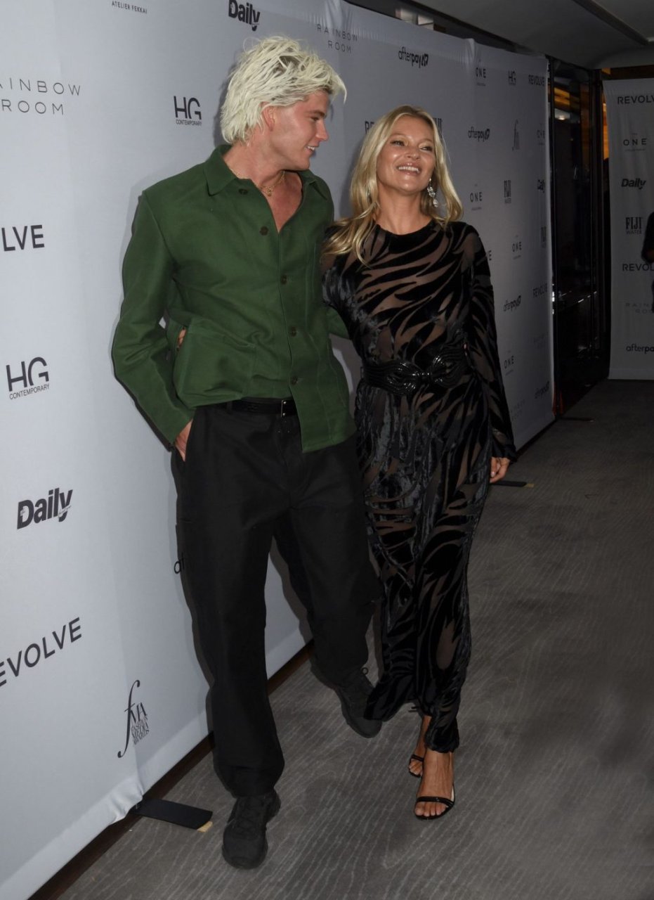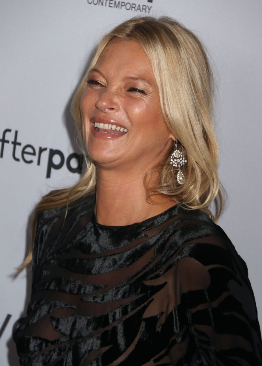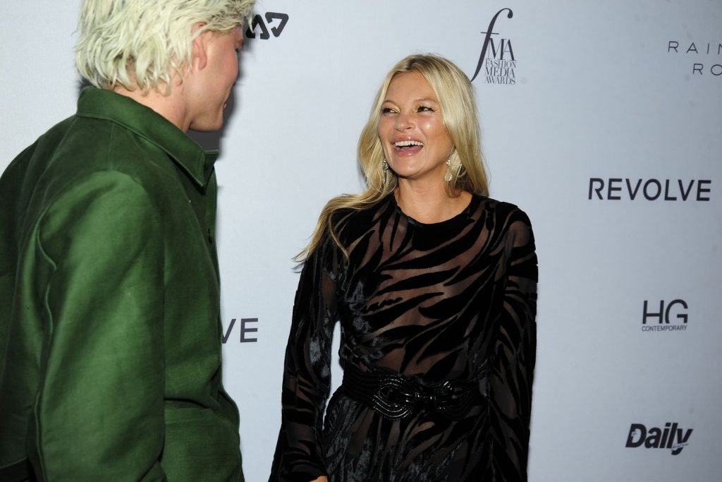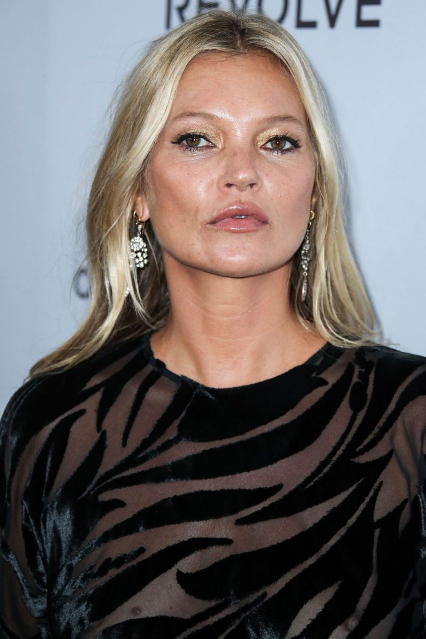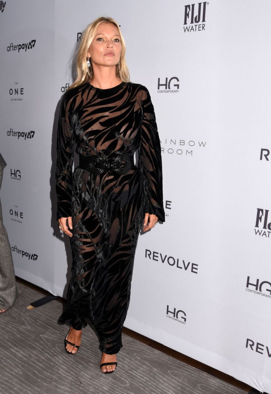 La supermodelo Kate Moss lleva un vestido maxi negro transparente y revelador mientras llega a los Premios de Medios de Moda Daily Front Row, celebrados en el Rainbow Room del Rockefeller Center en Nueva York, 05/09/2019. ¡La supermodelo de 45 años está en gran forma! Ha perdido mucho peso últimamente, se ve en forma y saludable.